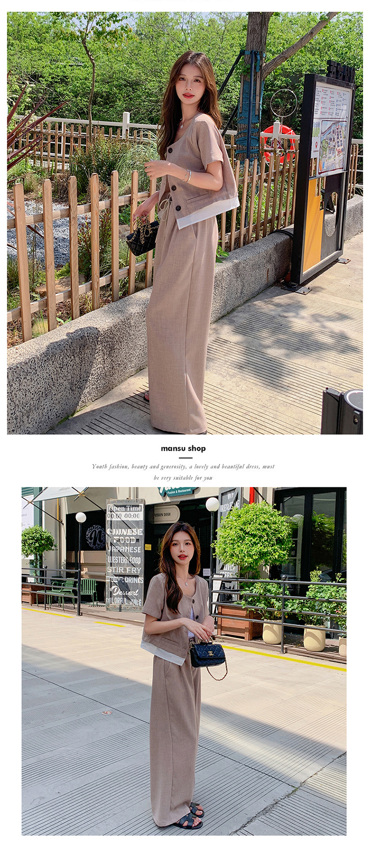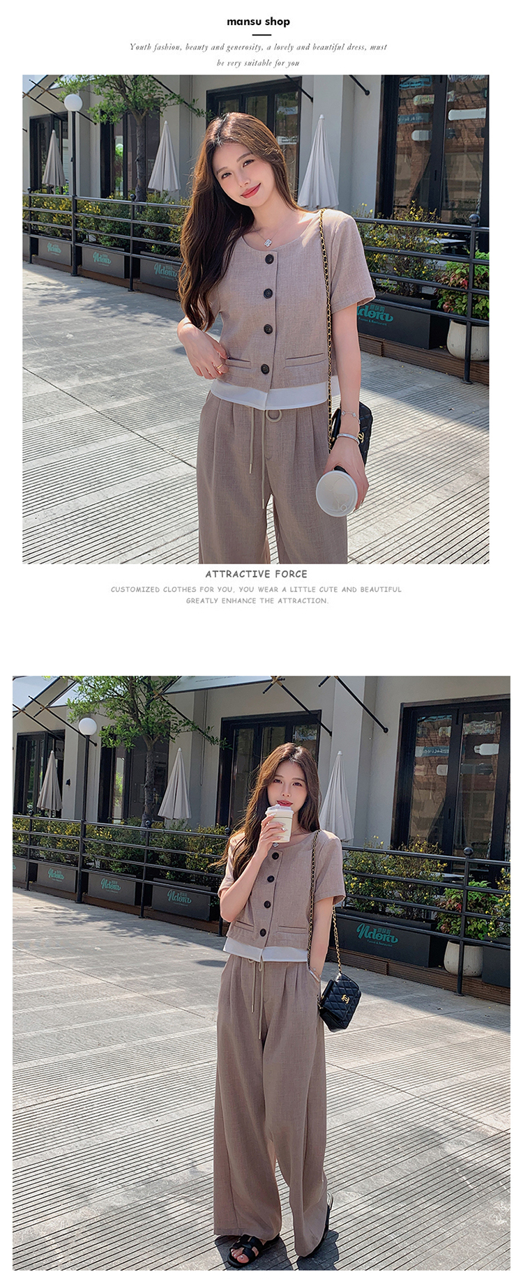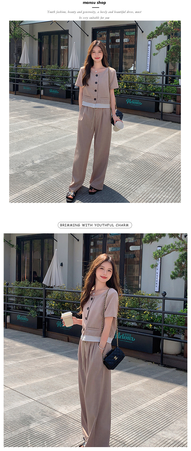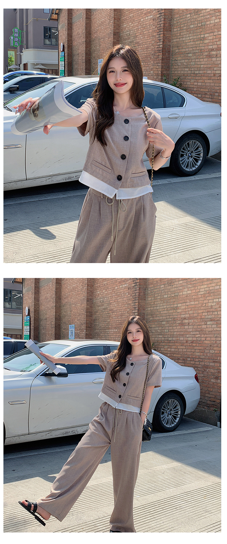 獨家訂製│2件式2色 韓系知性假兩件上衣+闊腿褲(04A1189)