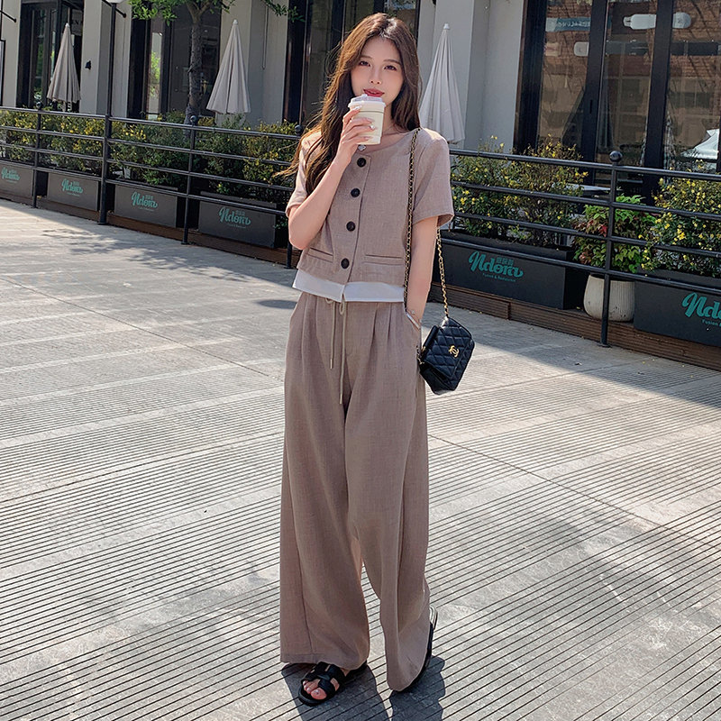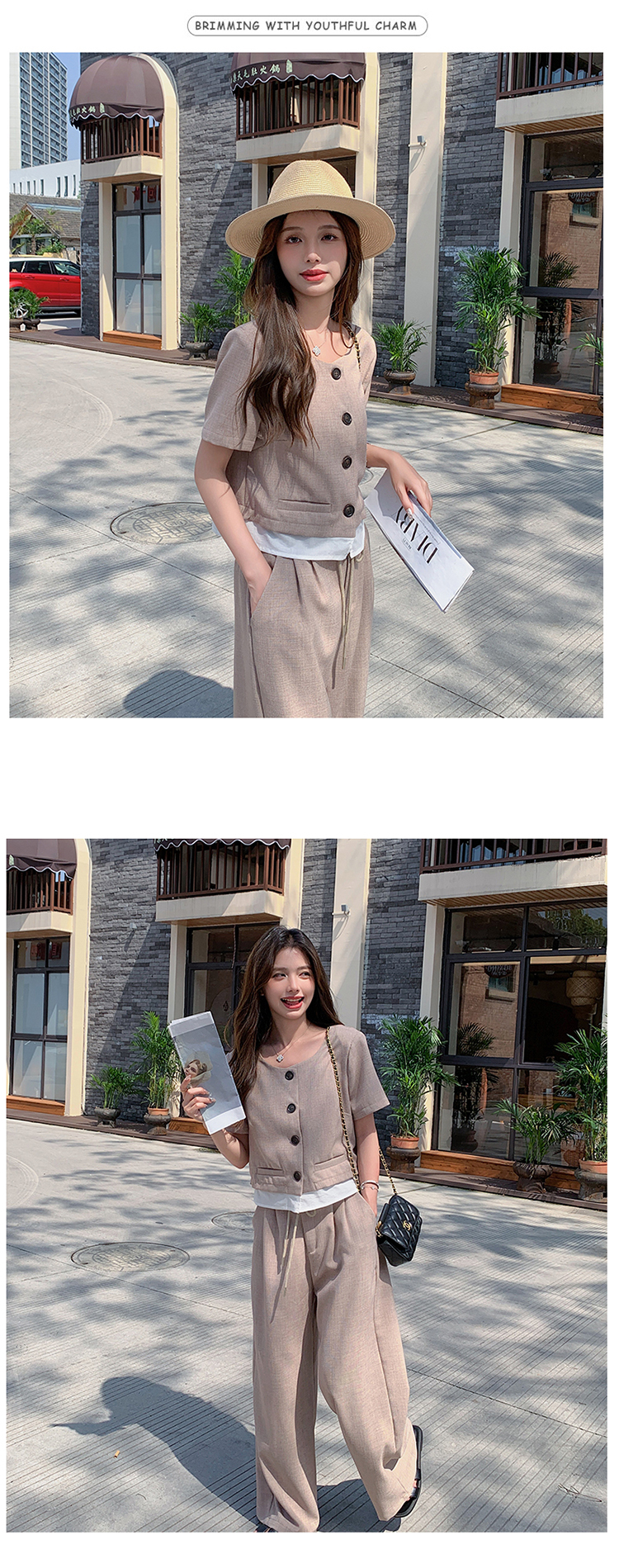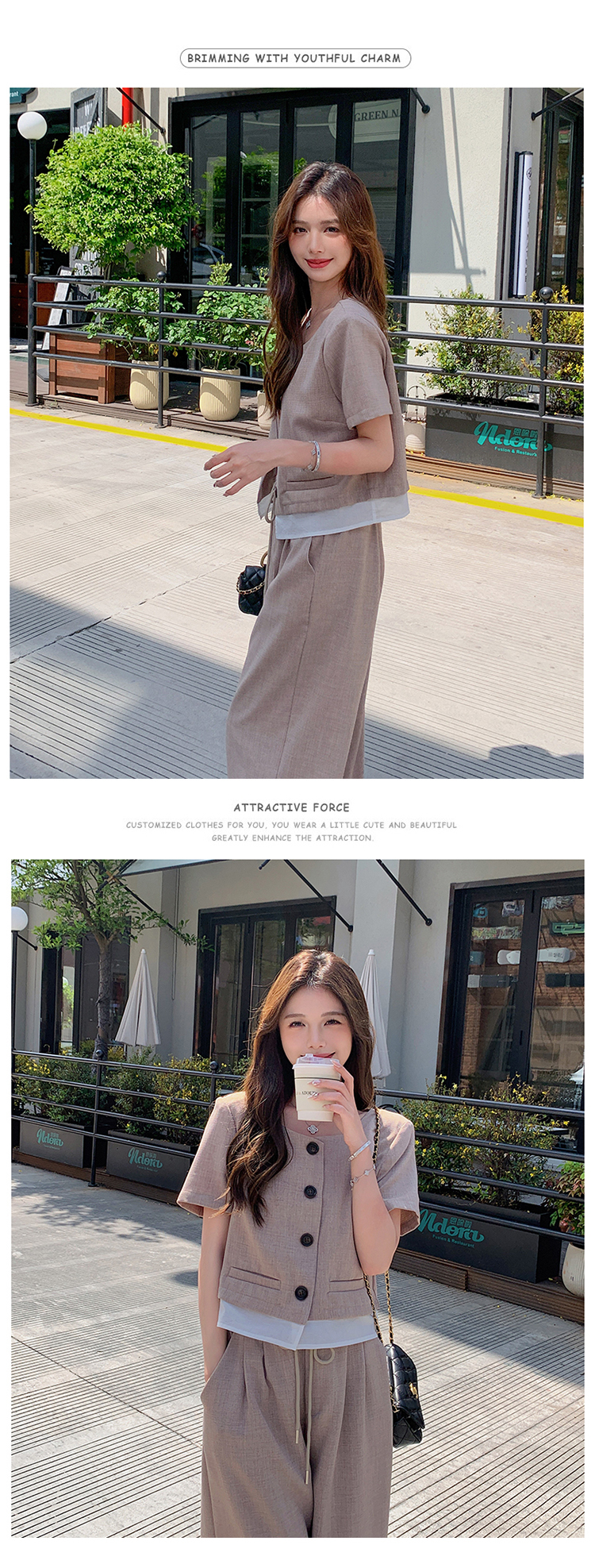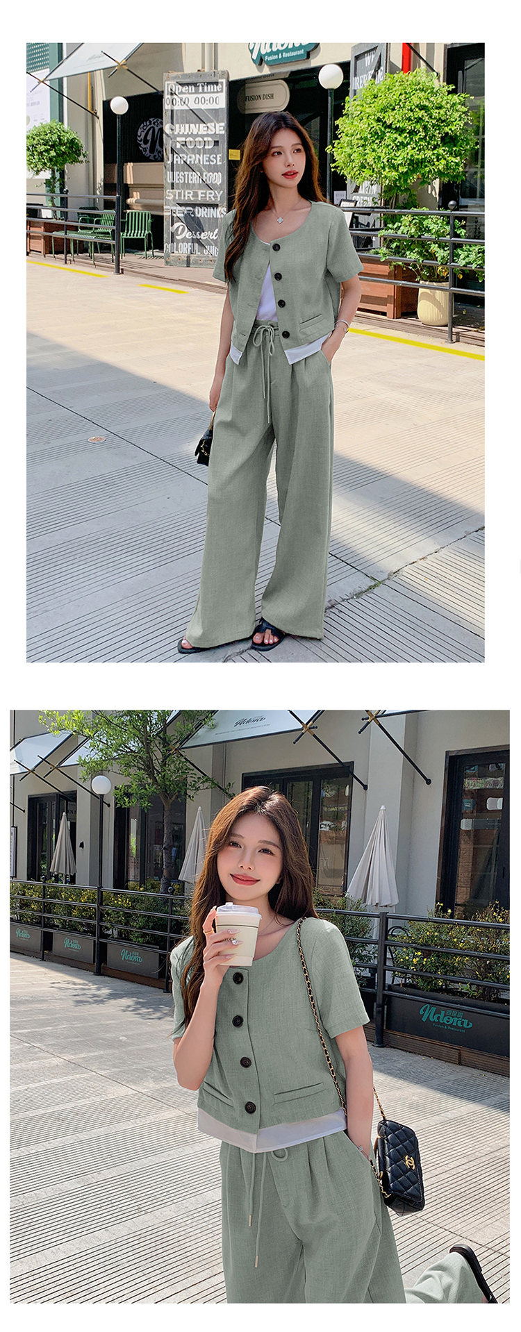 獨家訂製│2件式2色 韓系知性假兩件上衣+闊腿褲(04A1189)