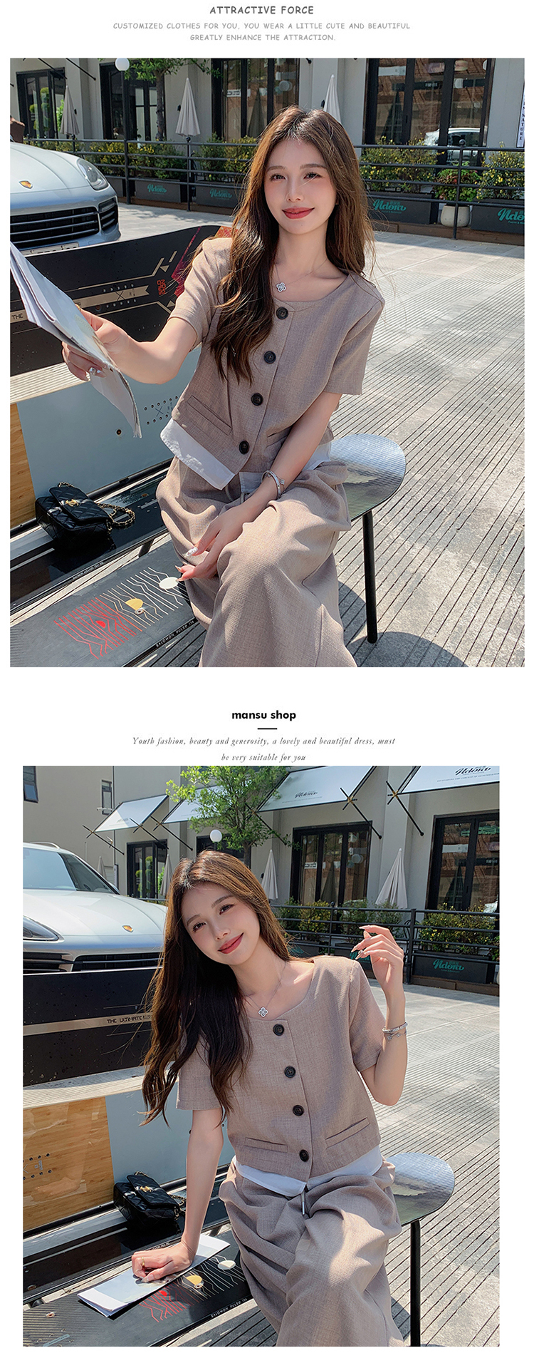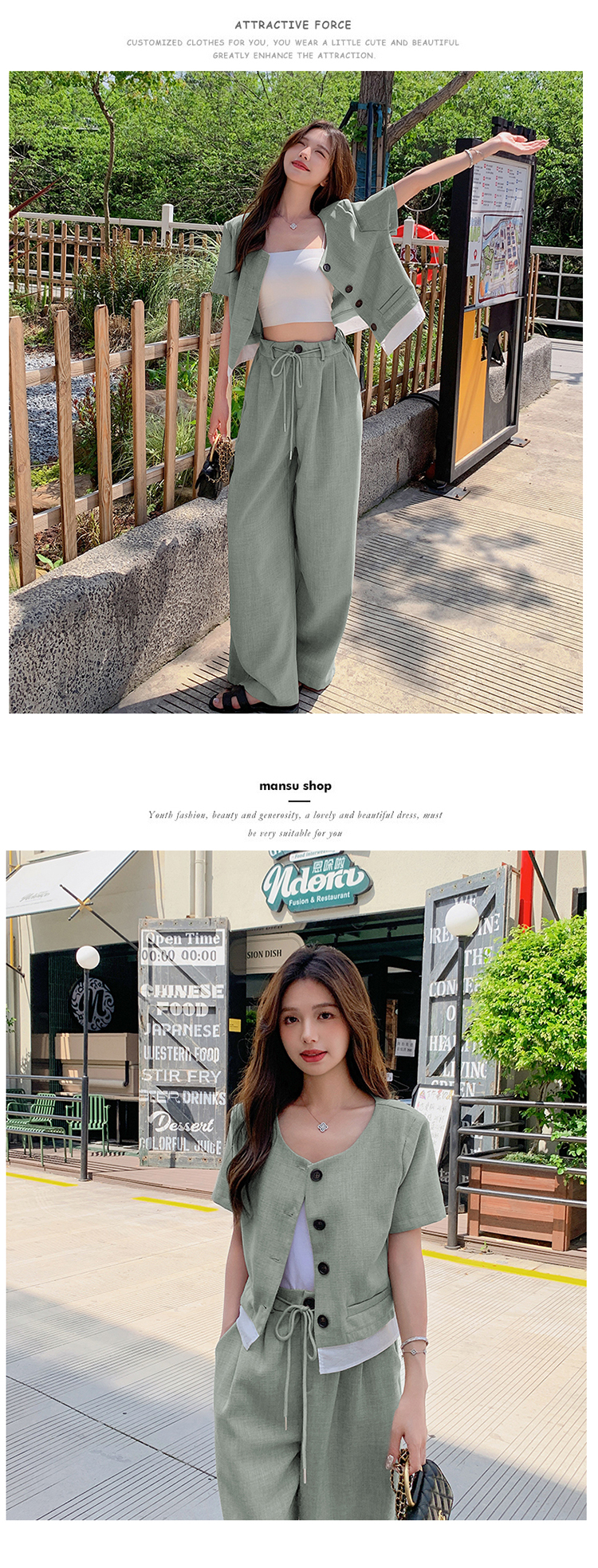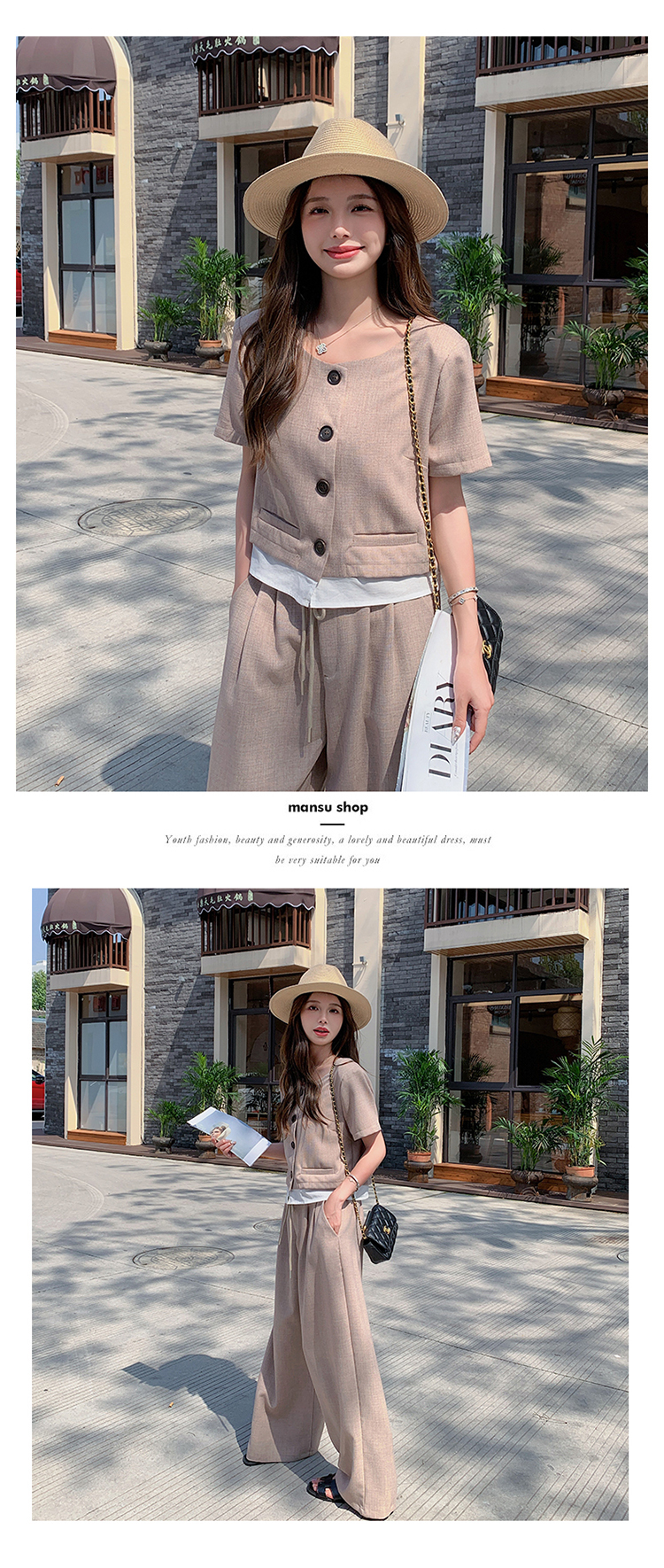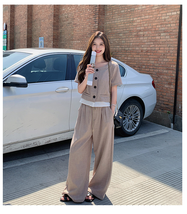 獨家訂製│2件式2色 韓系知性假兩件上衣+闊腿褲(04A1189)