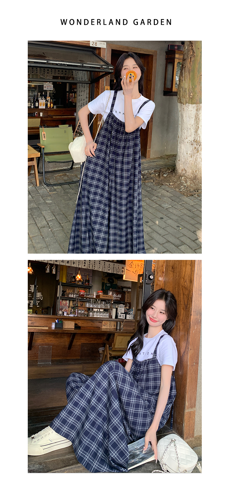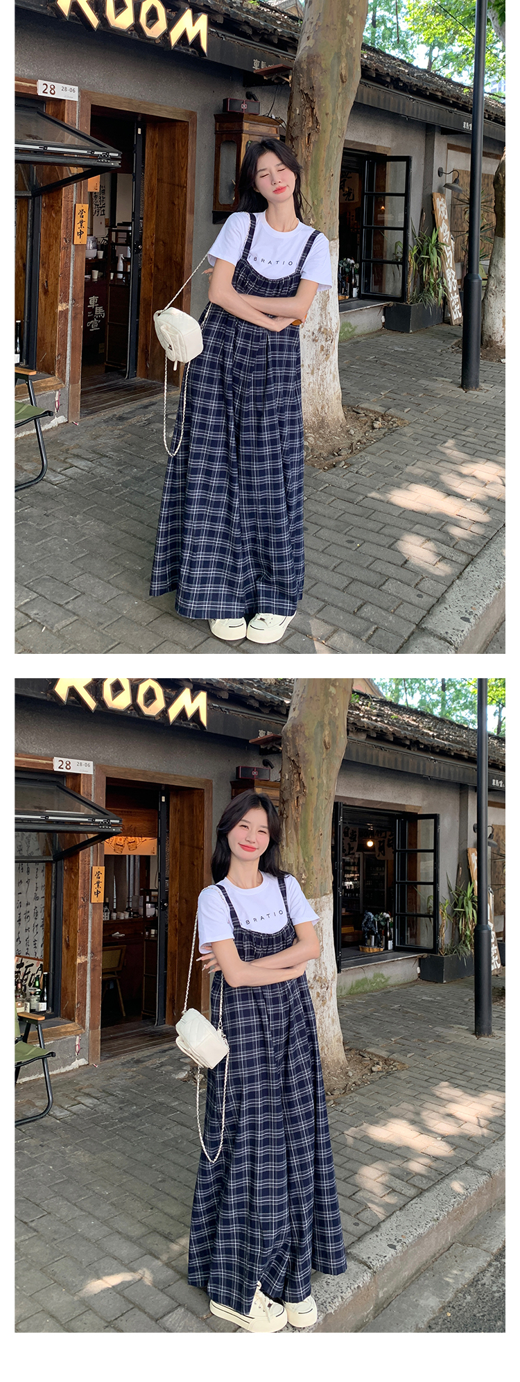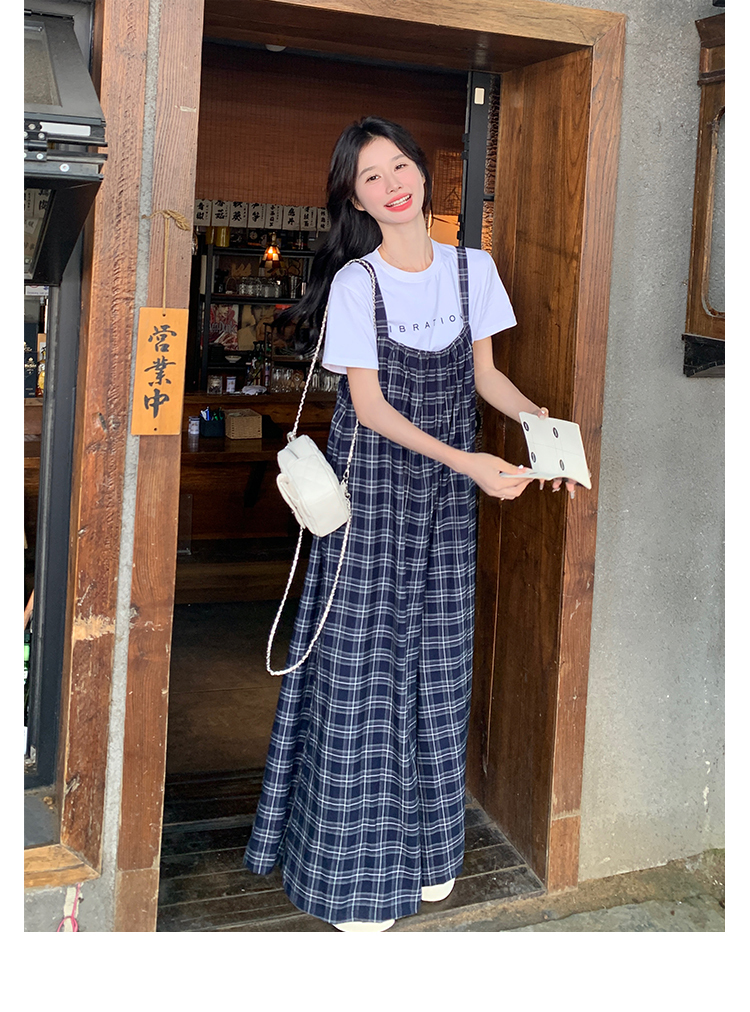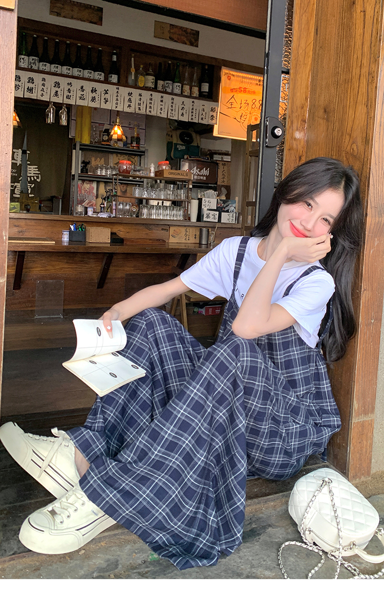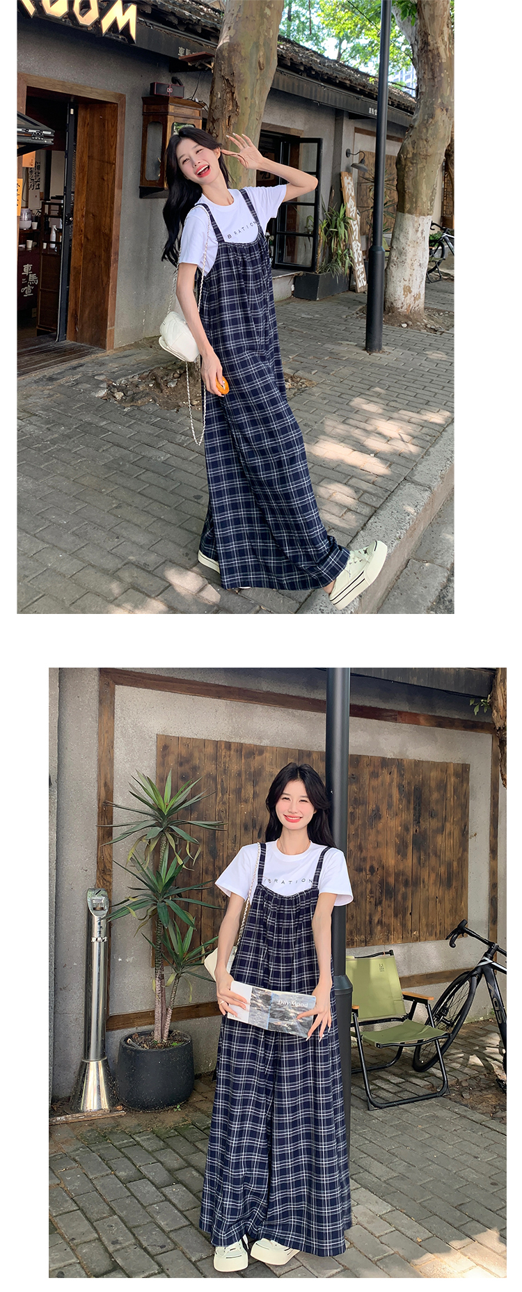 獨家訂製│韓系文藝感格紋大闊腿吊帶褲(04A1210)