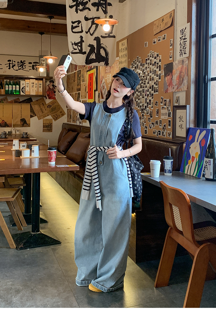 獨家訂製│2件式 韓系甜酷風上衣+牛仔吊帶褲(04A1227)