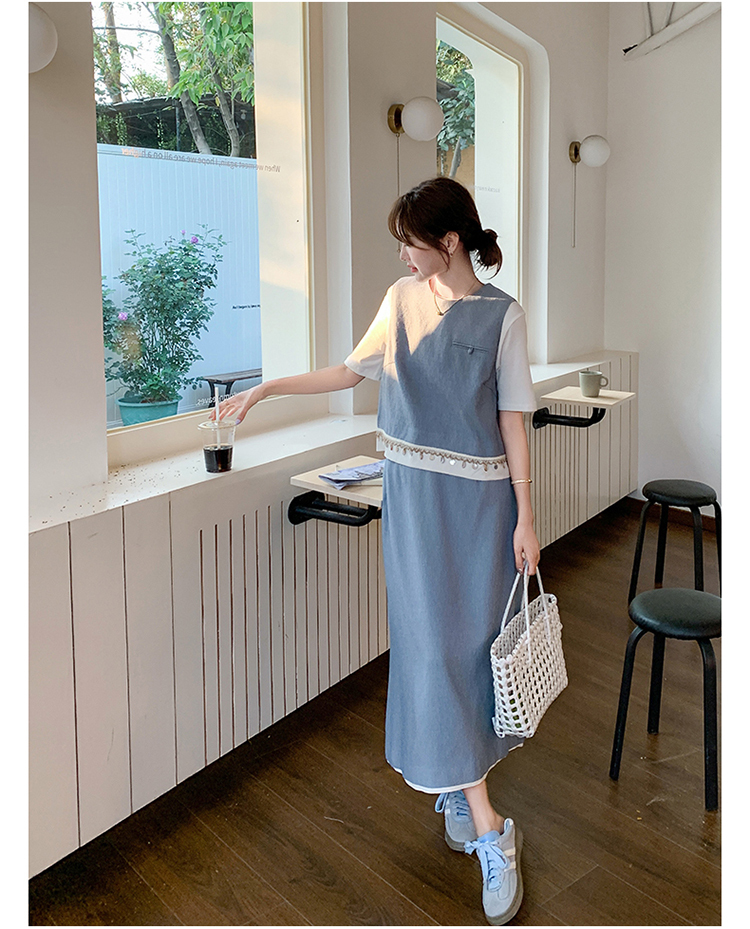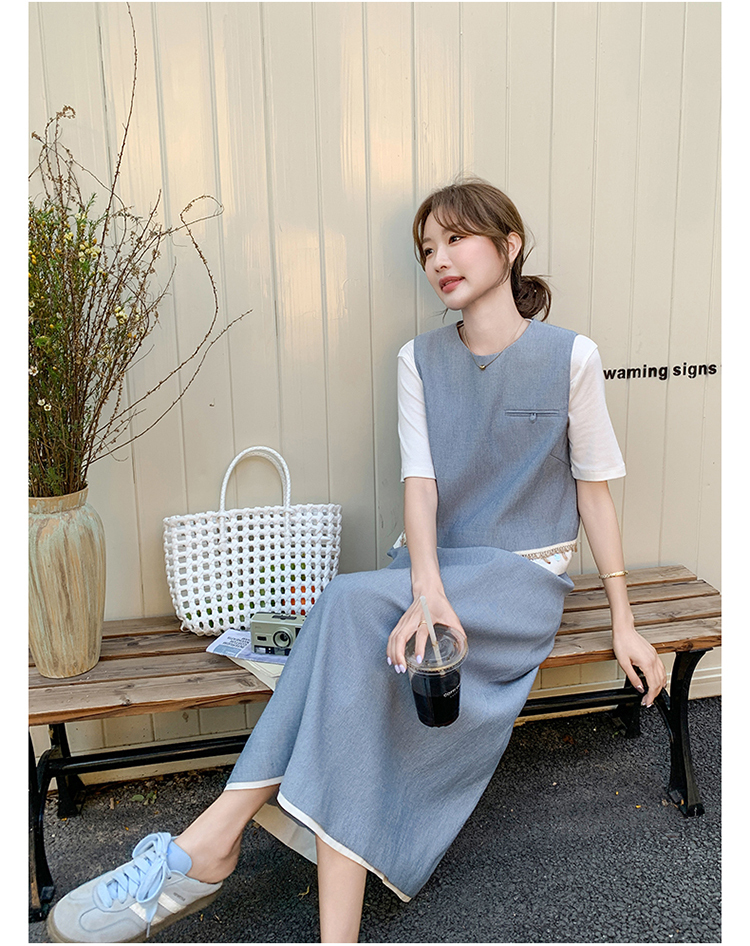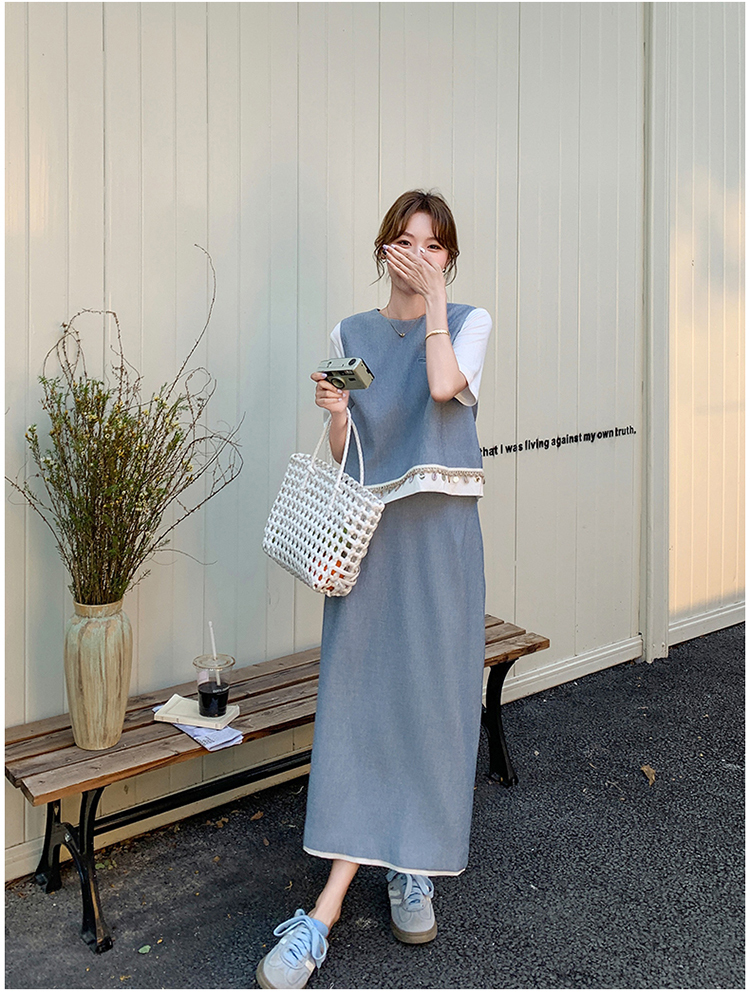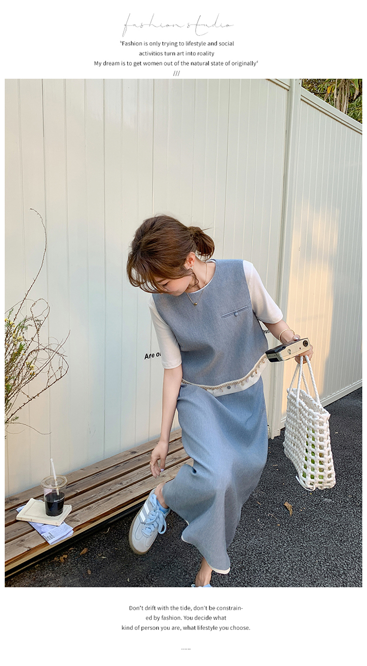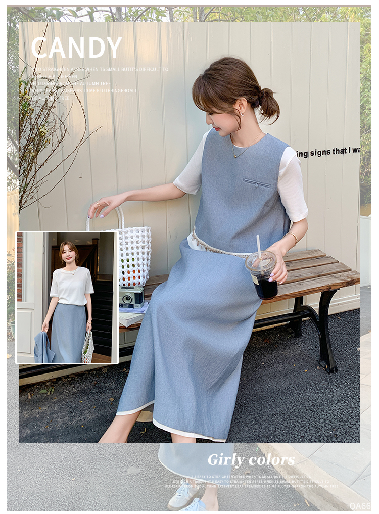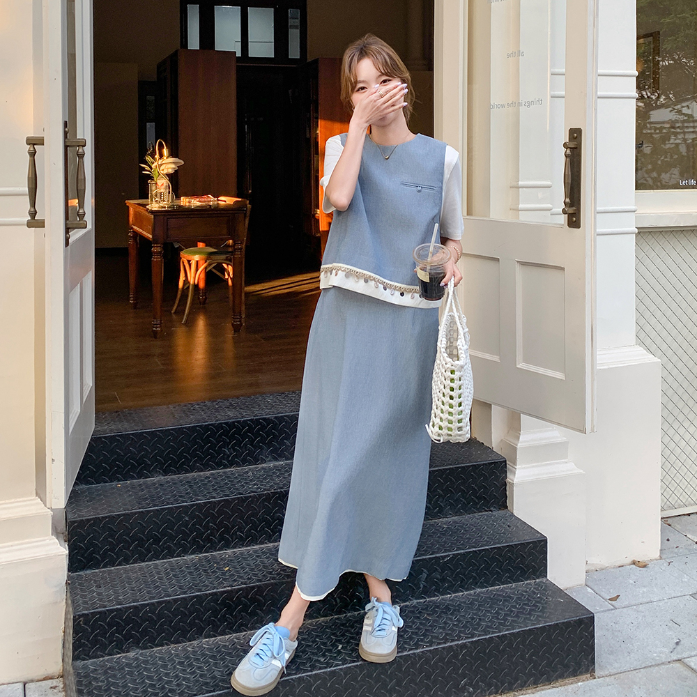 獨家訂製│2件式 韓系知性衣襬撞色拼接背心+A字裙(04A1252)
