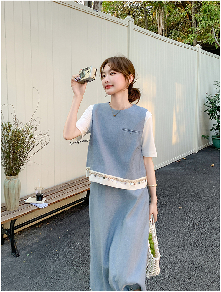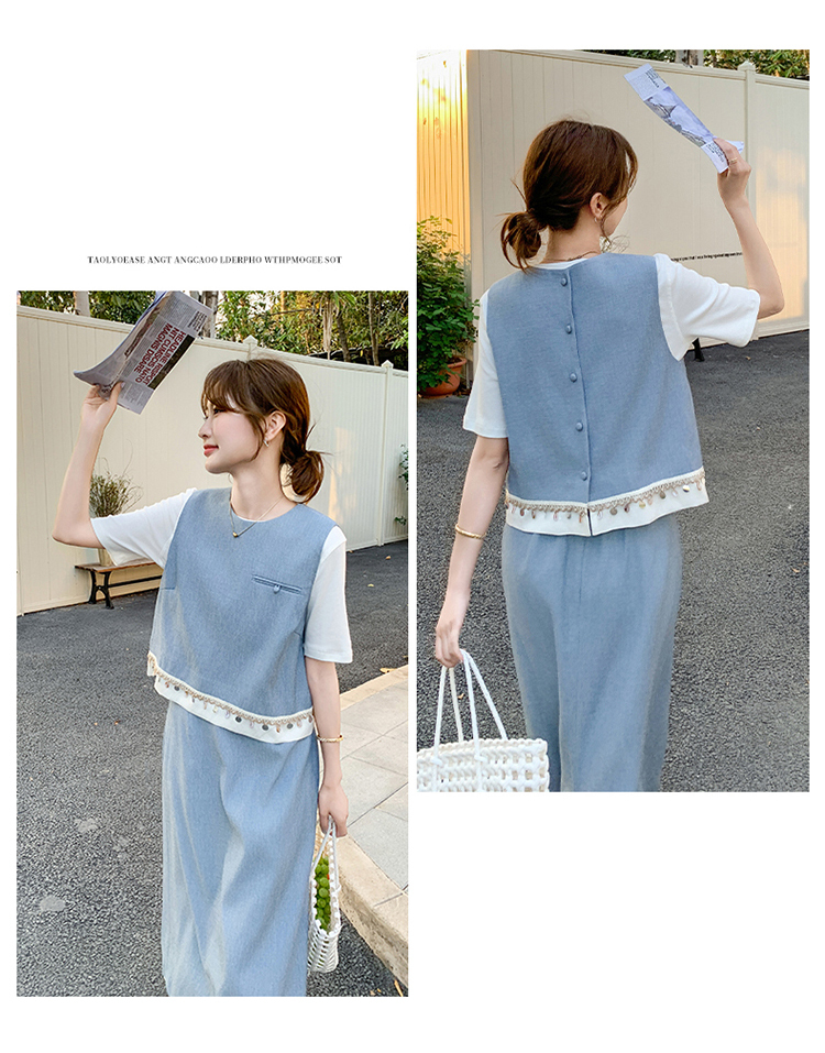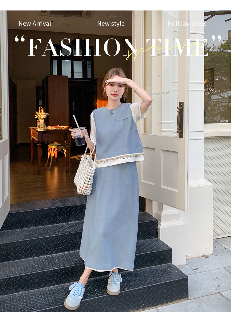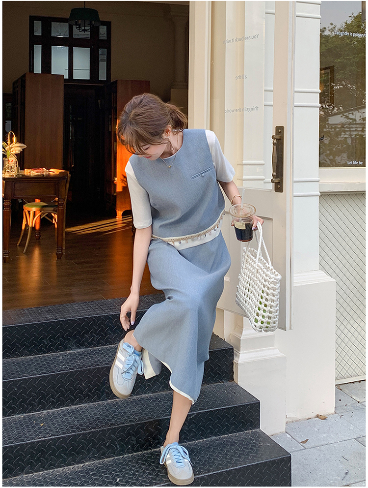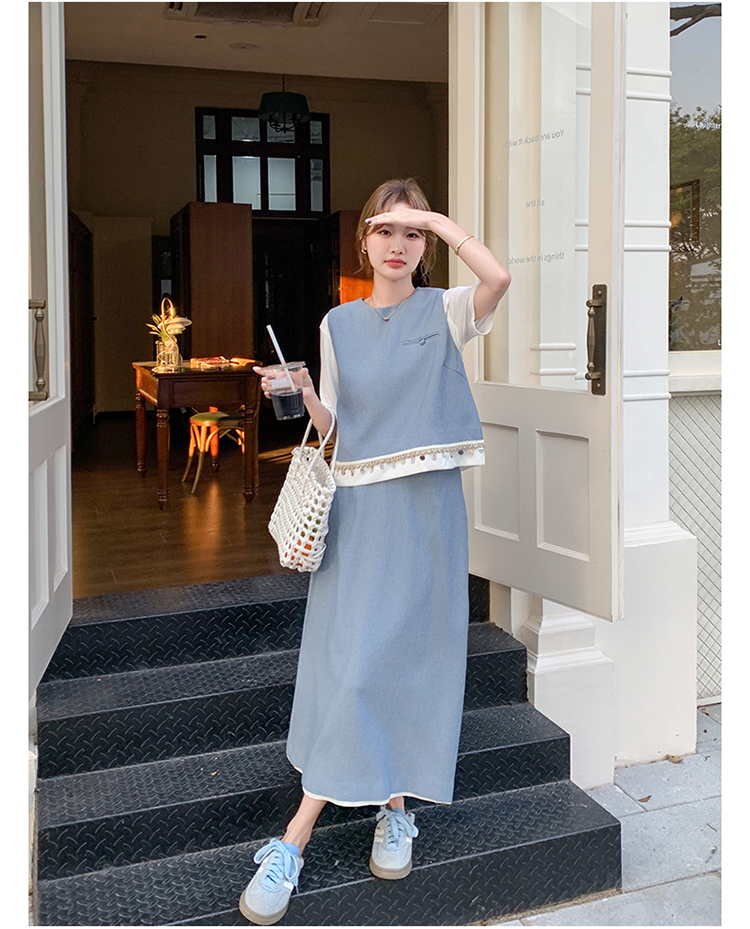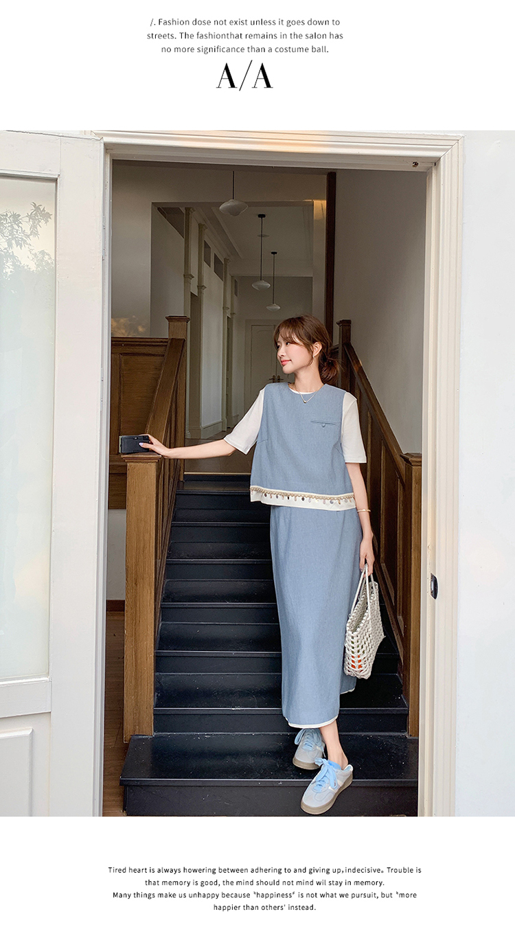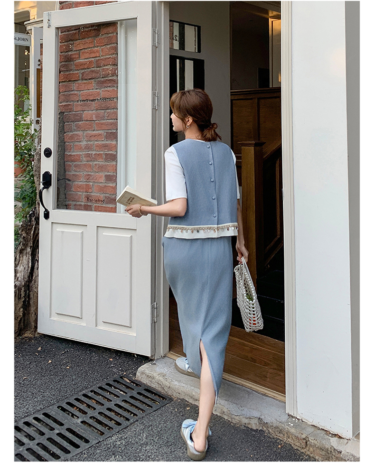 獨家訂製│2件式 韓系知性衣襬撞色拼接背心+A字裙(04A1252)
