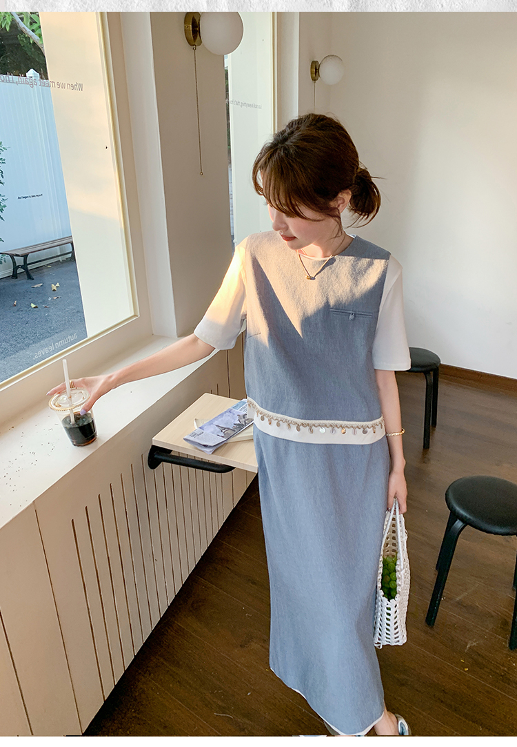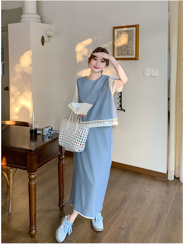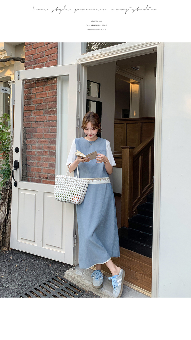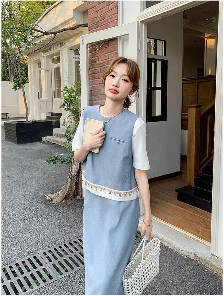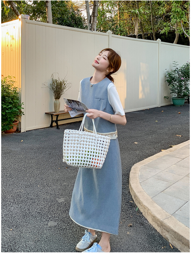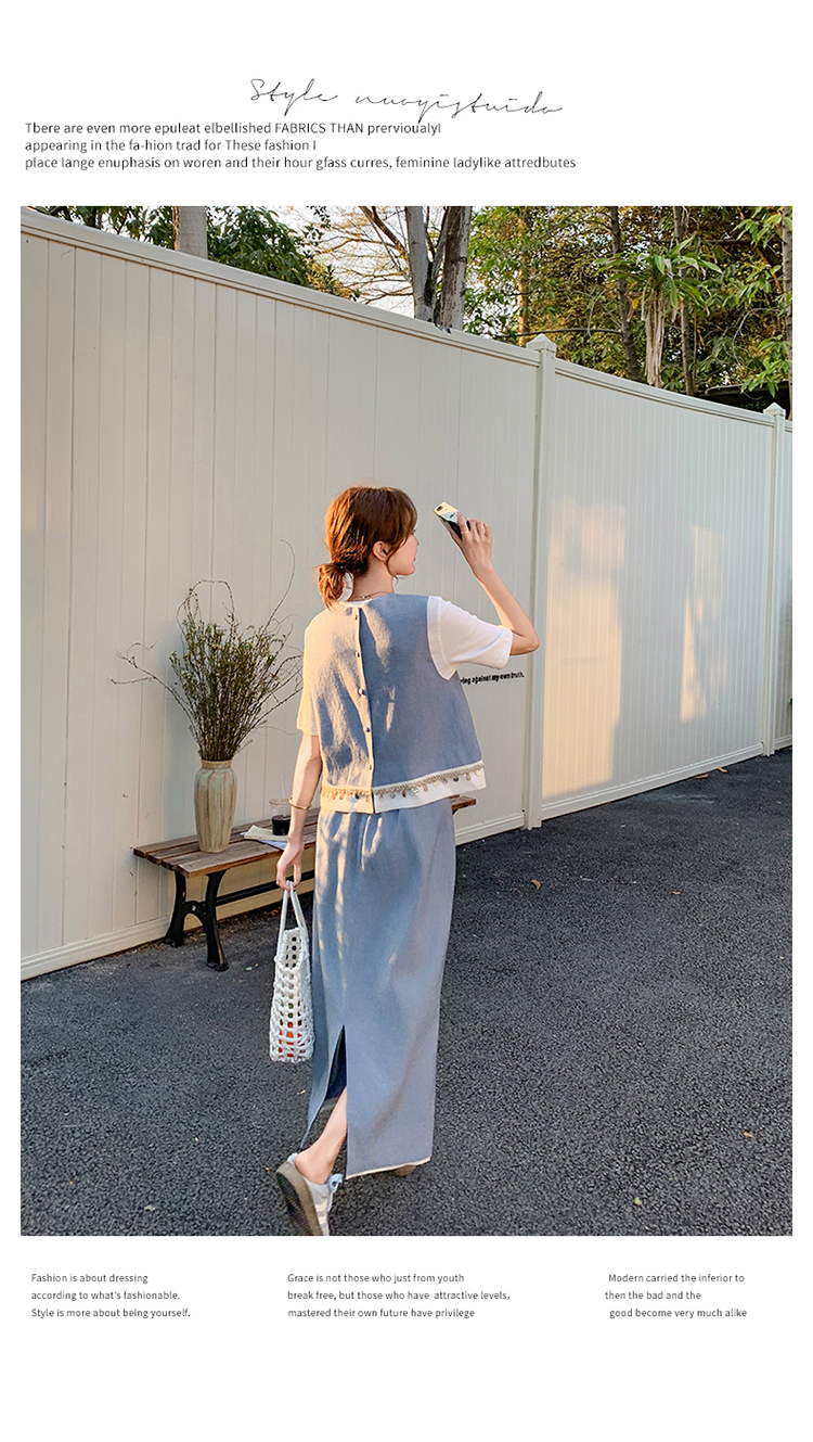 獨家訂製│2件式 韓系知性衣襬撞色拼接背心+A字裙(04A1252)