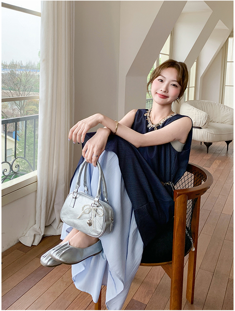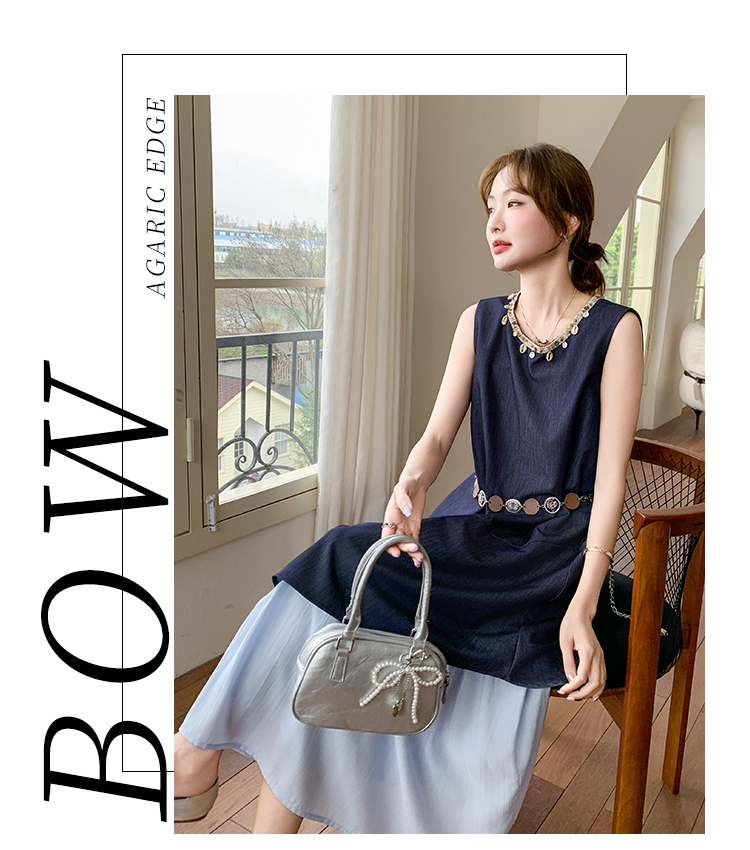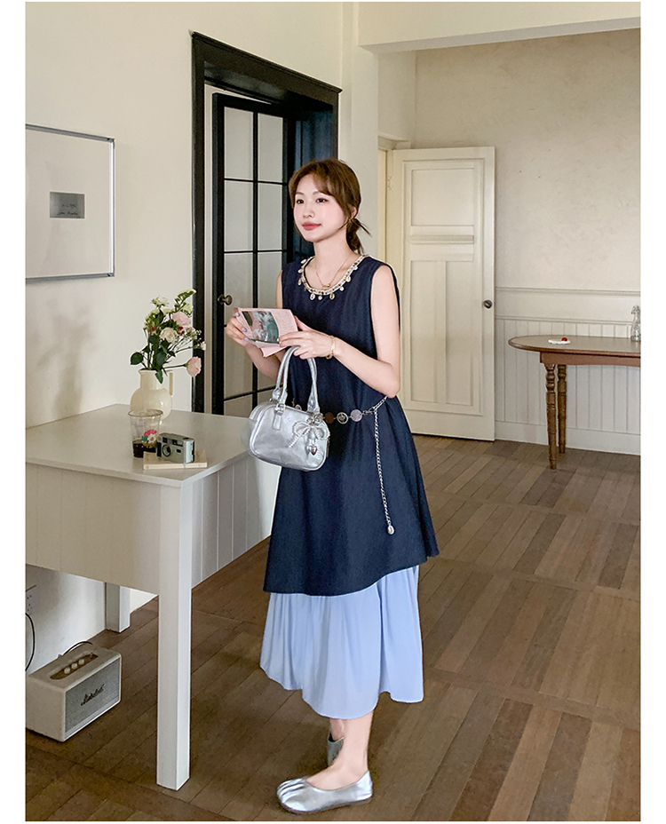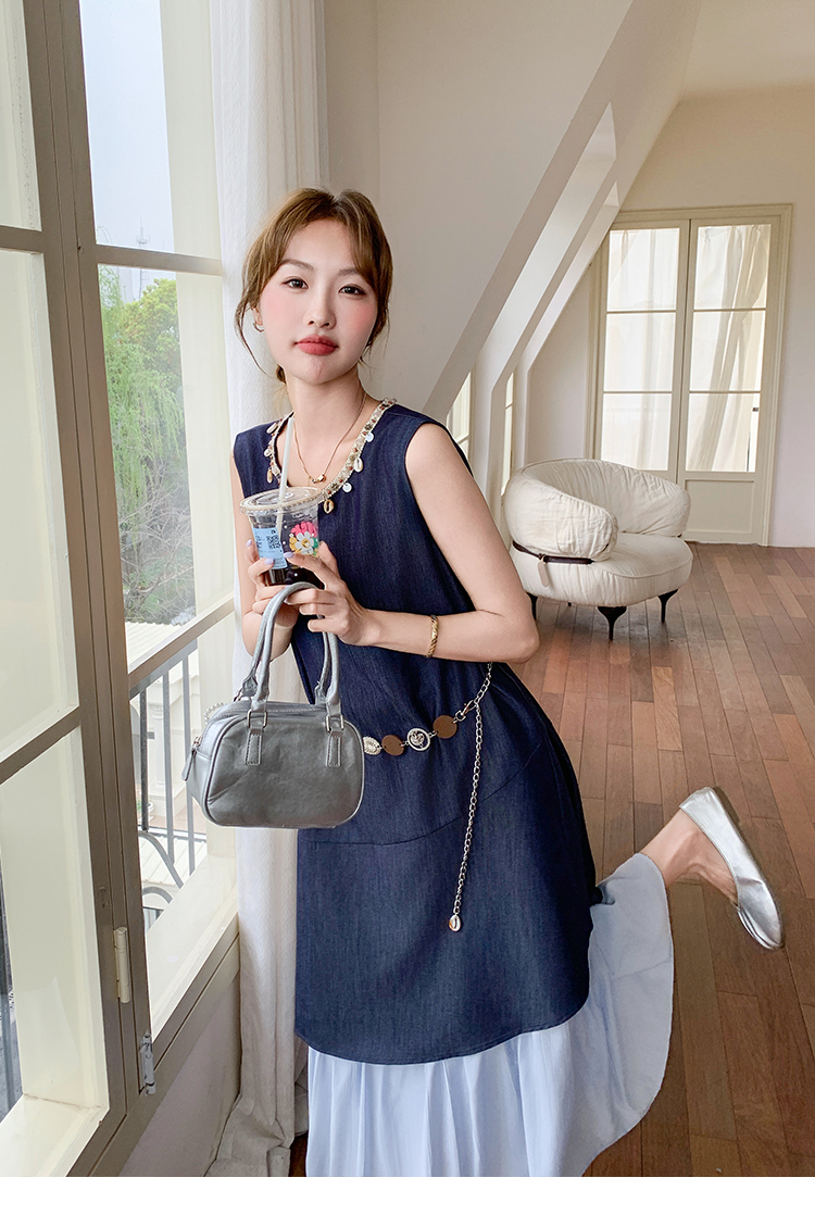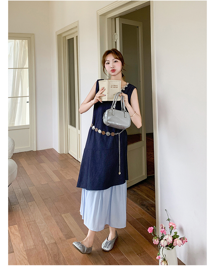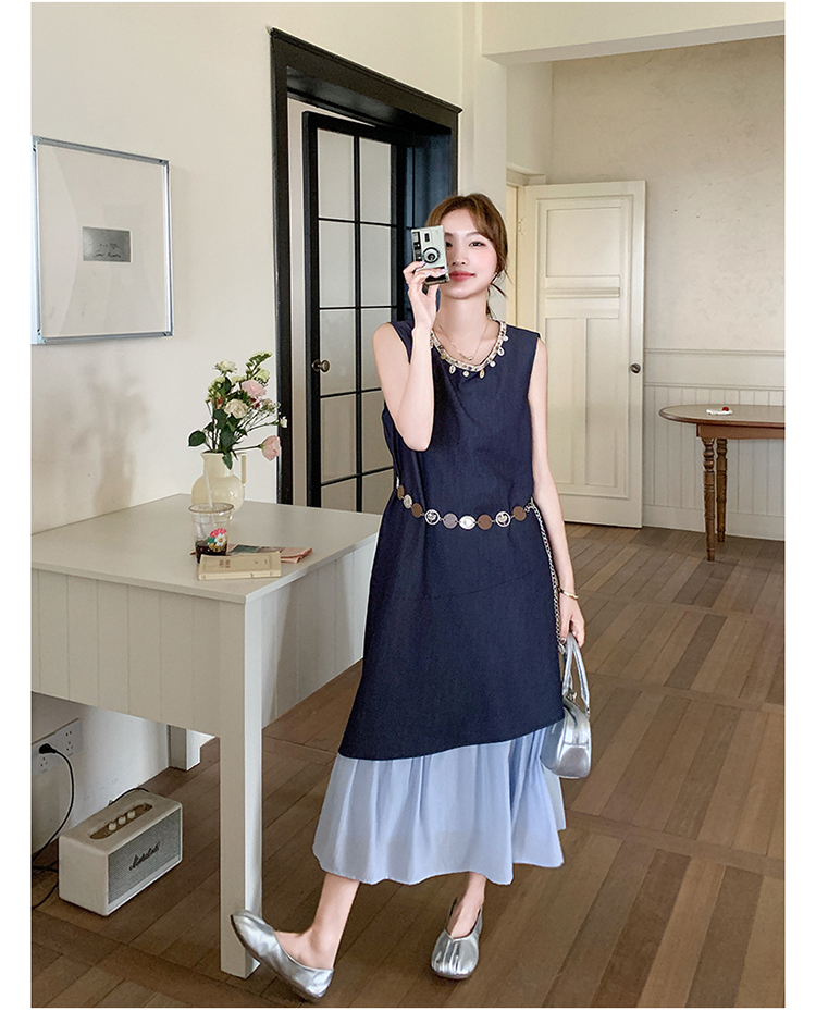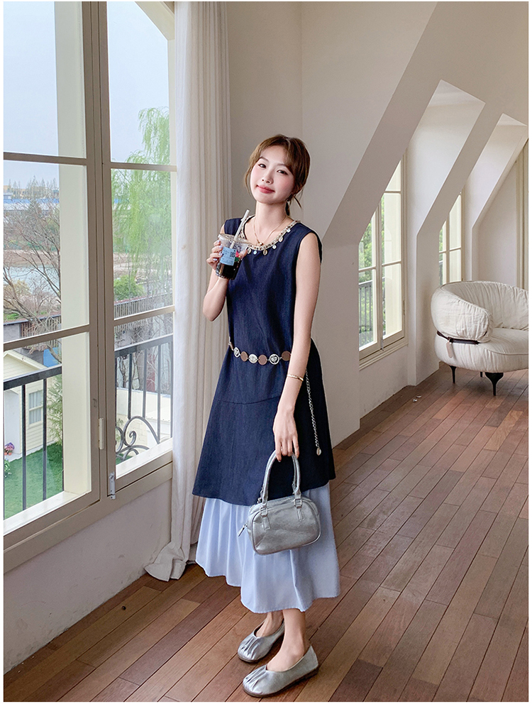 獨家訂製│假2件連衣裙 韓系氣質裙襬拼接亮片圓領連衣裙(04A1261)