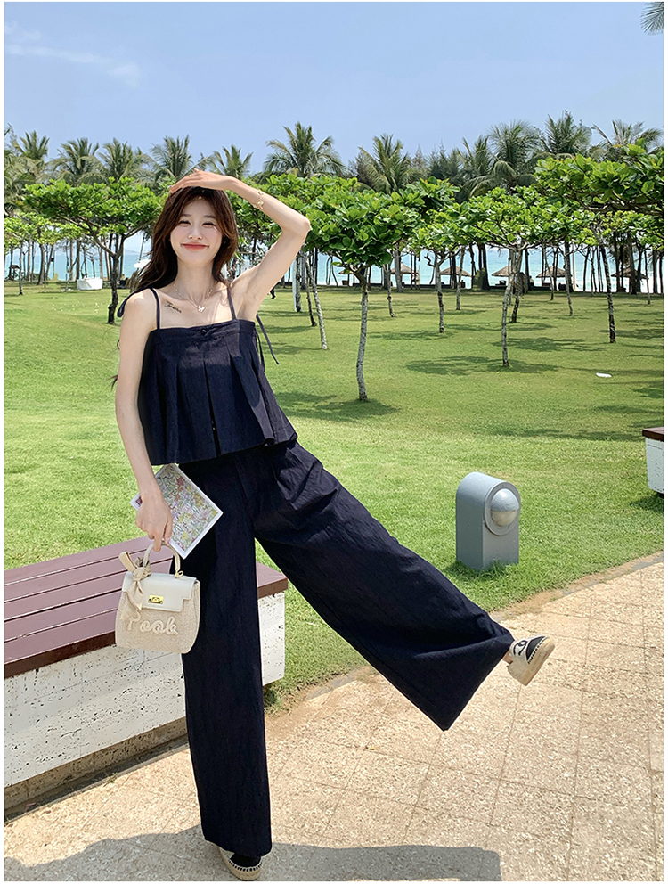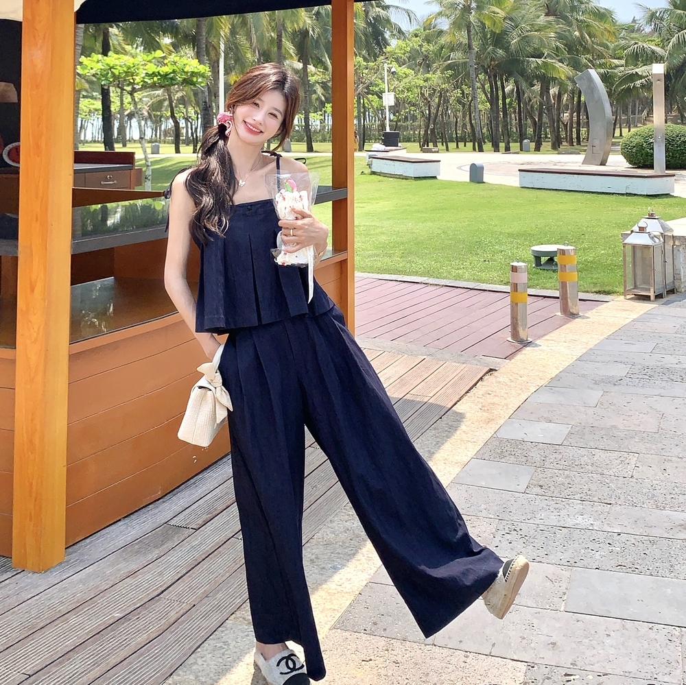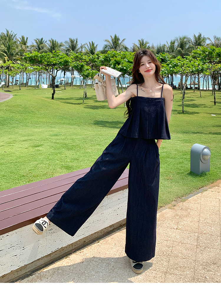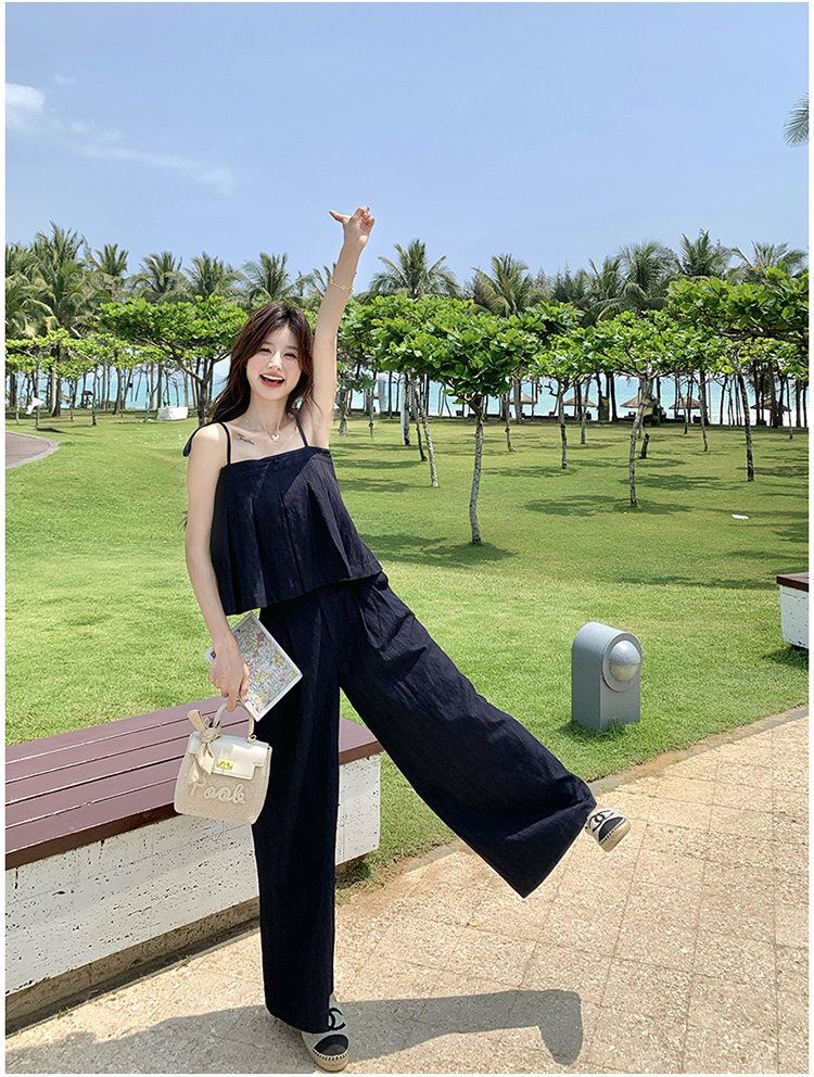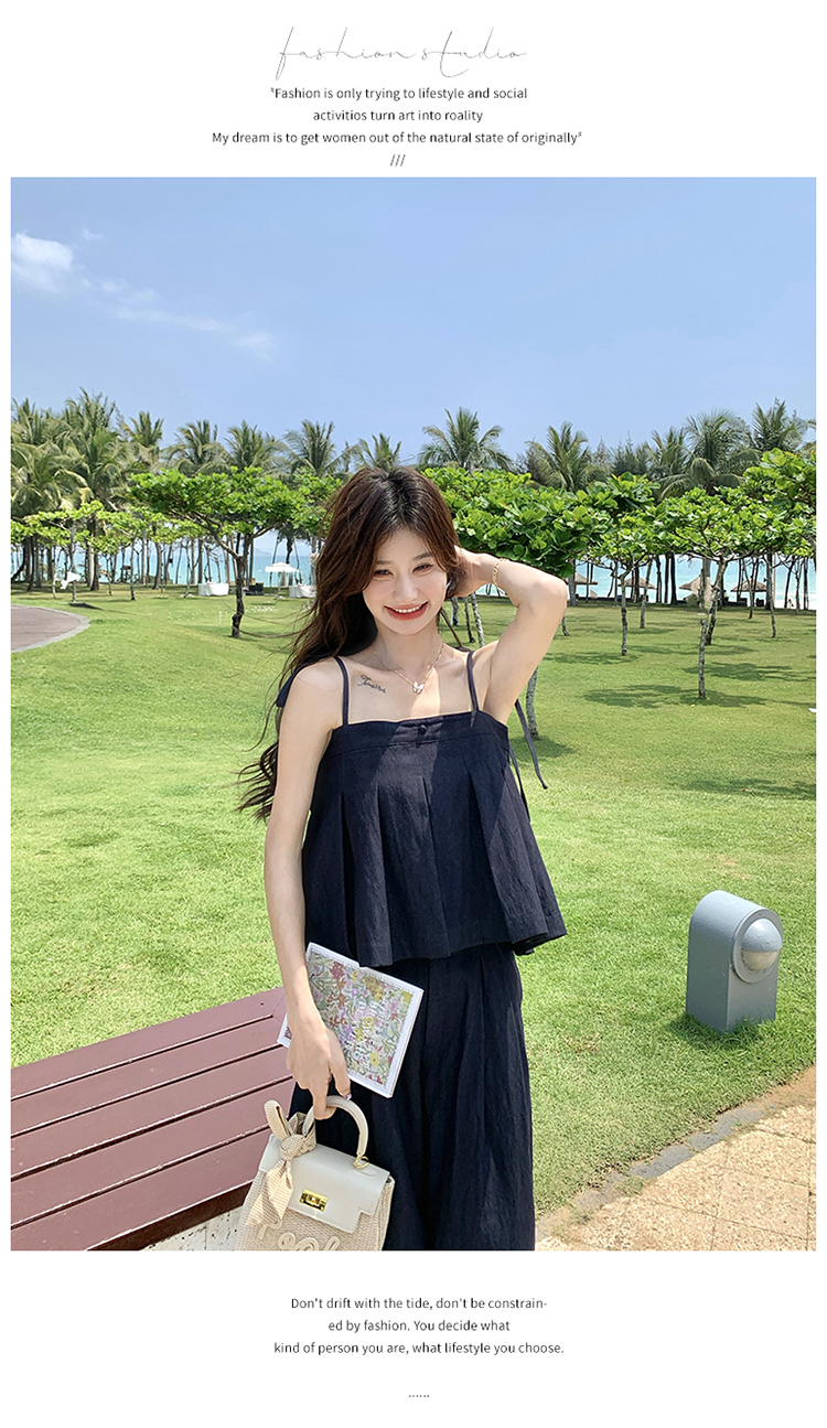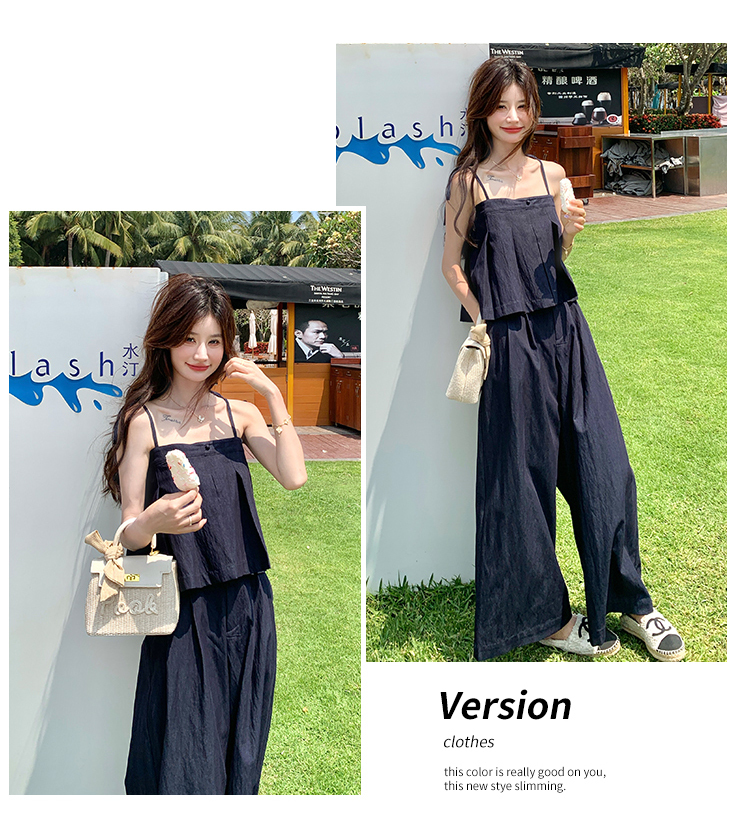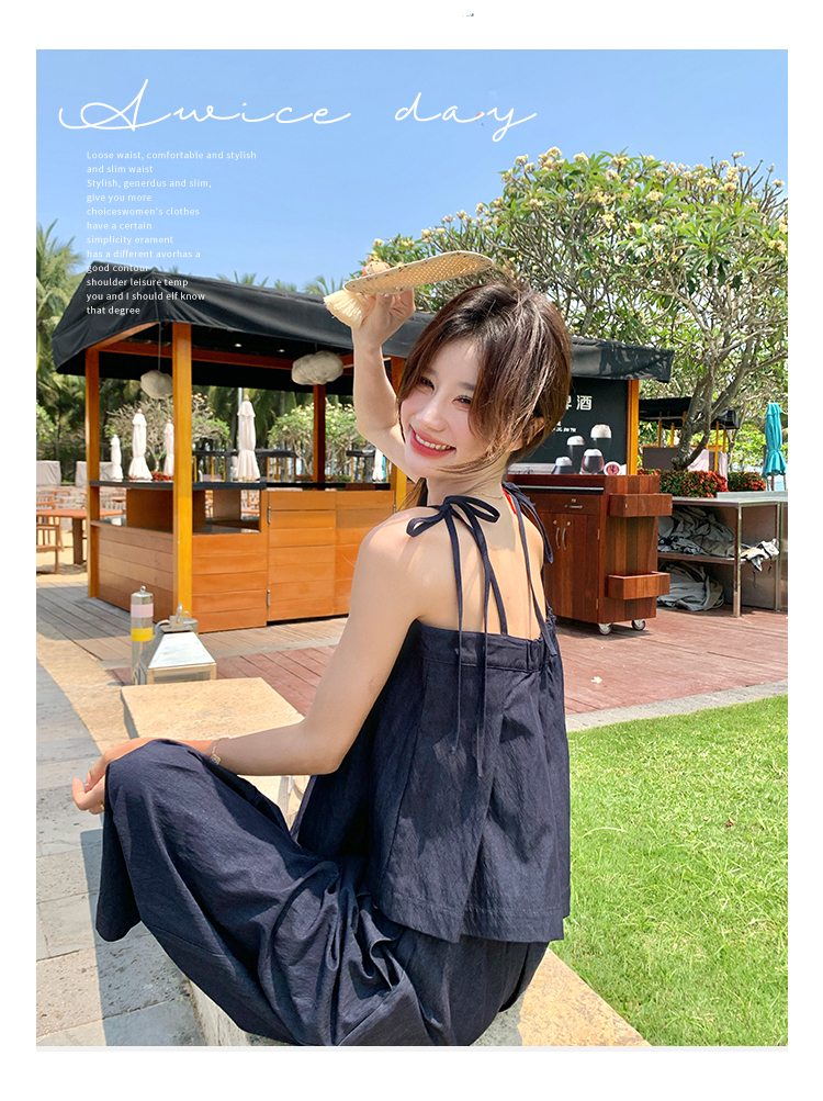 獨家訂製│2件式 韓系渡假感吊帶+闊腿褲(04A1267)