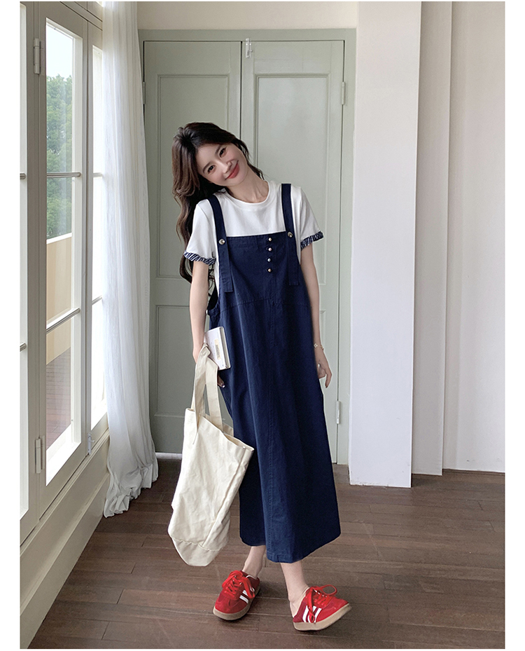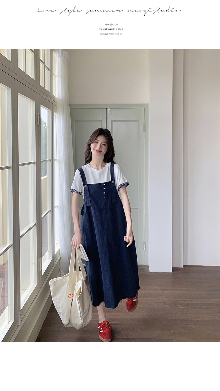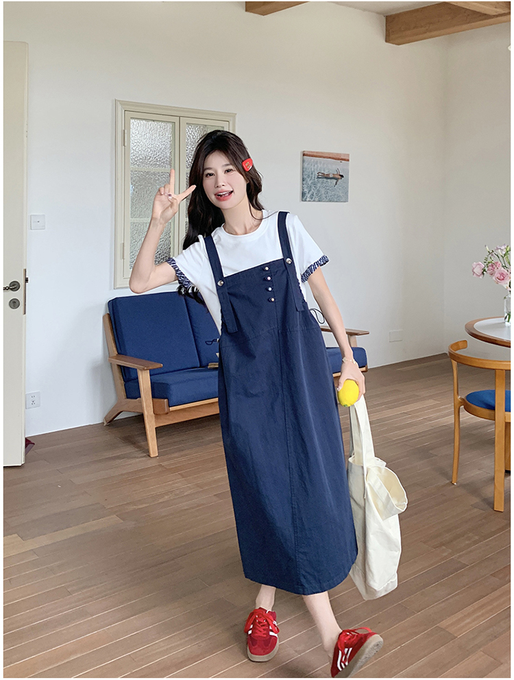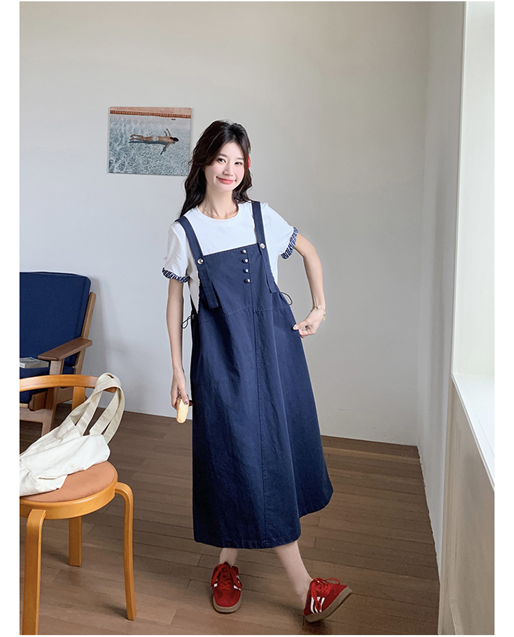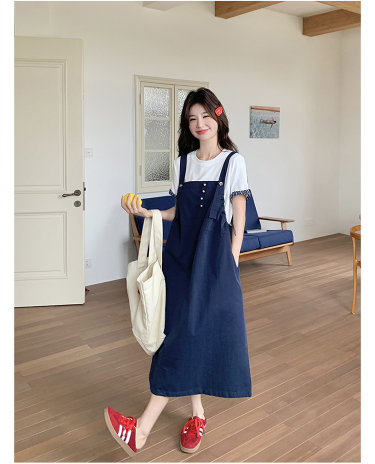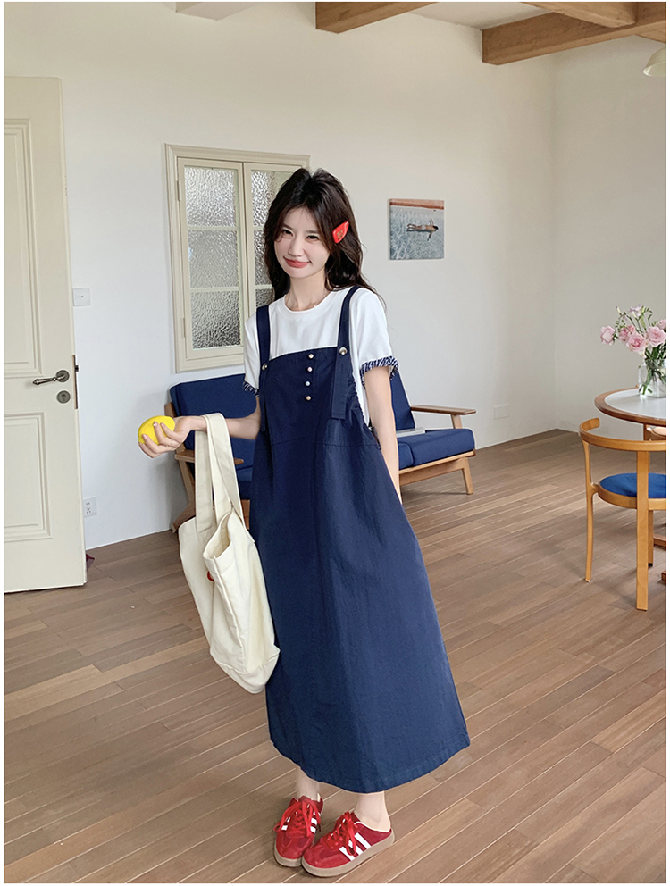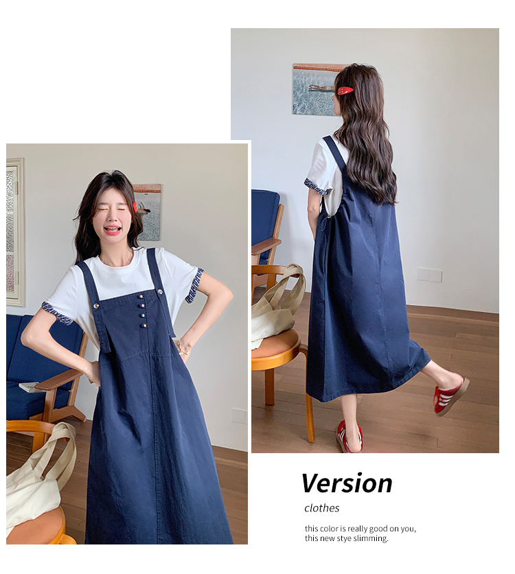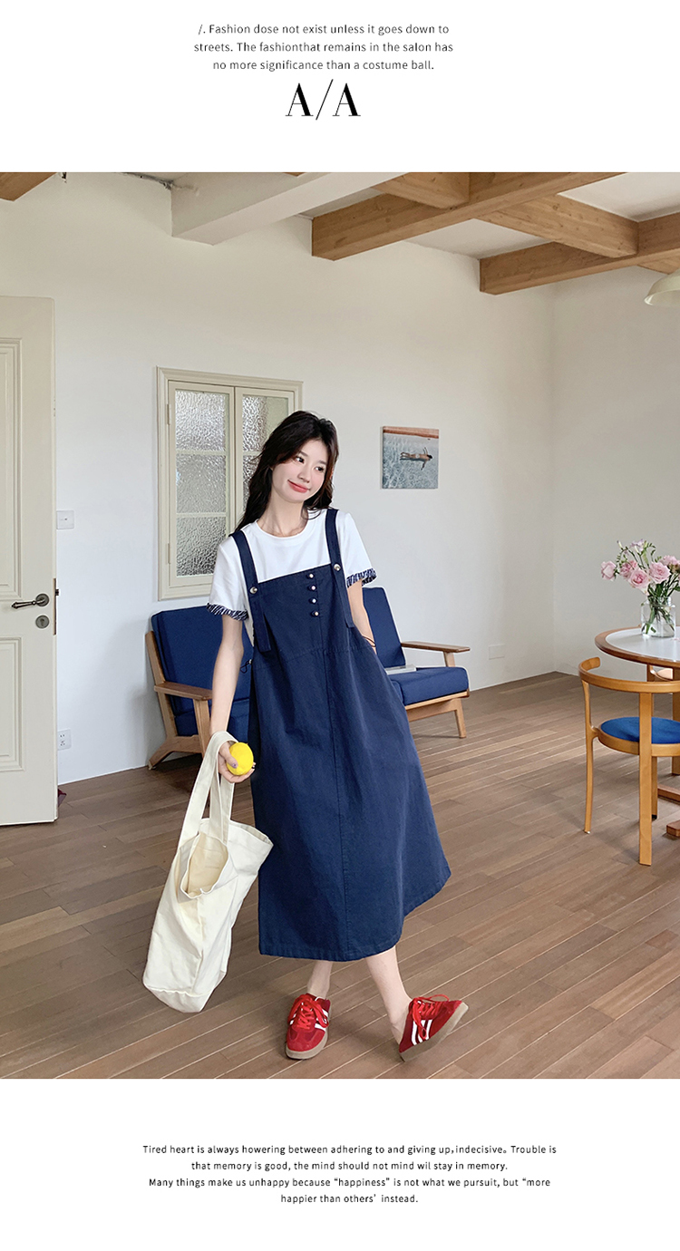獨家訂製│2件式 韓系小清新撞色上衣+抽繩收腰吊帶裙(04A1268)
