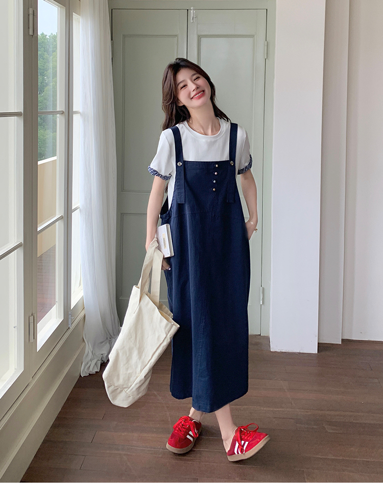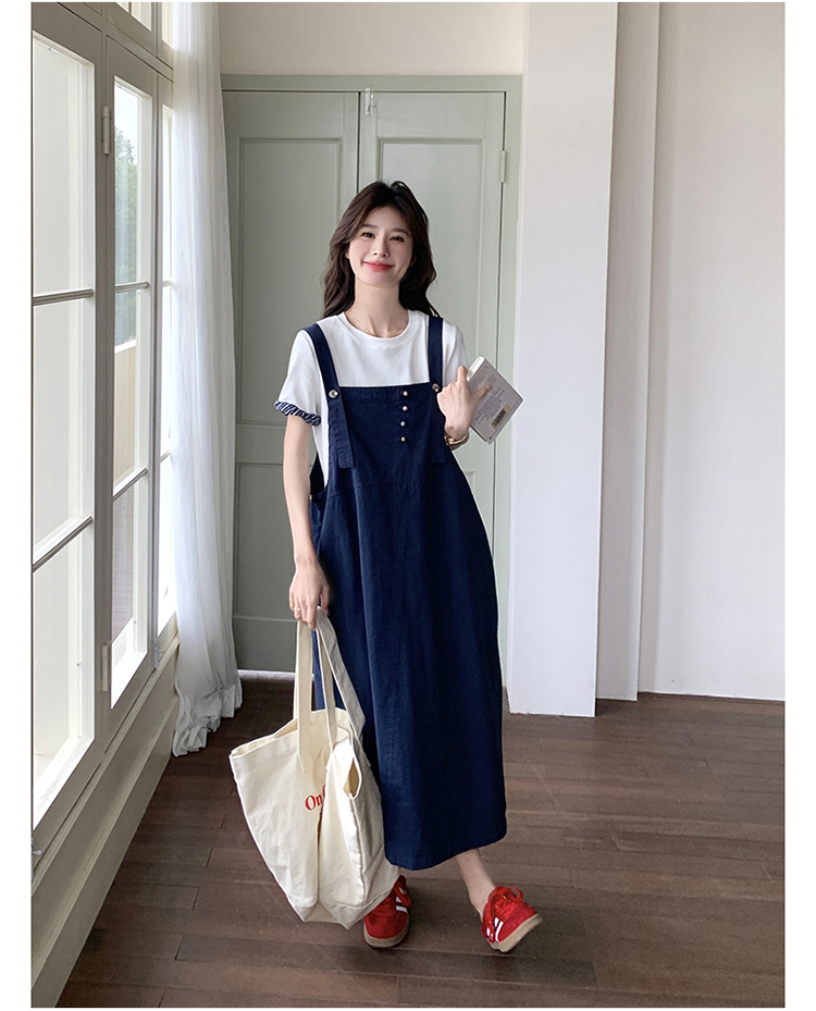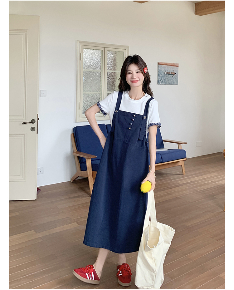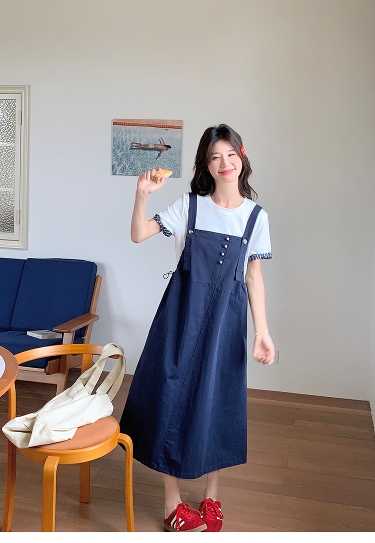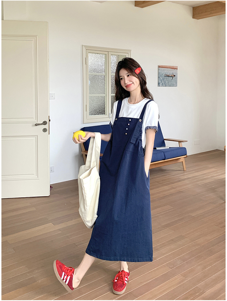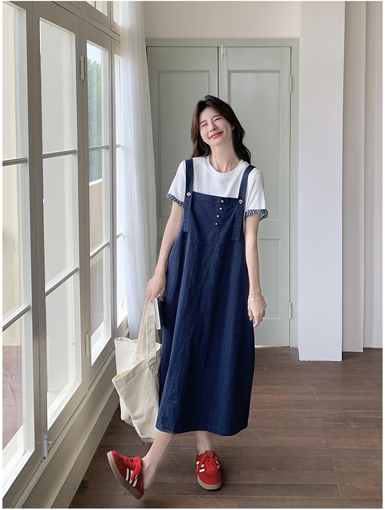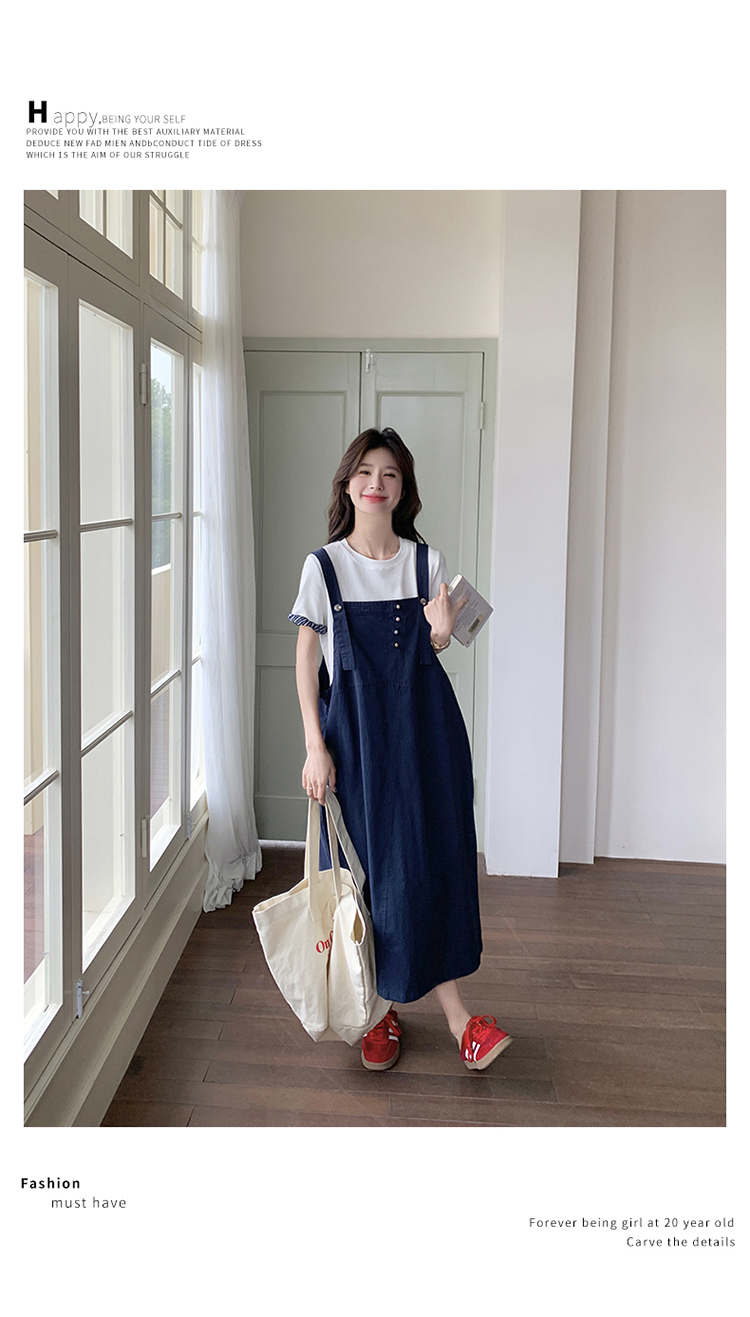 獨家訂製│2件式 韓系小清新撞色上衣+抽繩收腰吊帶裙(04A1268)