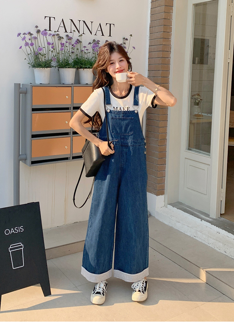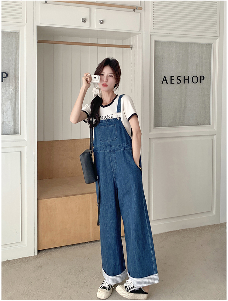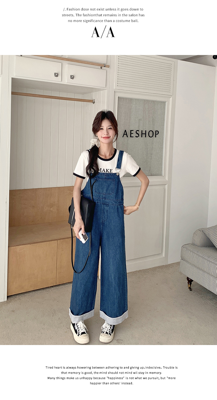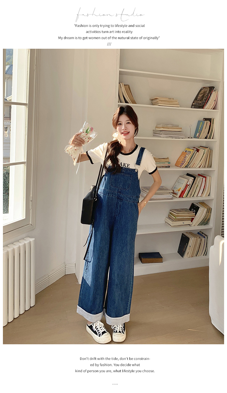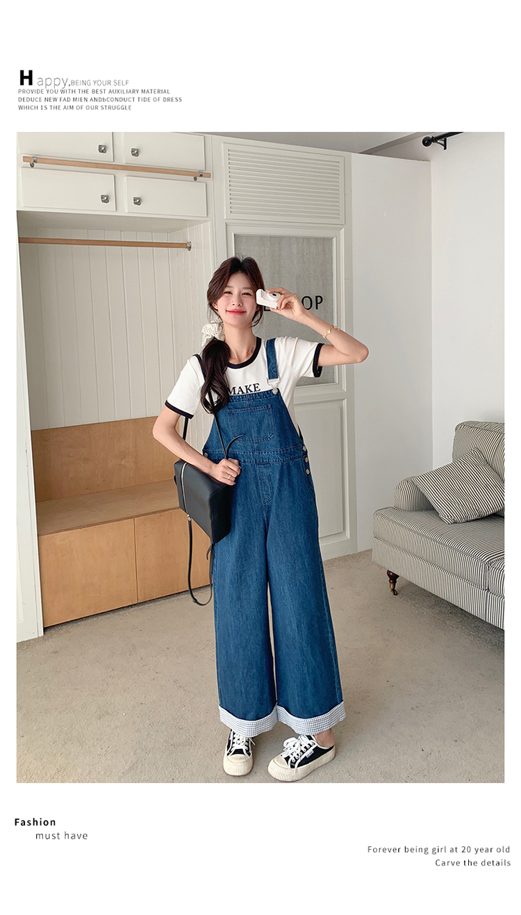 獨家訂製│韓系甜酷風格紋褲腳闊腿吊帶褲(04A1270)