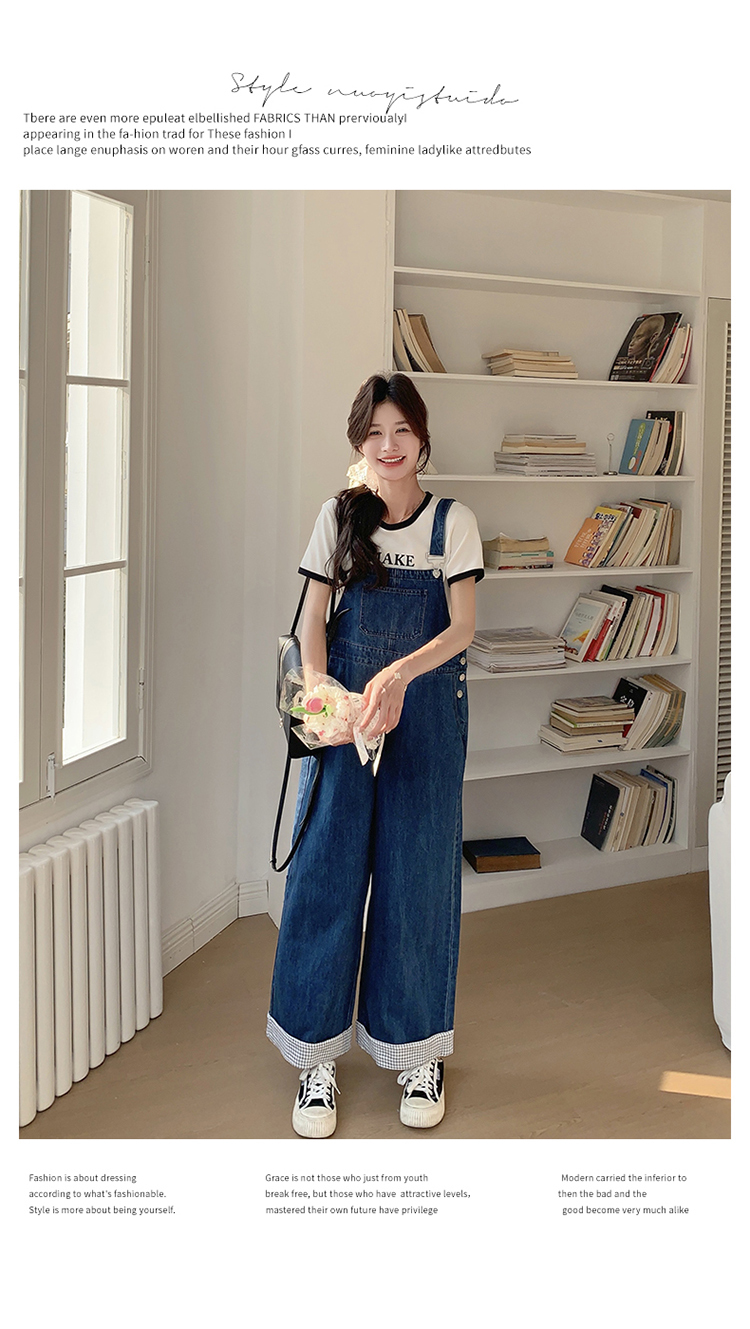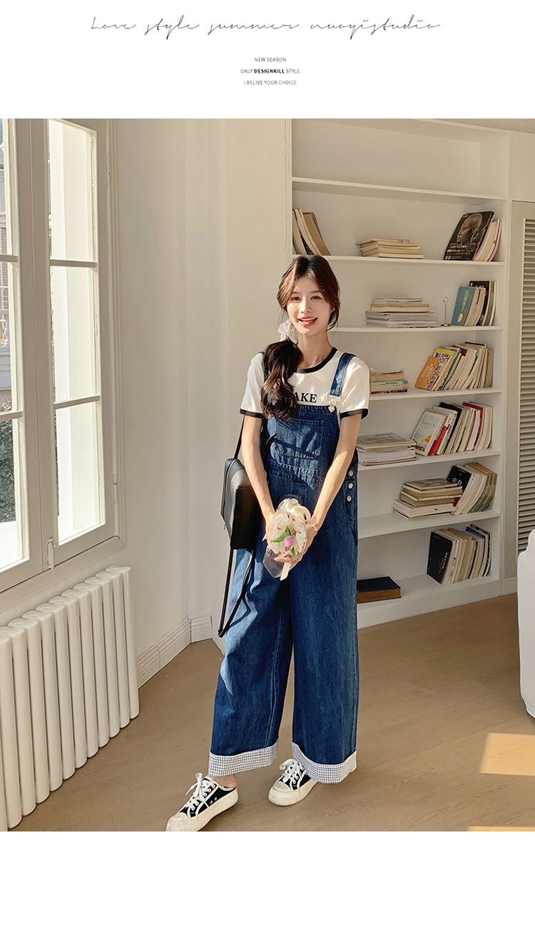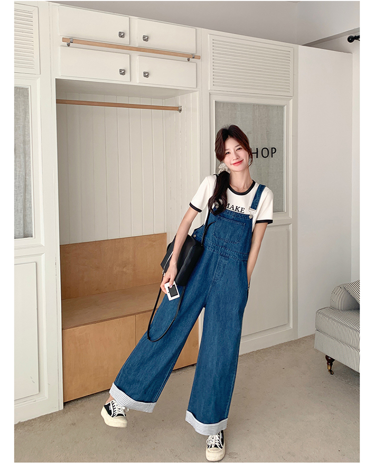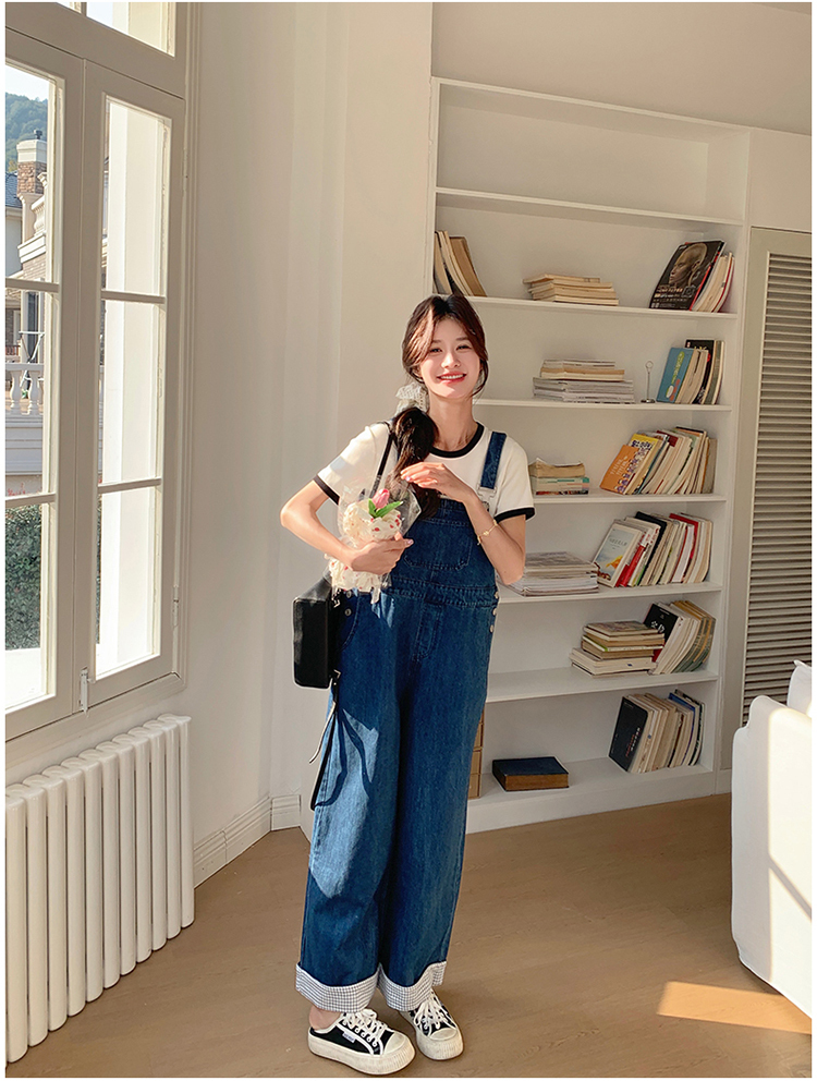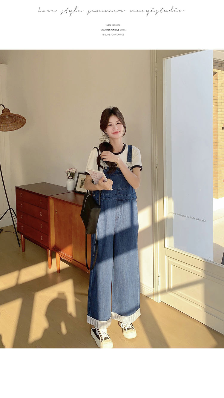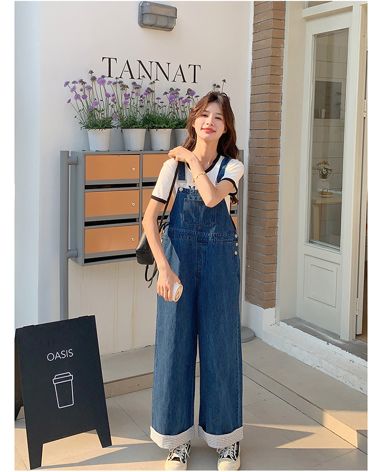 獨家訂製│韓系甜酷風格紋褲腳闊腿吊帶褲(04A1270)