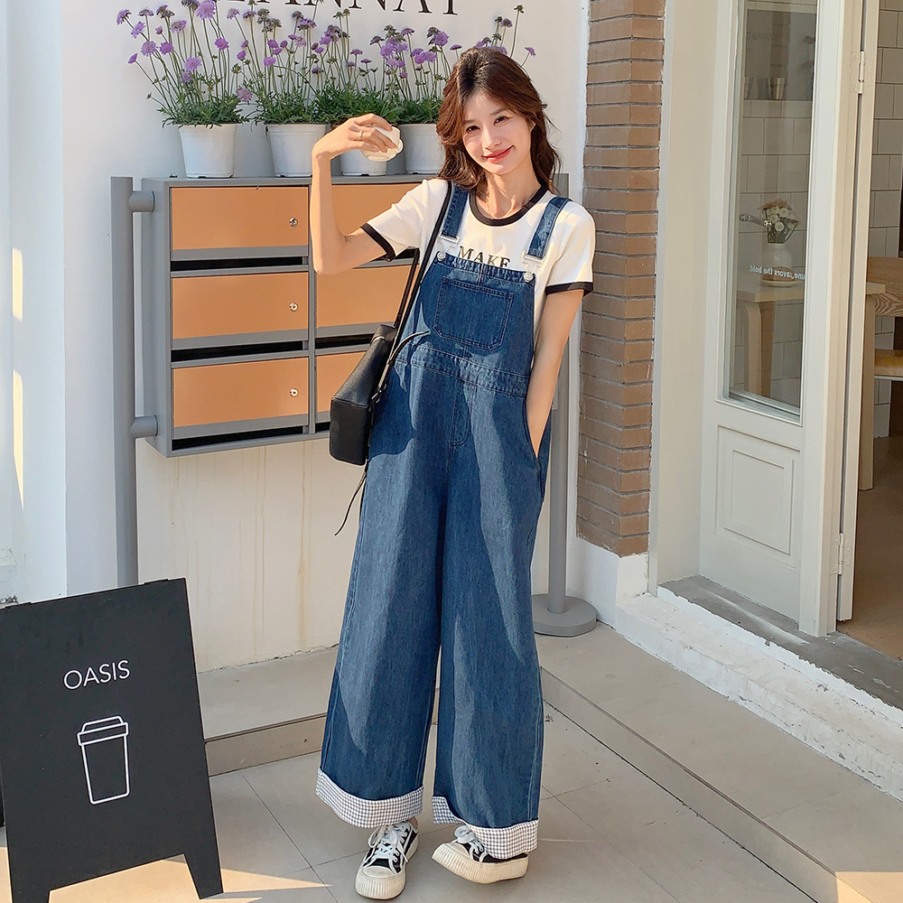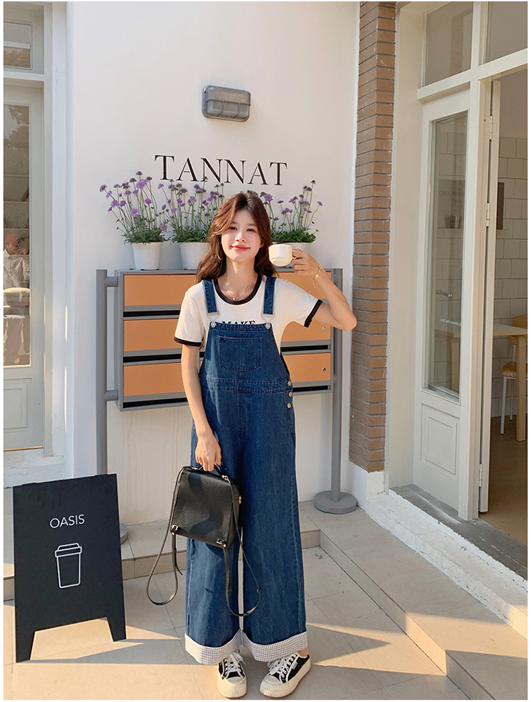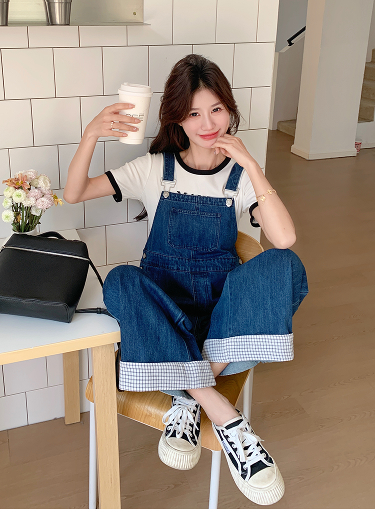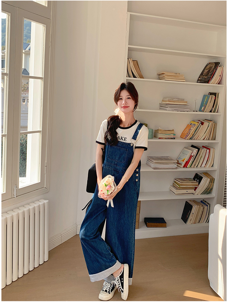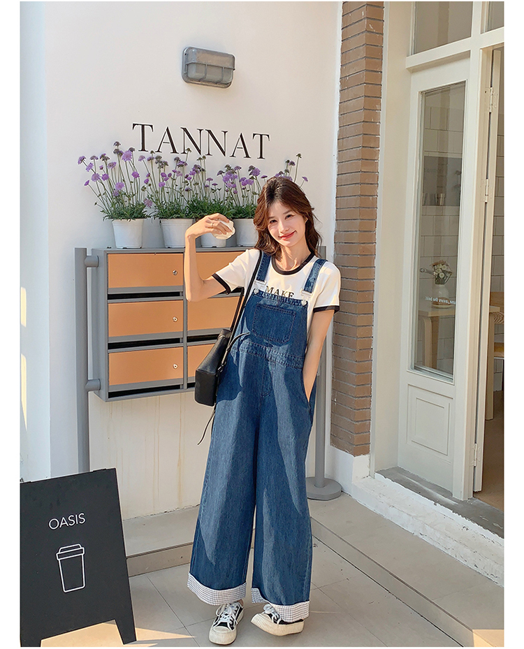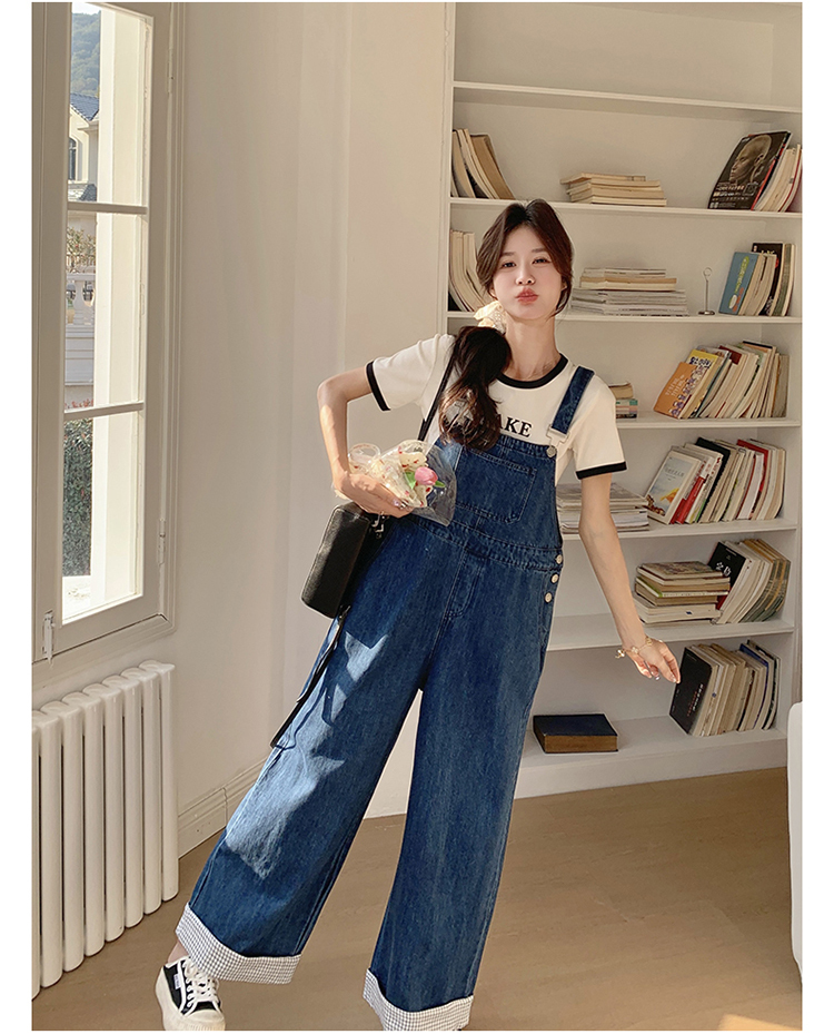 獨家訂製│韓系甜酷風格紋褲腳闊腿吊帶褲(04A1270)