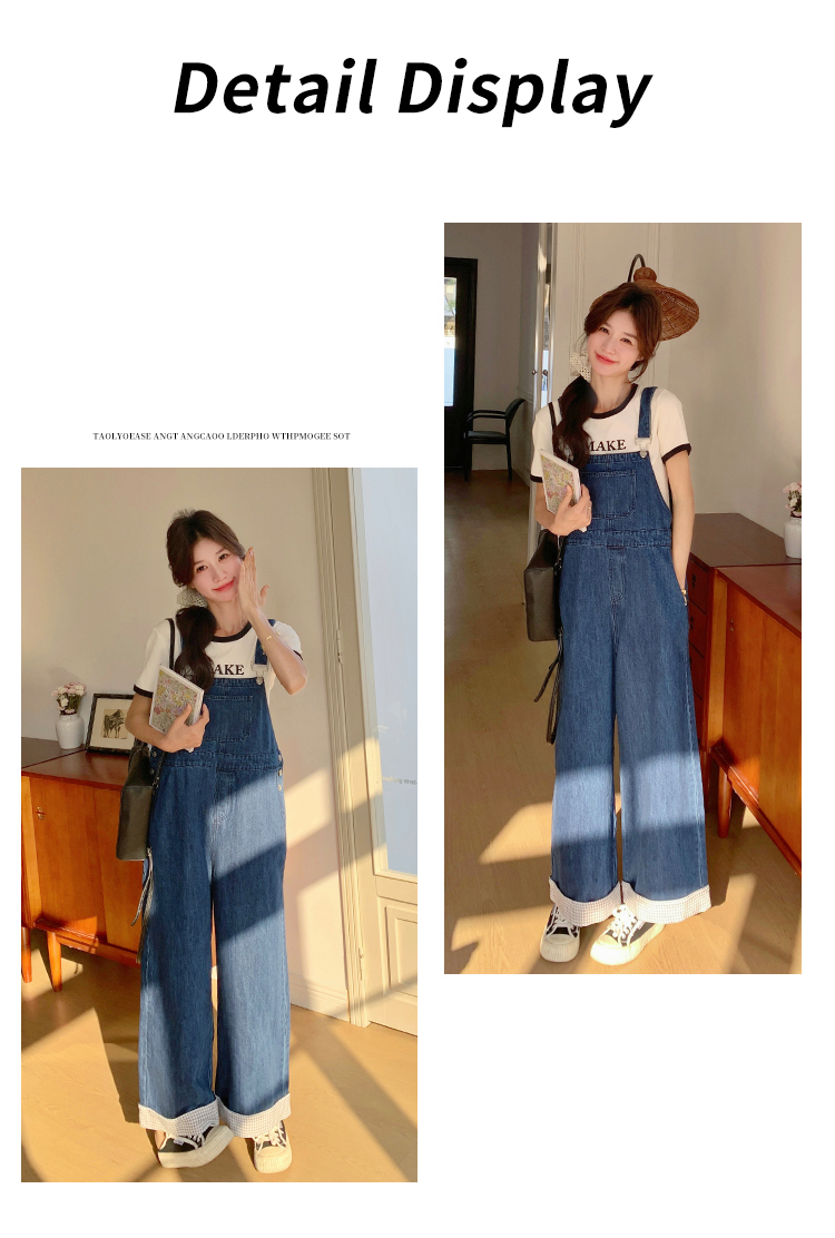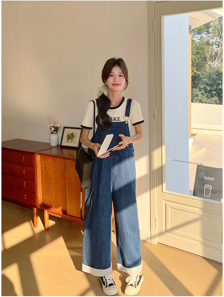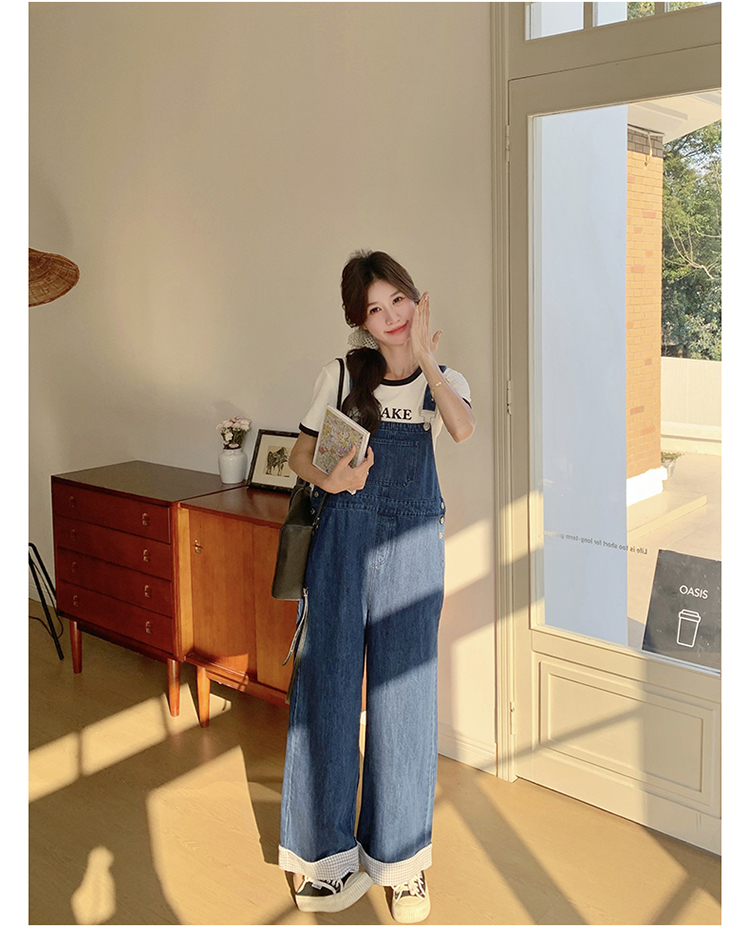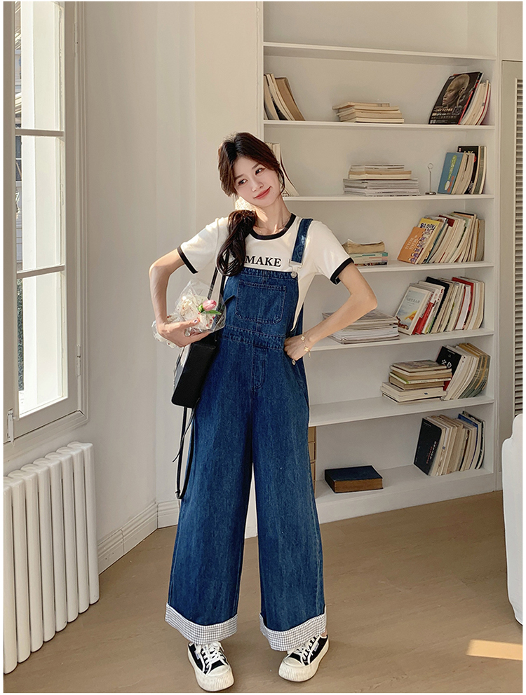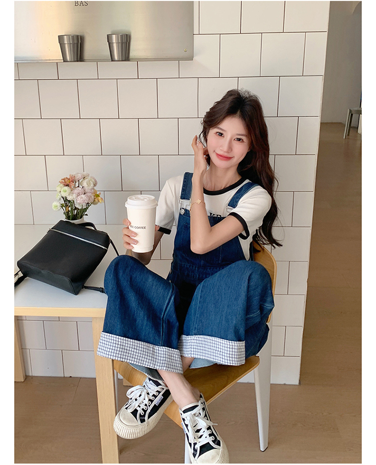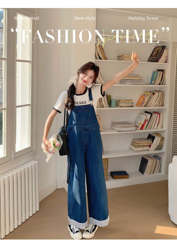 獨家訂製│韓系甜酷風格紋褲腳闊腿吊帶褲(04A1270)