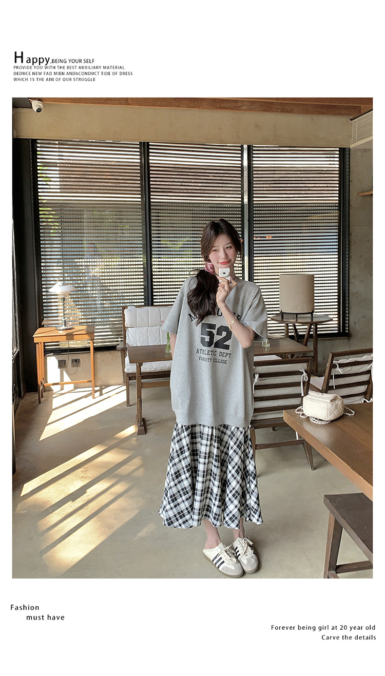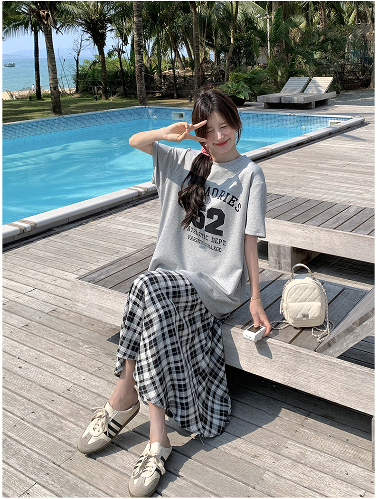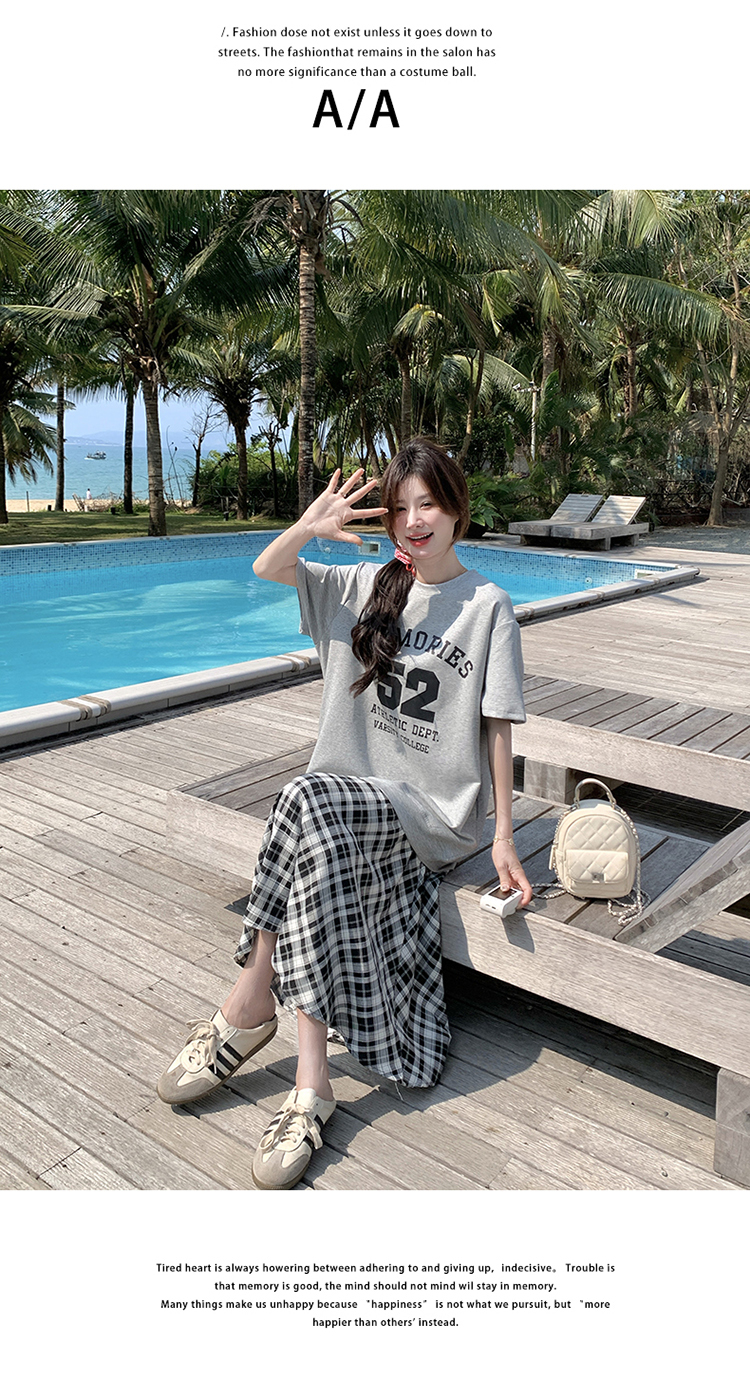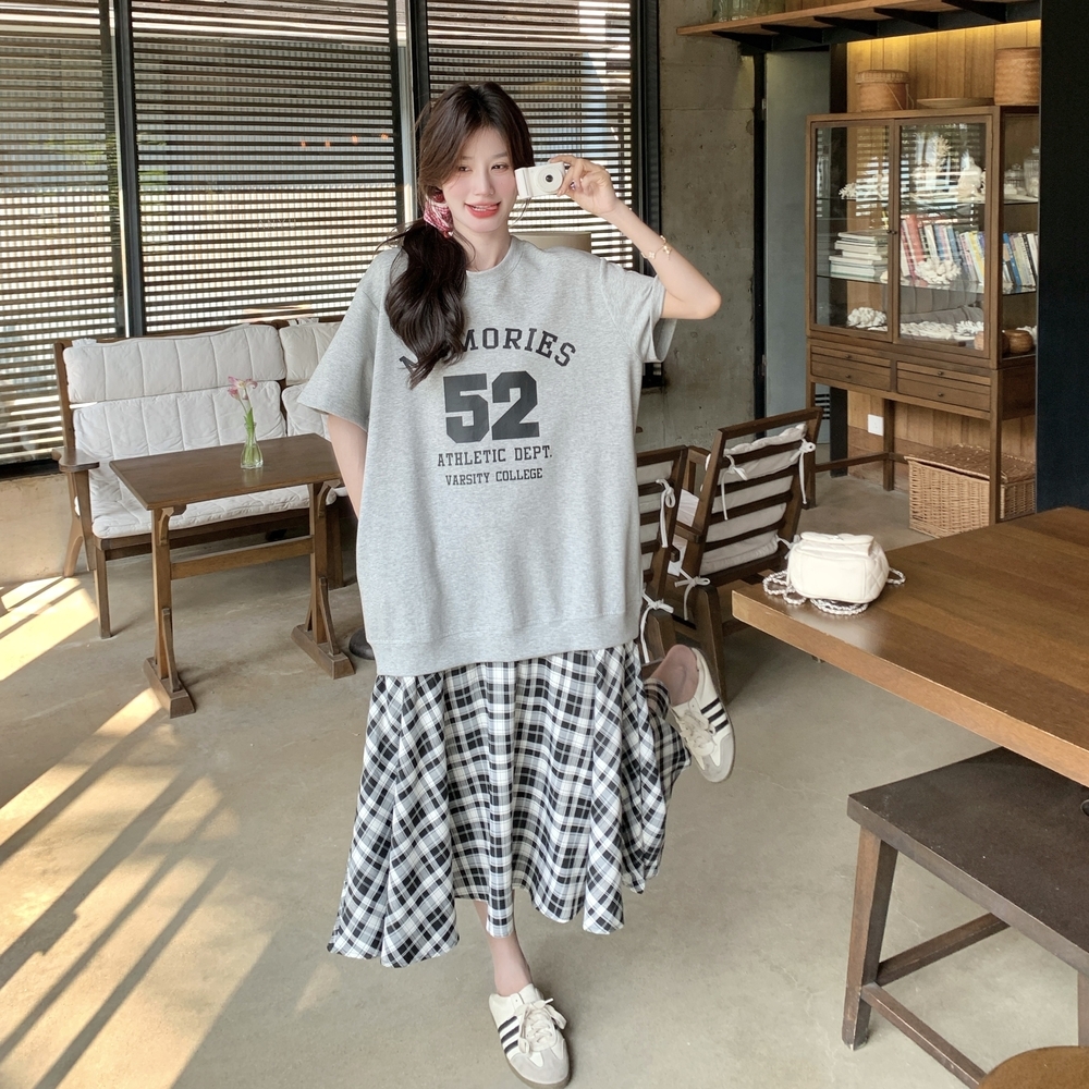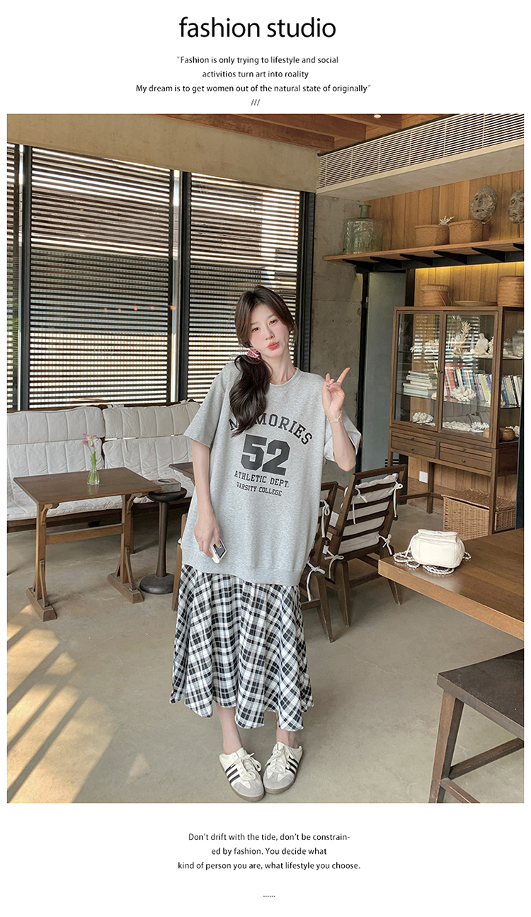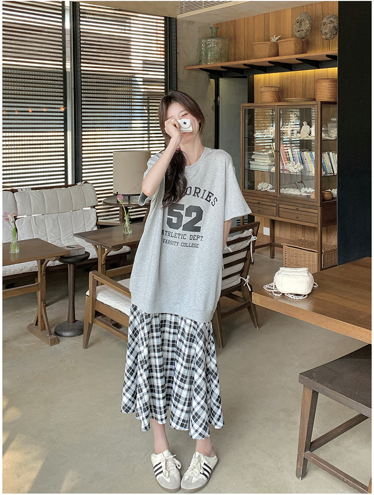 獨家訂製│假2件連衣裙 韓系休閒感格紋裙襬拼接連衣裙(04A1279)
