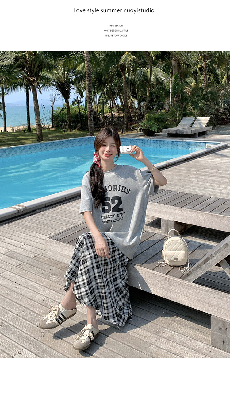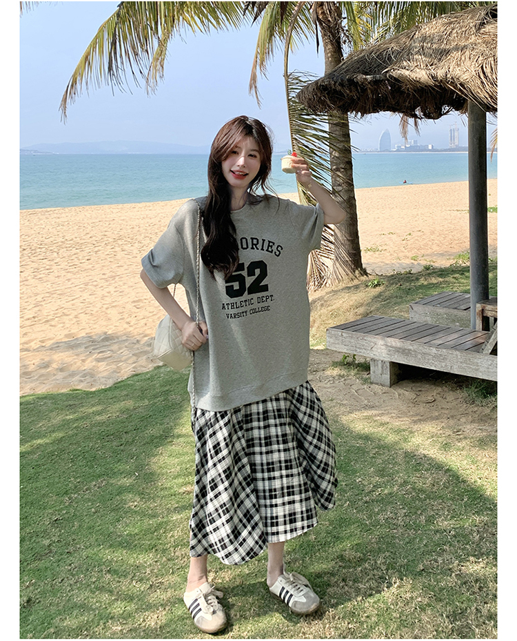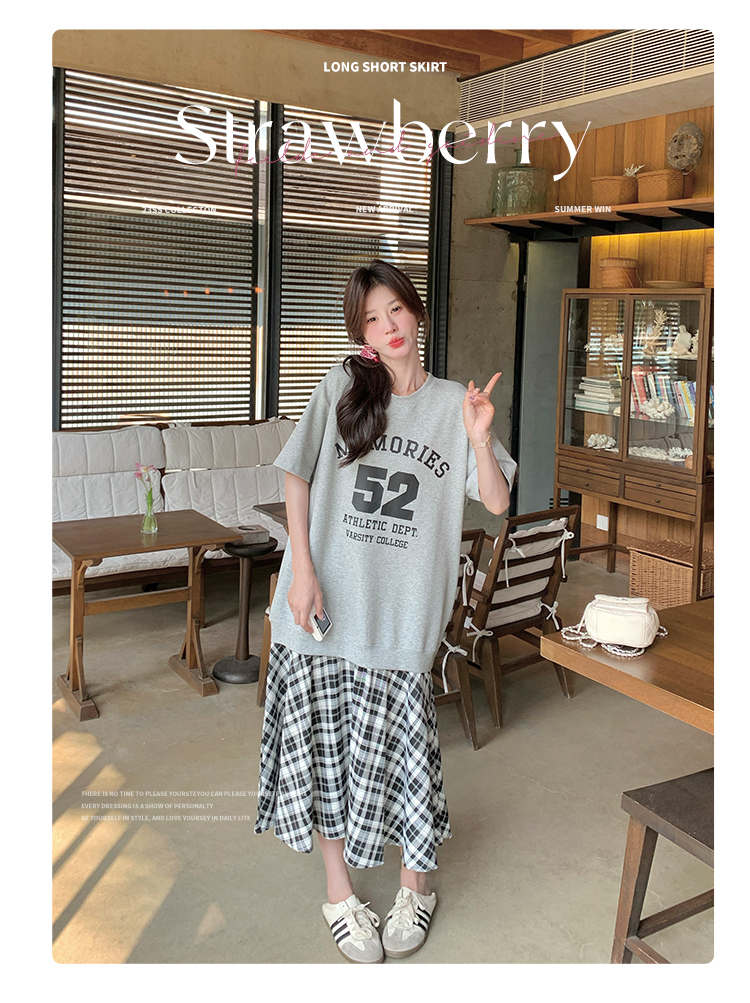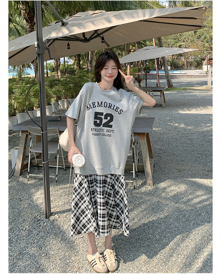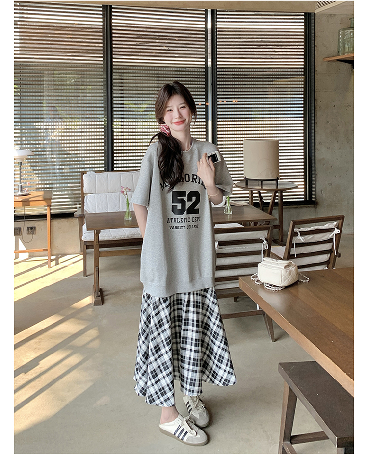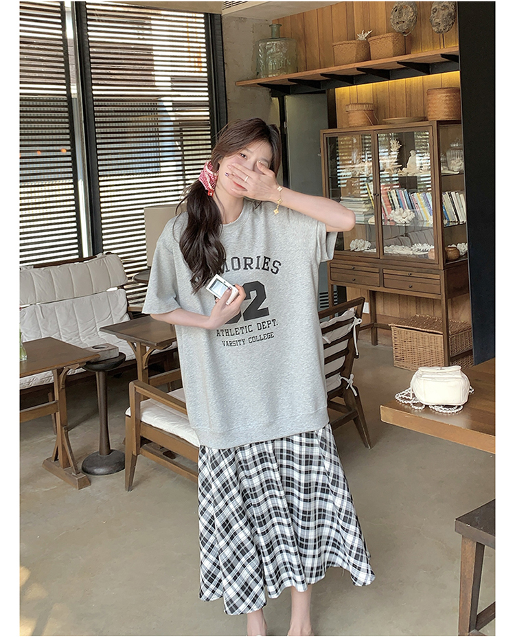 獨家訂製│假2件連衣裙 韓系休閒感格紋裙襬拼接連衣裙(04A1279)