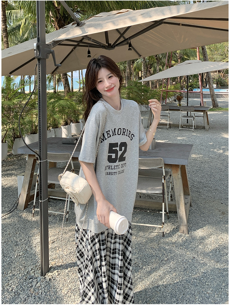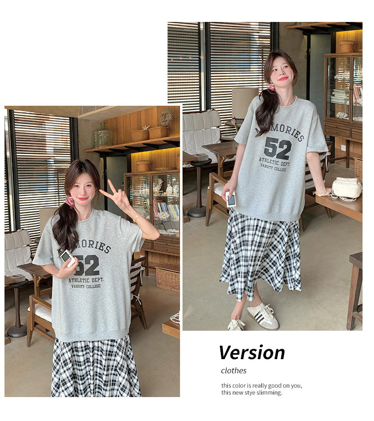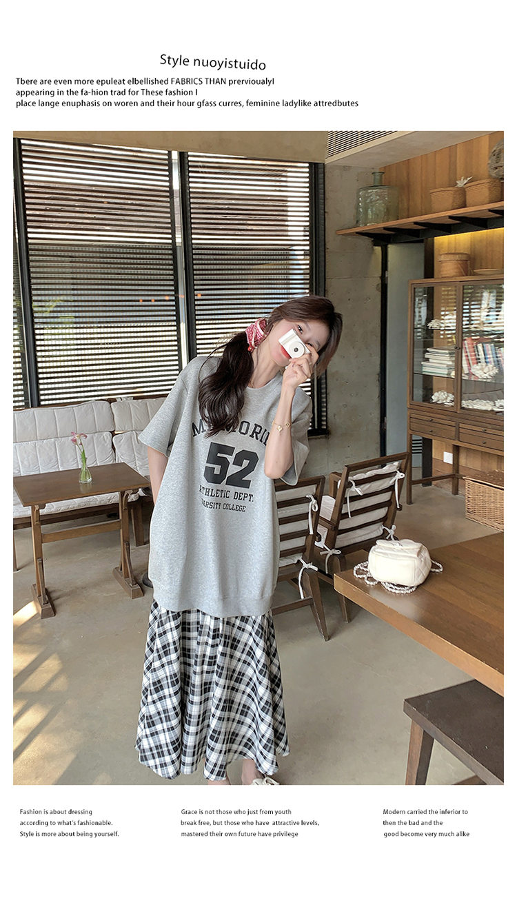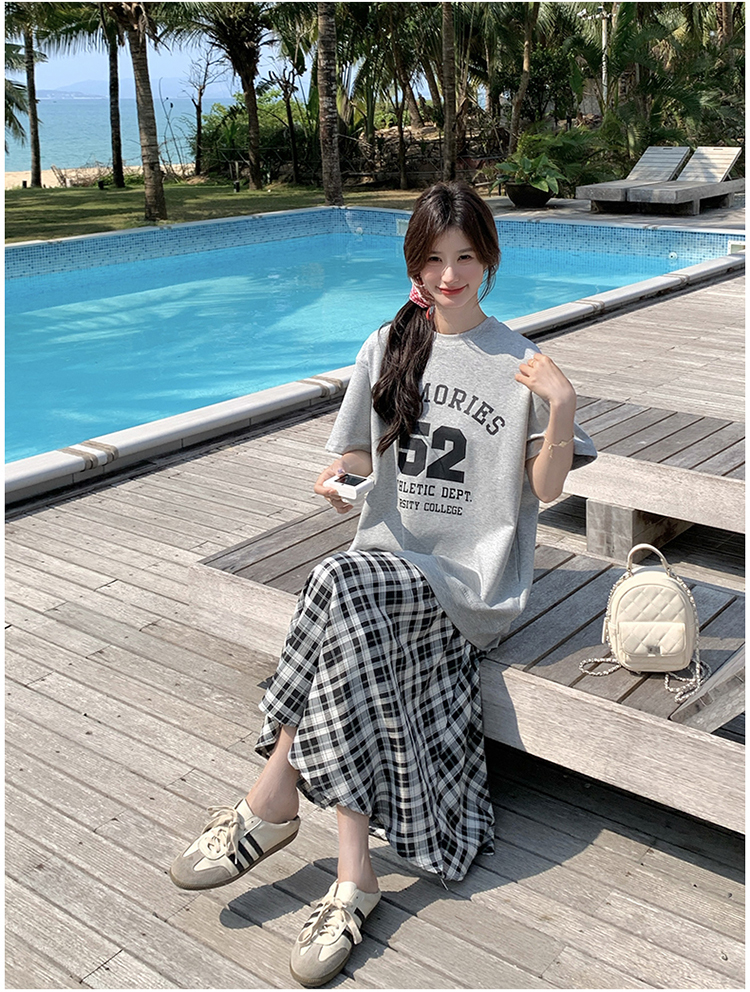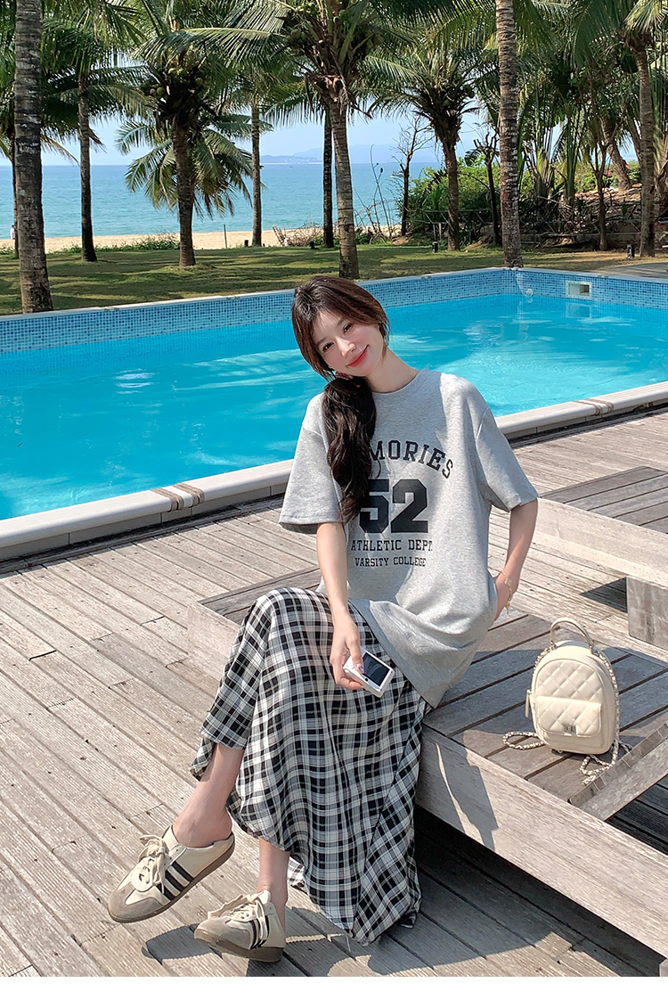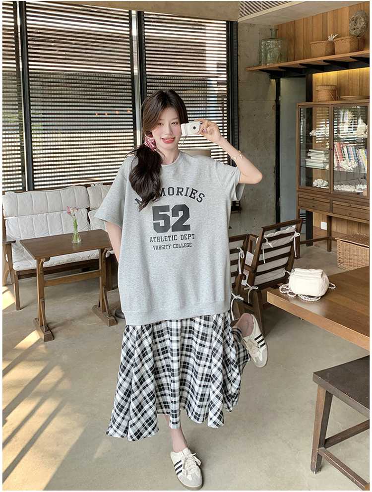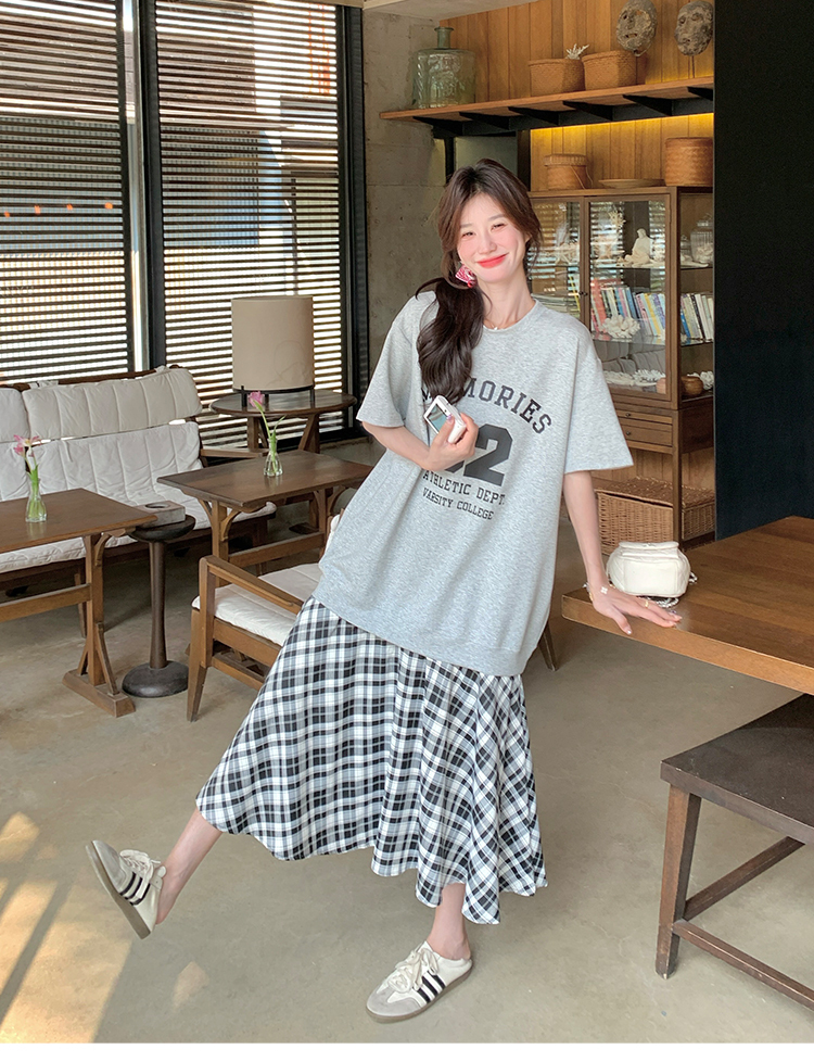 獨家訂製│假2件連衣裙 韓系休閒感格紋裙襬拼接連衣裙(04A1279)