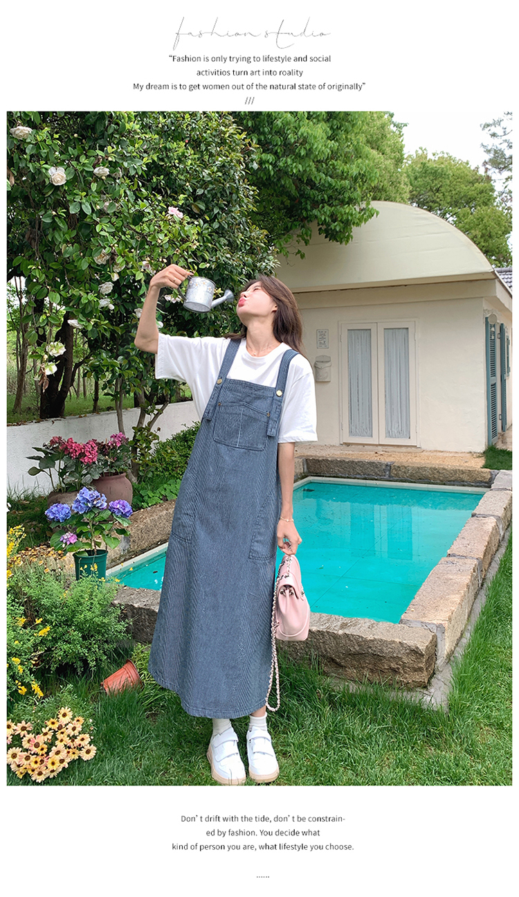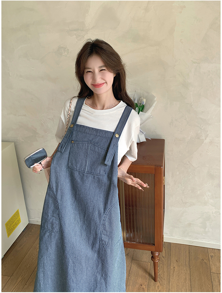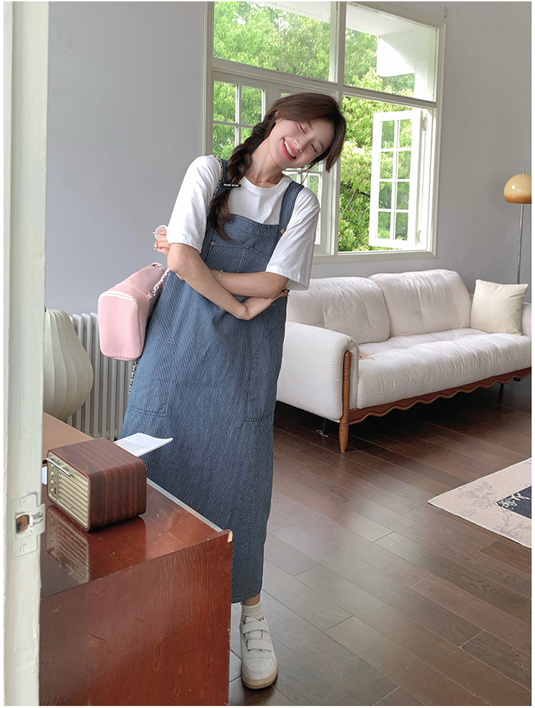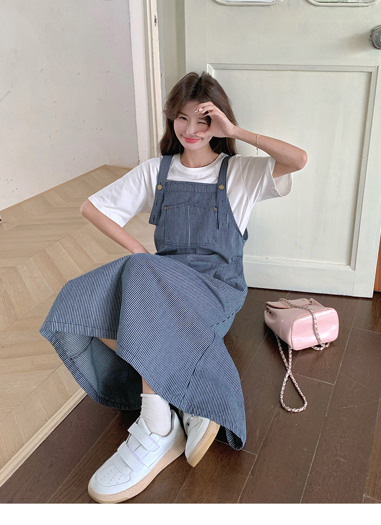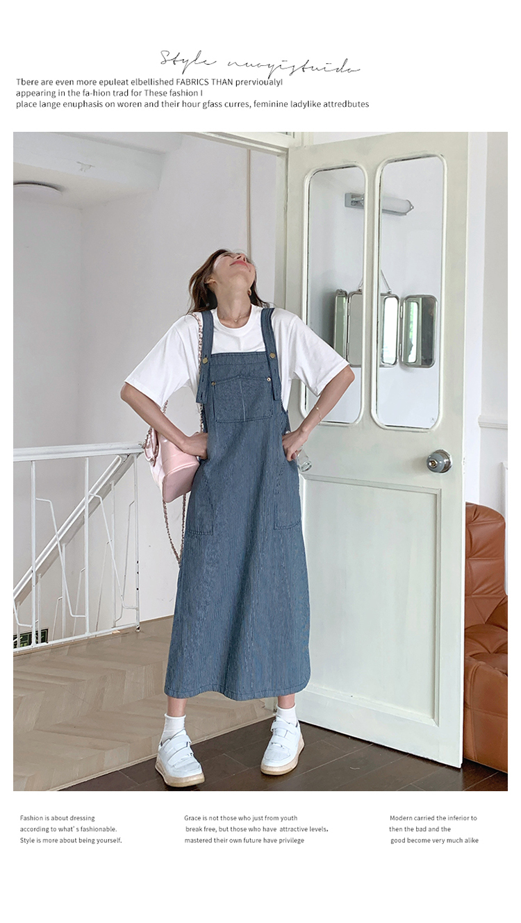 獨家訂製│韓系小清新豎條紋造型吊帶裙(04A1281)