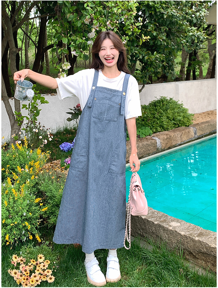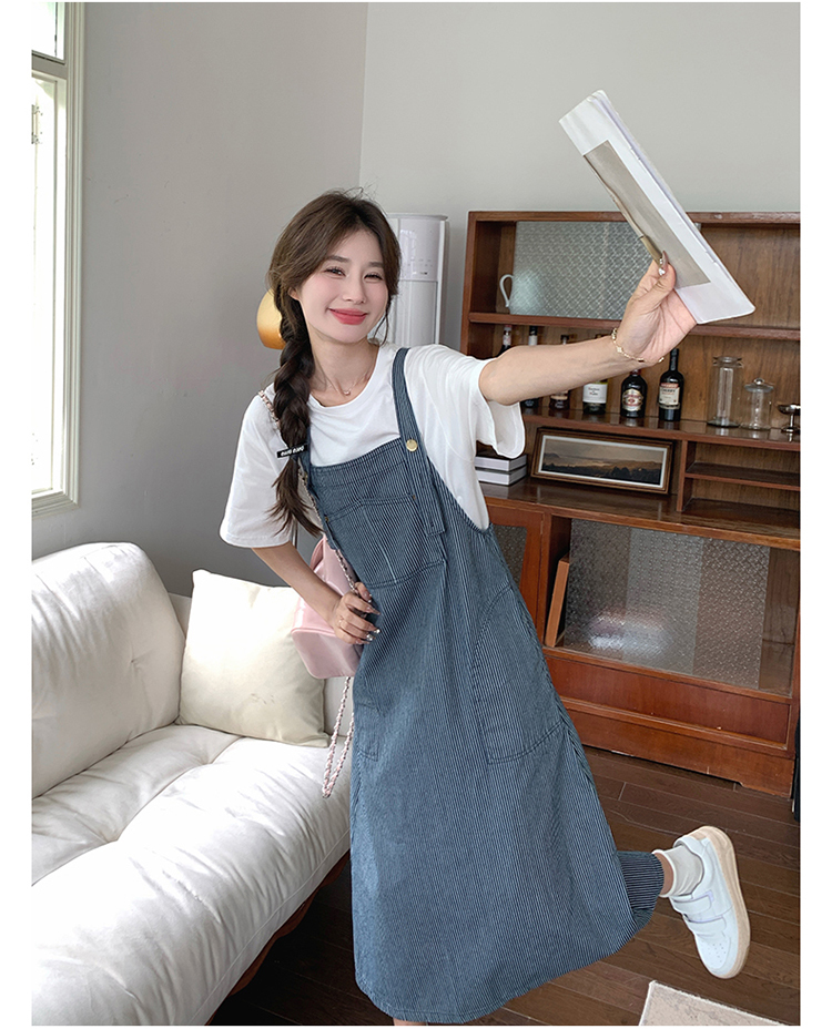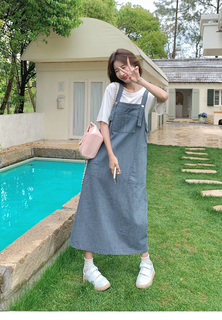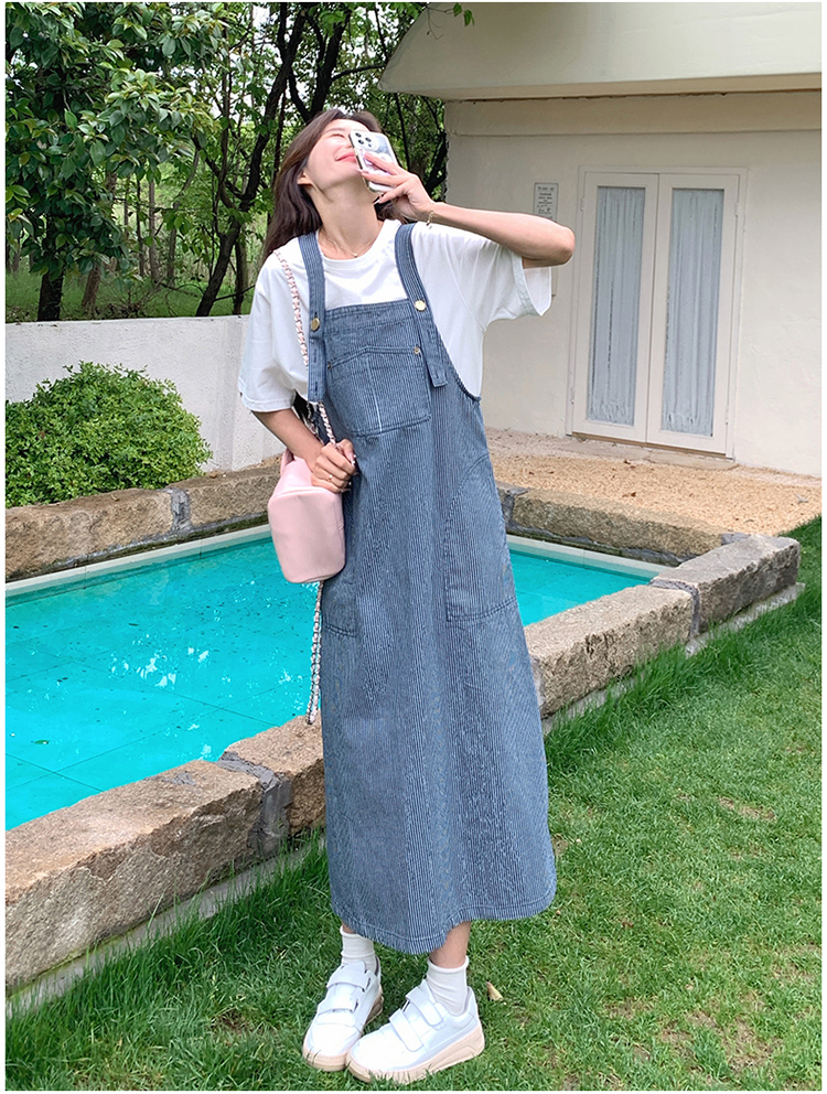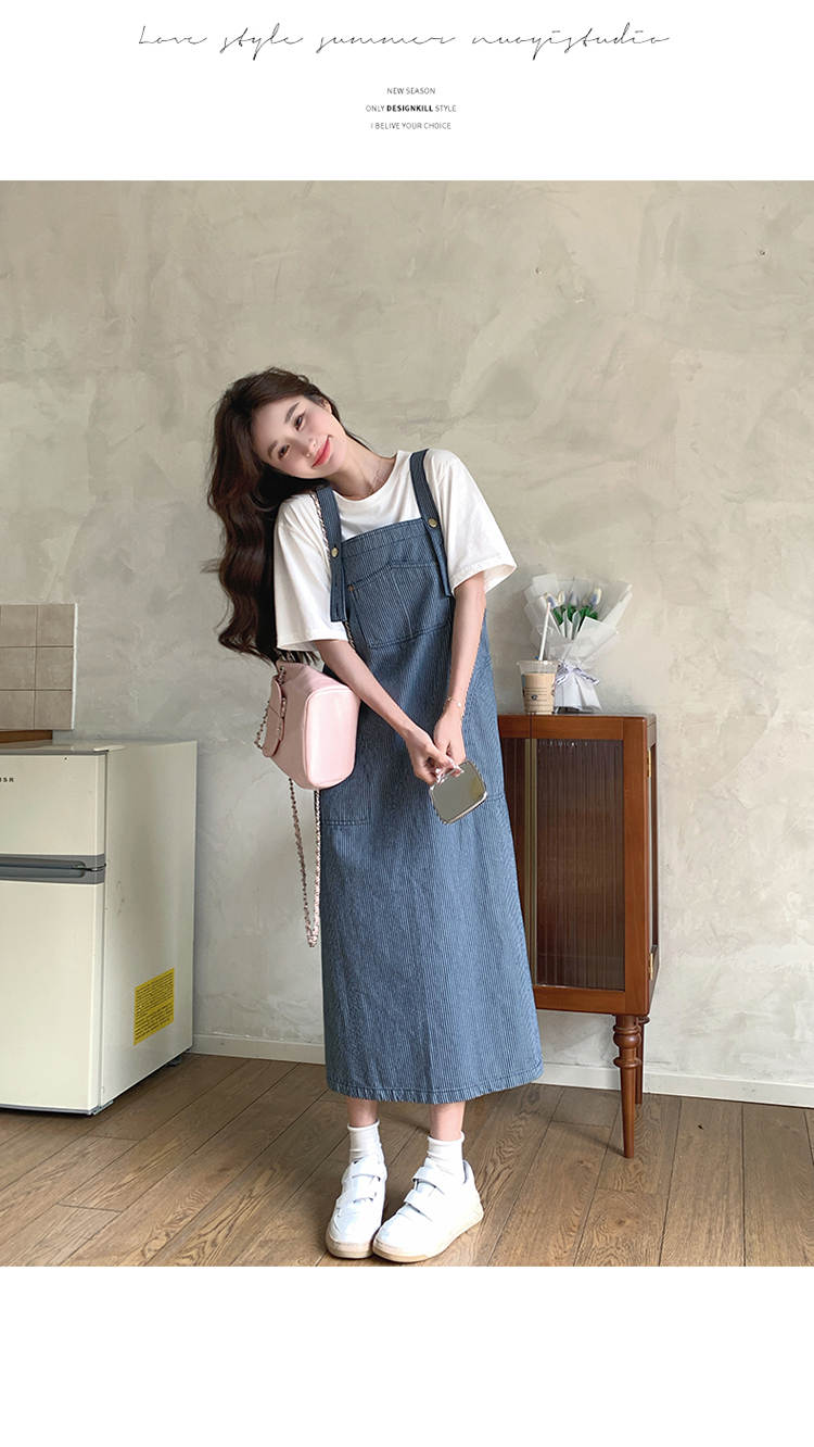 獨家訂製│韓系小清新豎條紋造型吊帶裙(04A1281)
