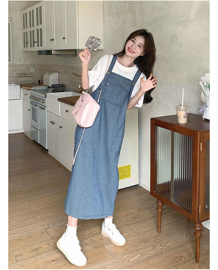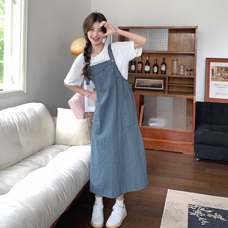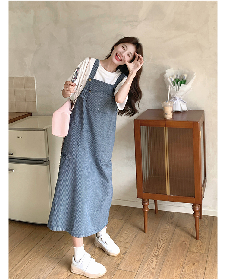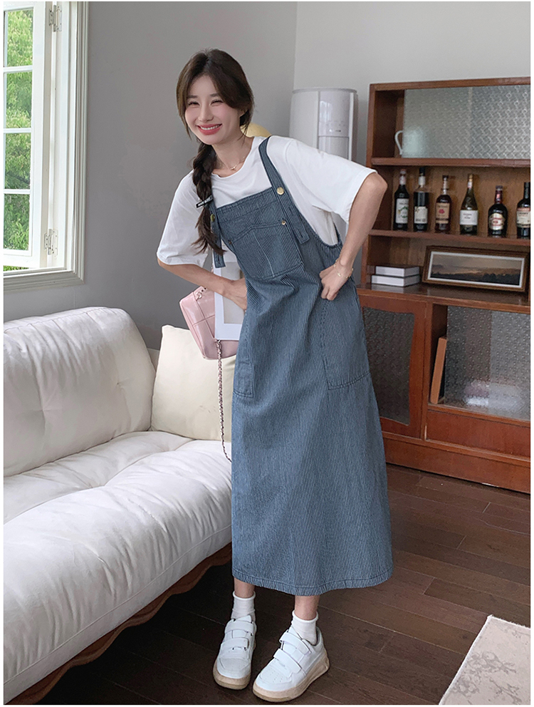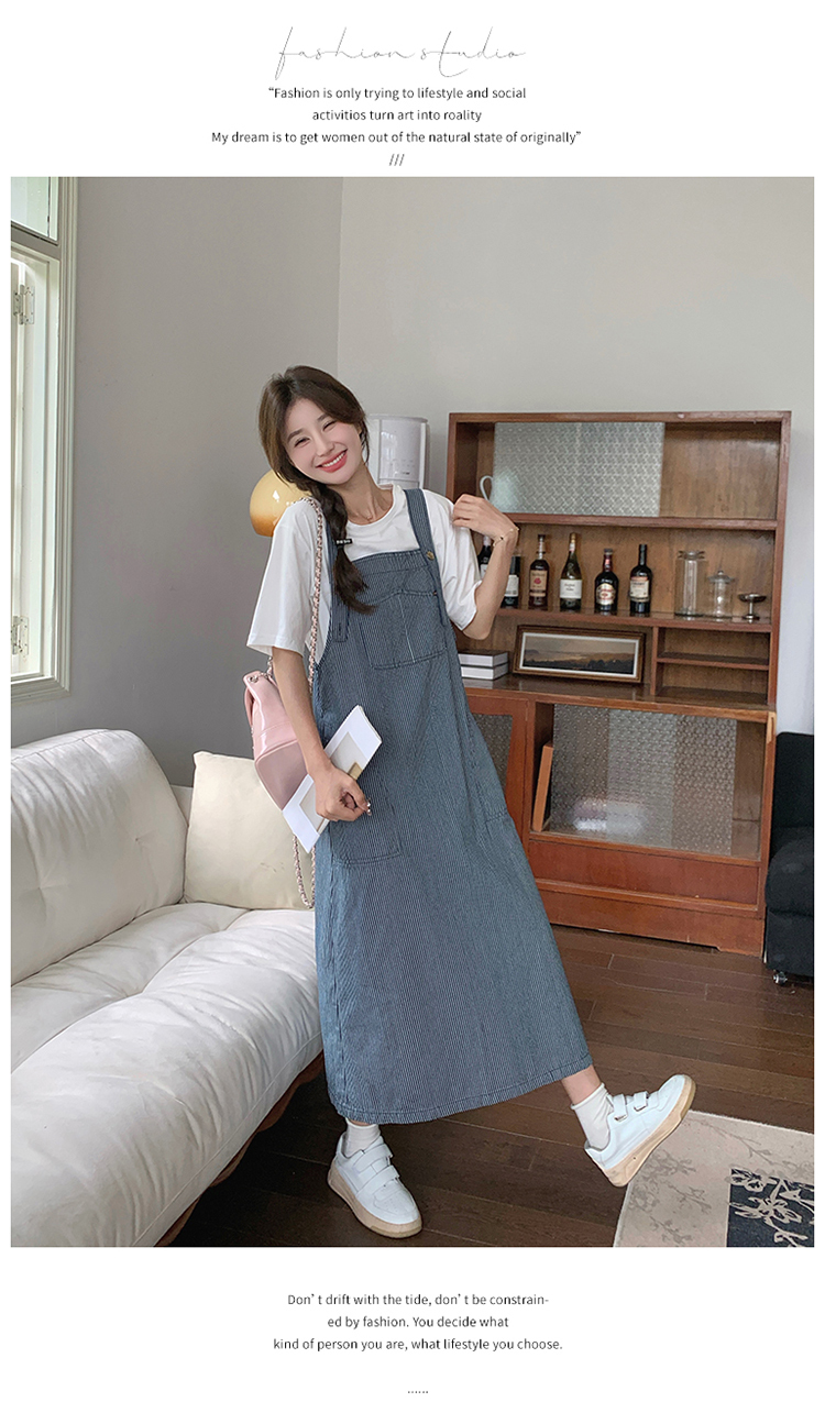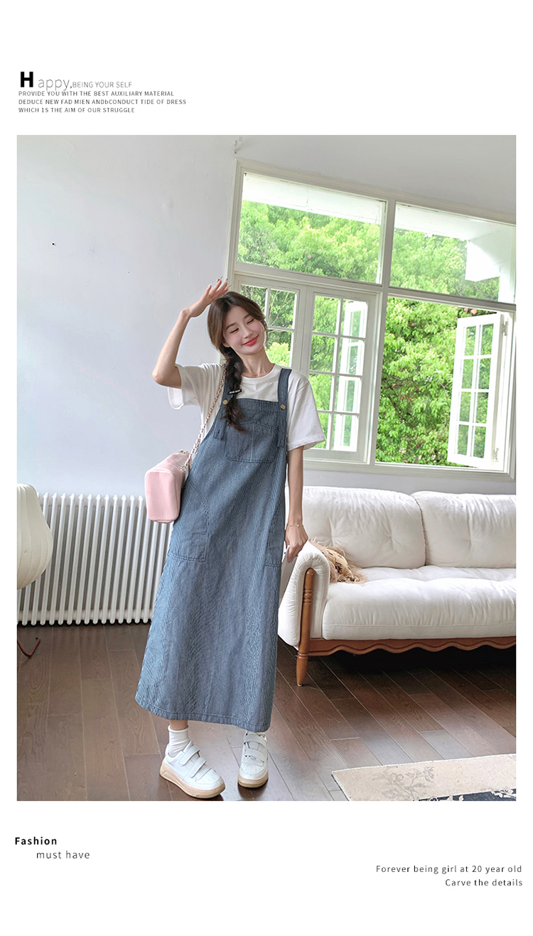 獨家訂製│韓系小清新豎條紋造型吊帶裙(04A1281)