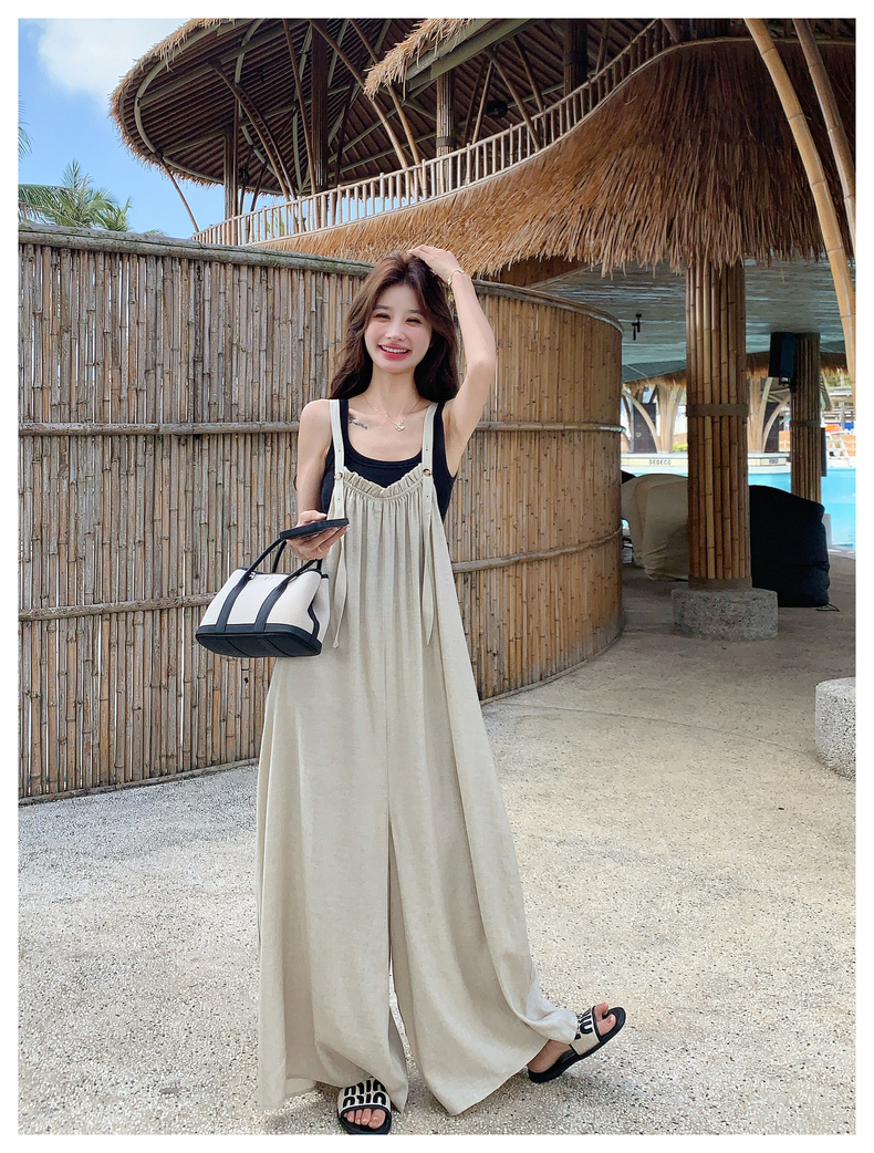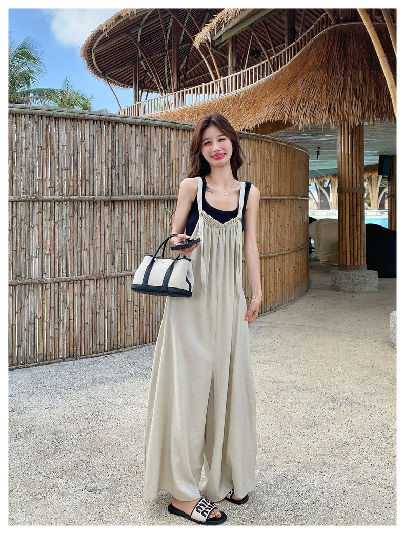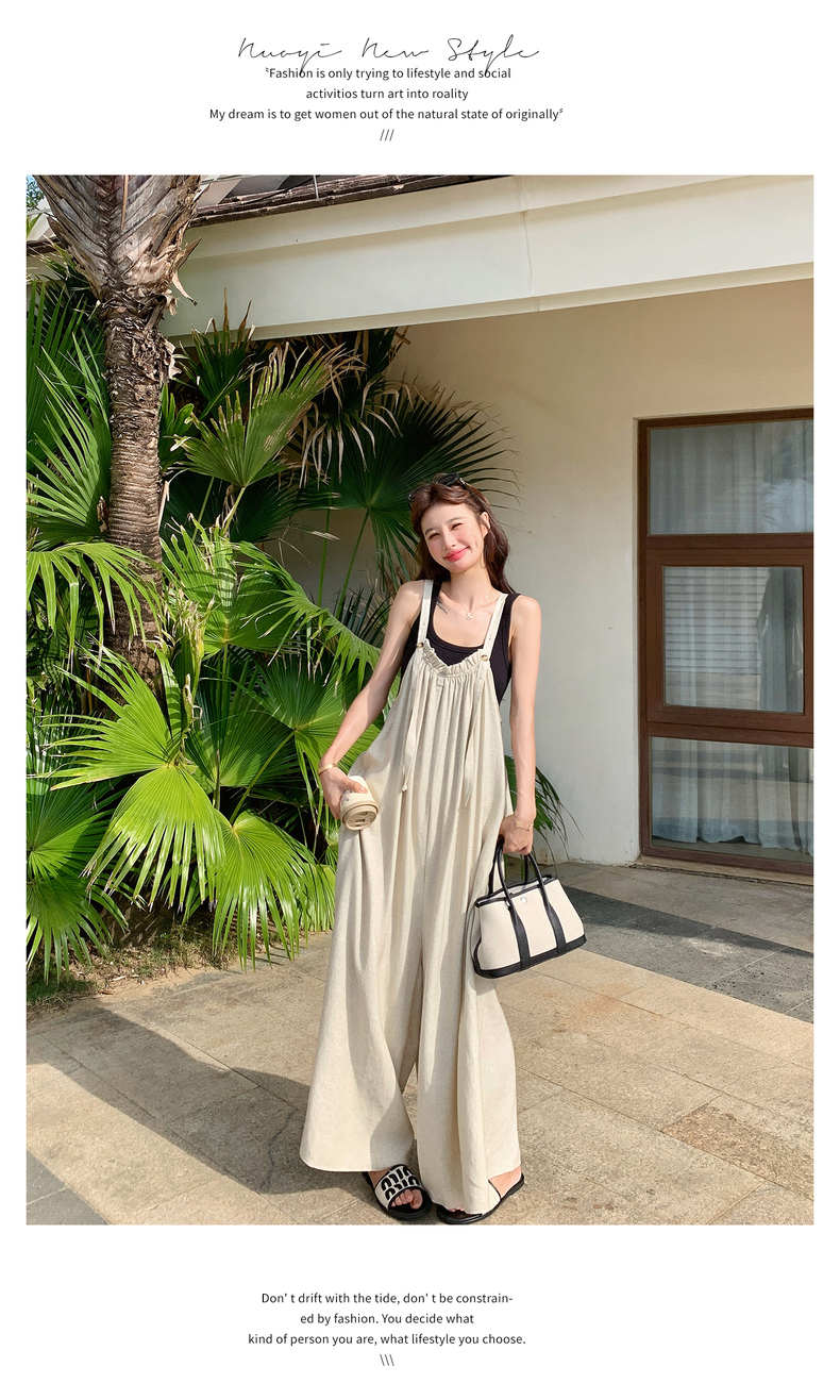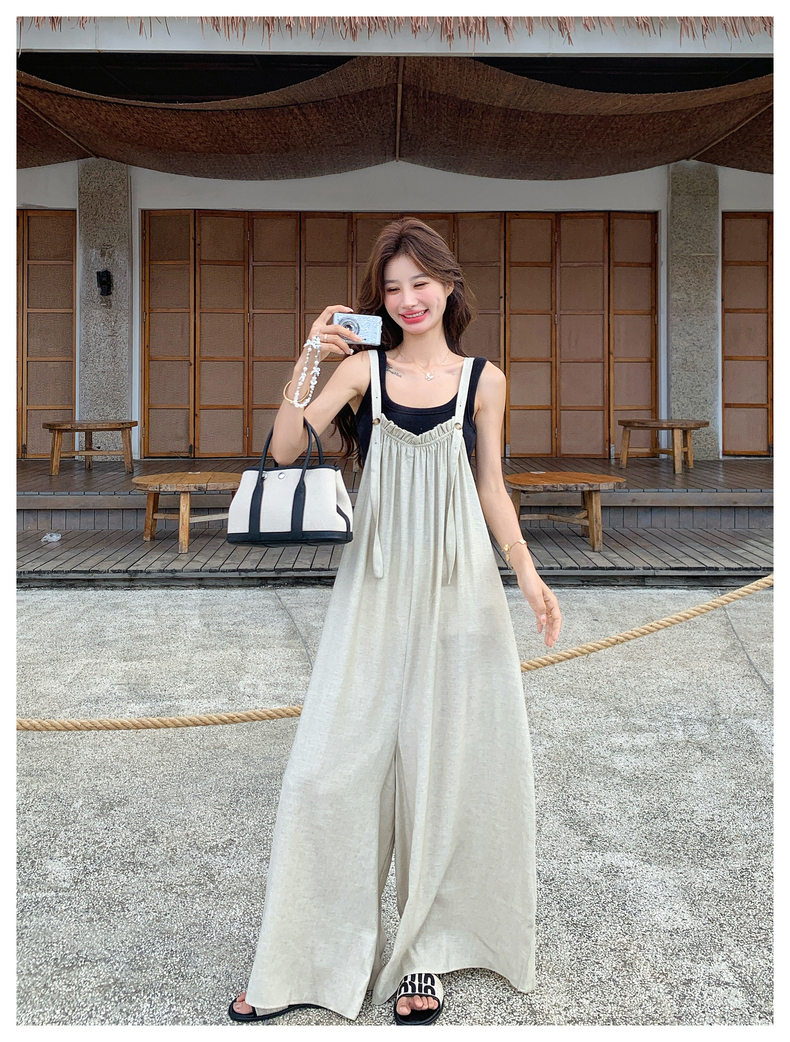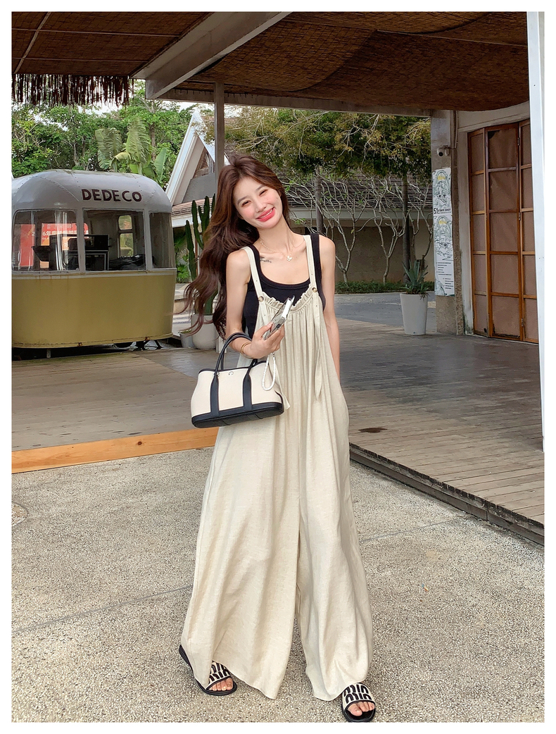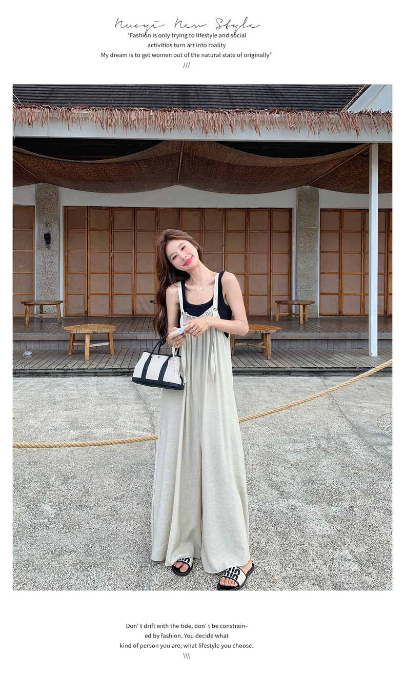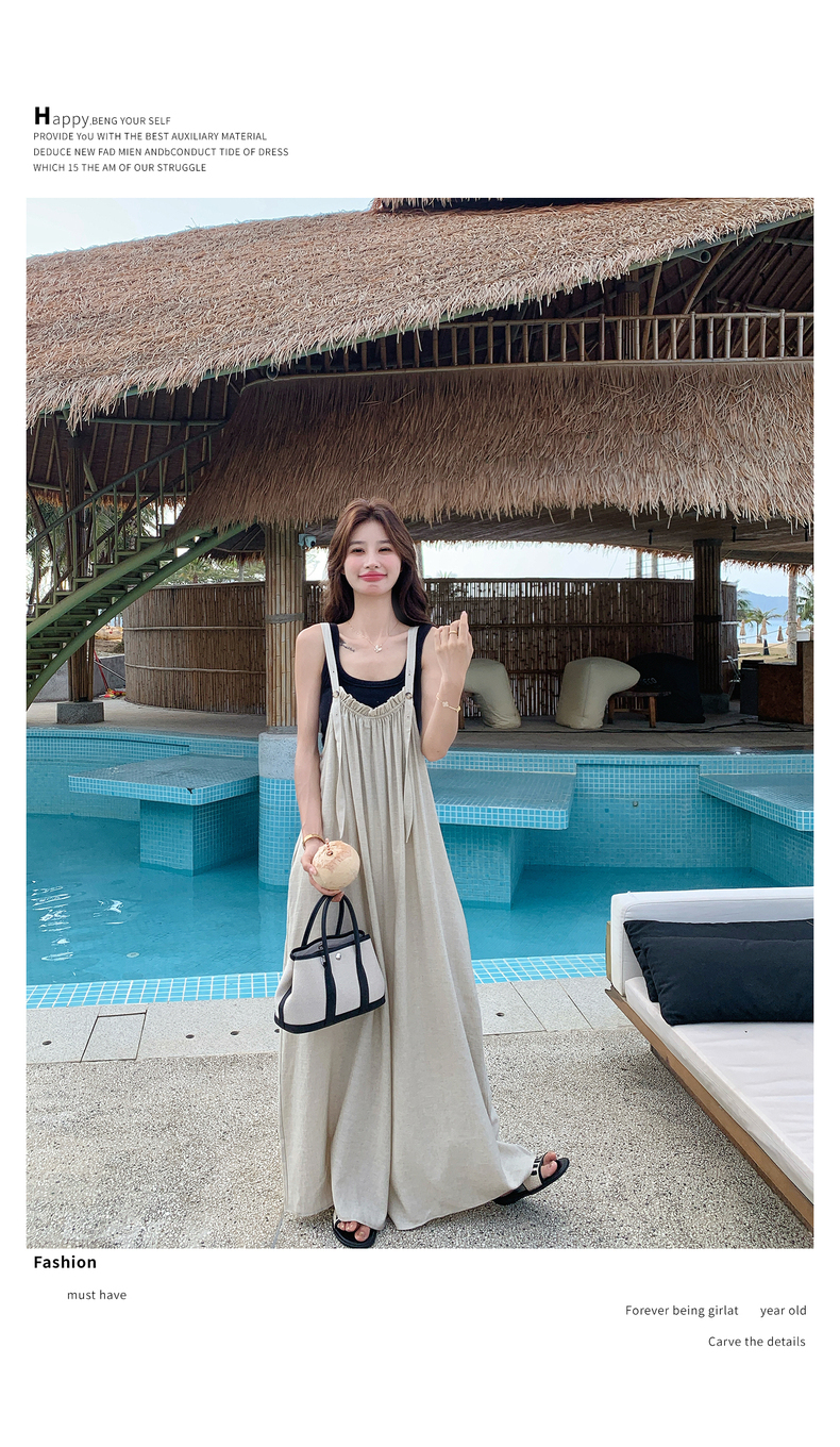 獨家訂製│抓褶大闊腿吊帶褲(04A2203)