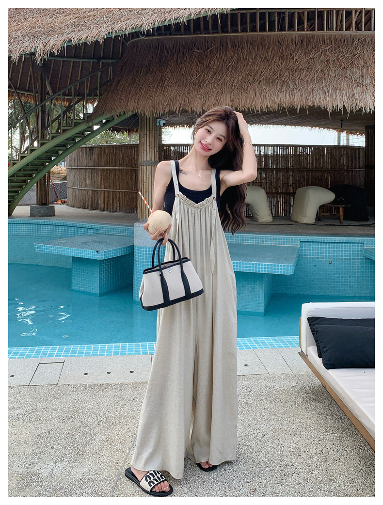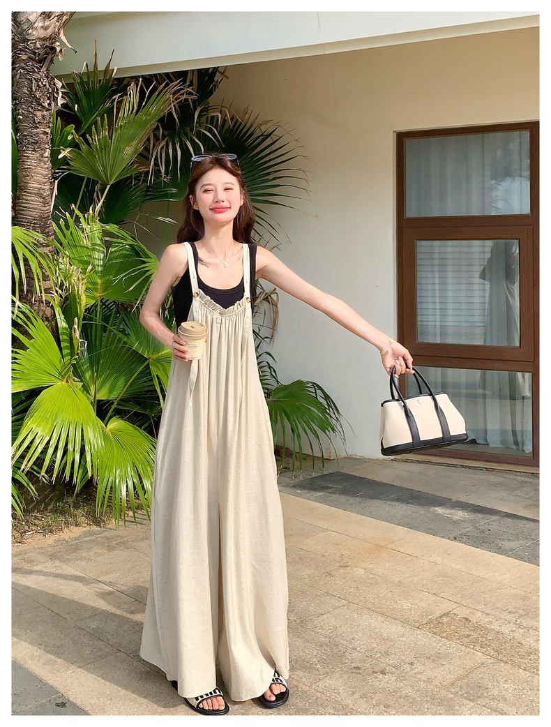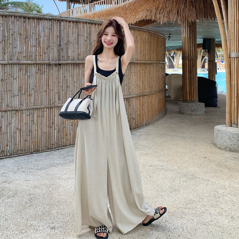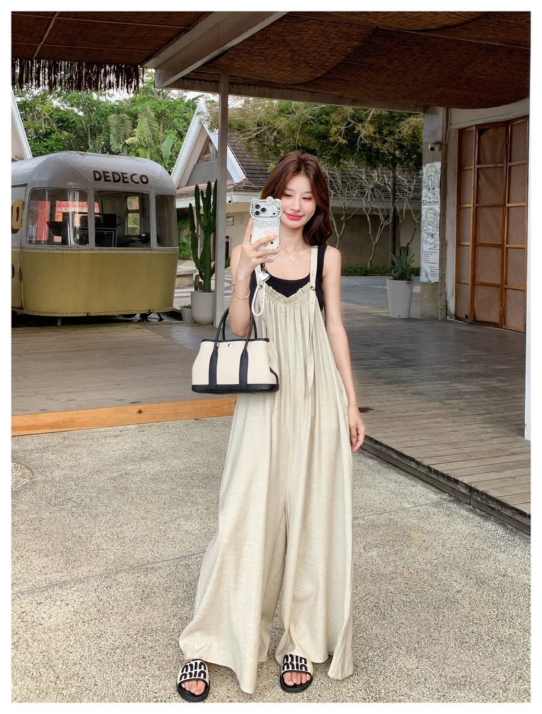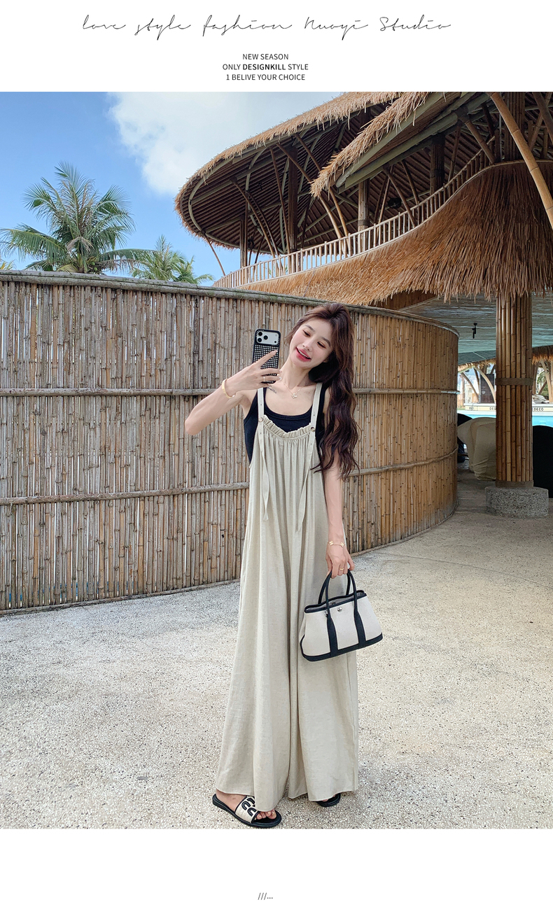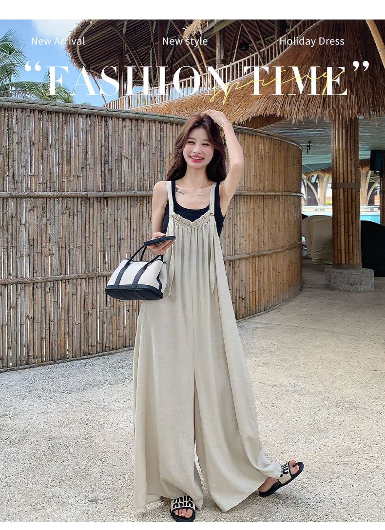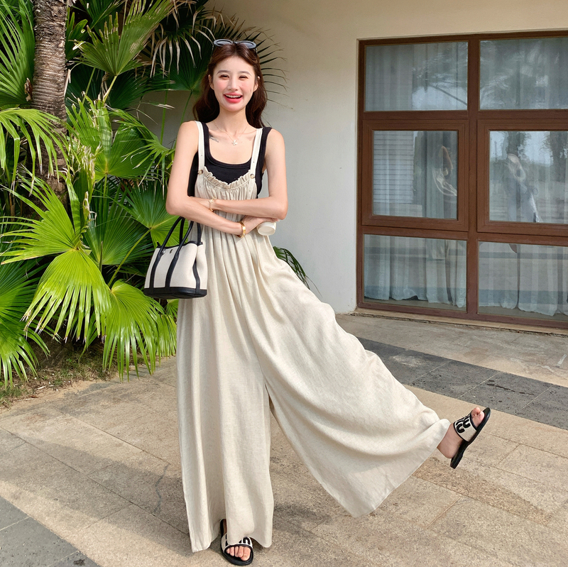 獨家訂製│抓褶大闊腿吊帶褲(04A2203)