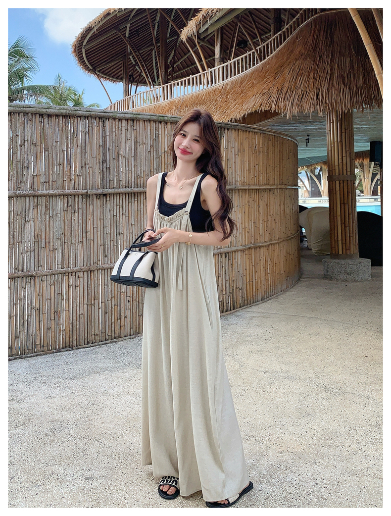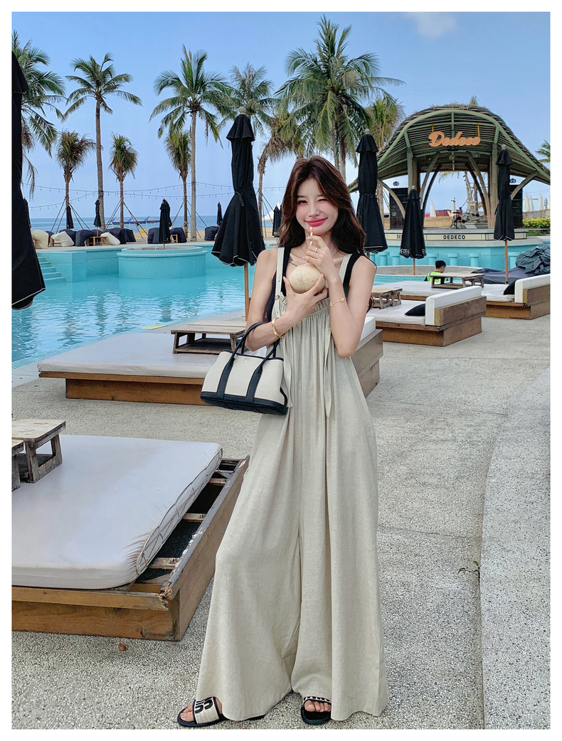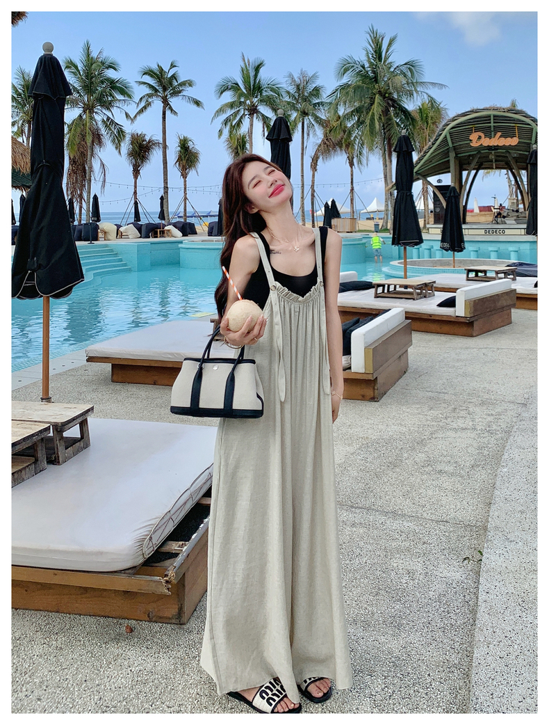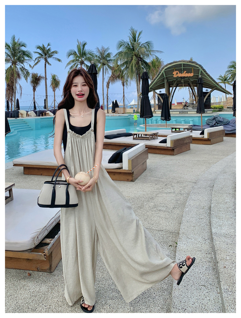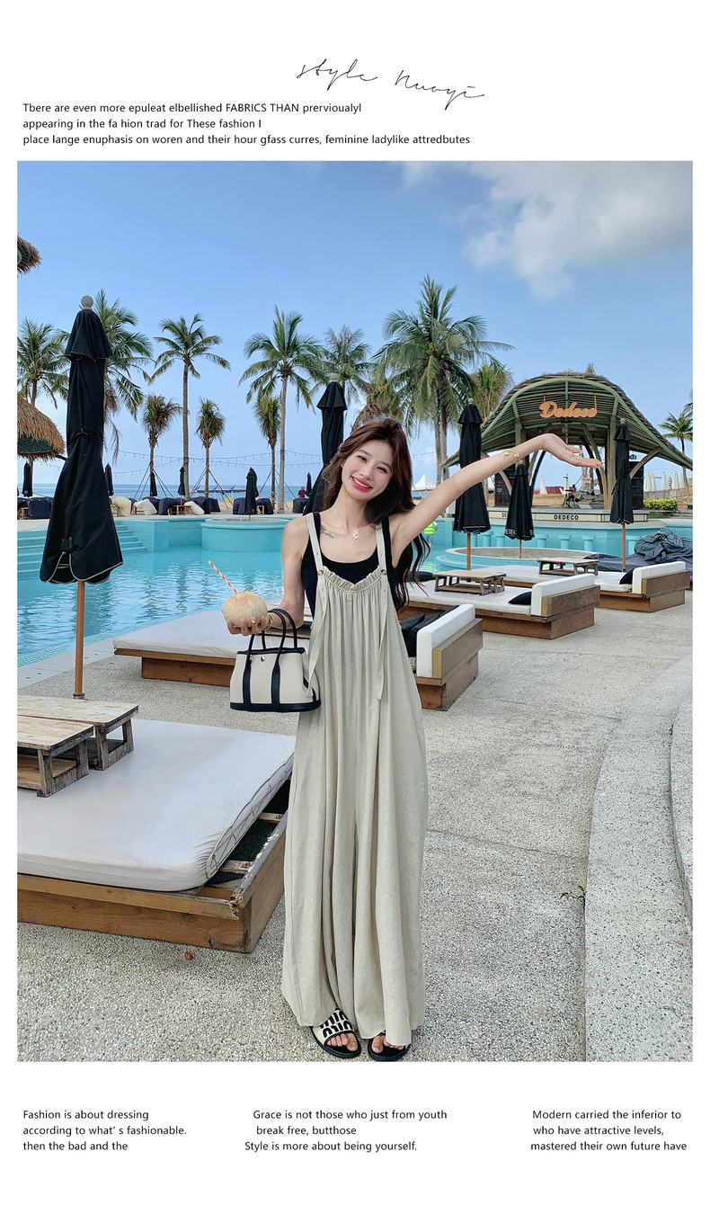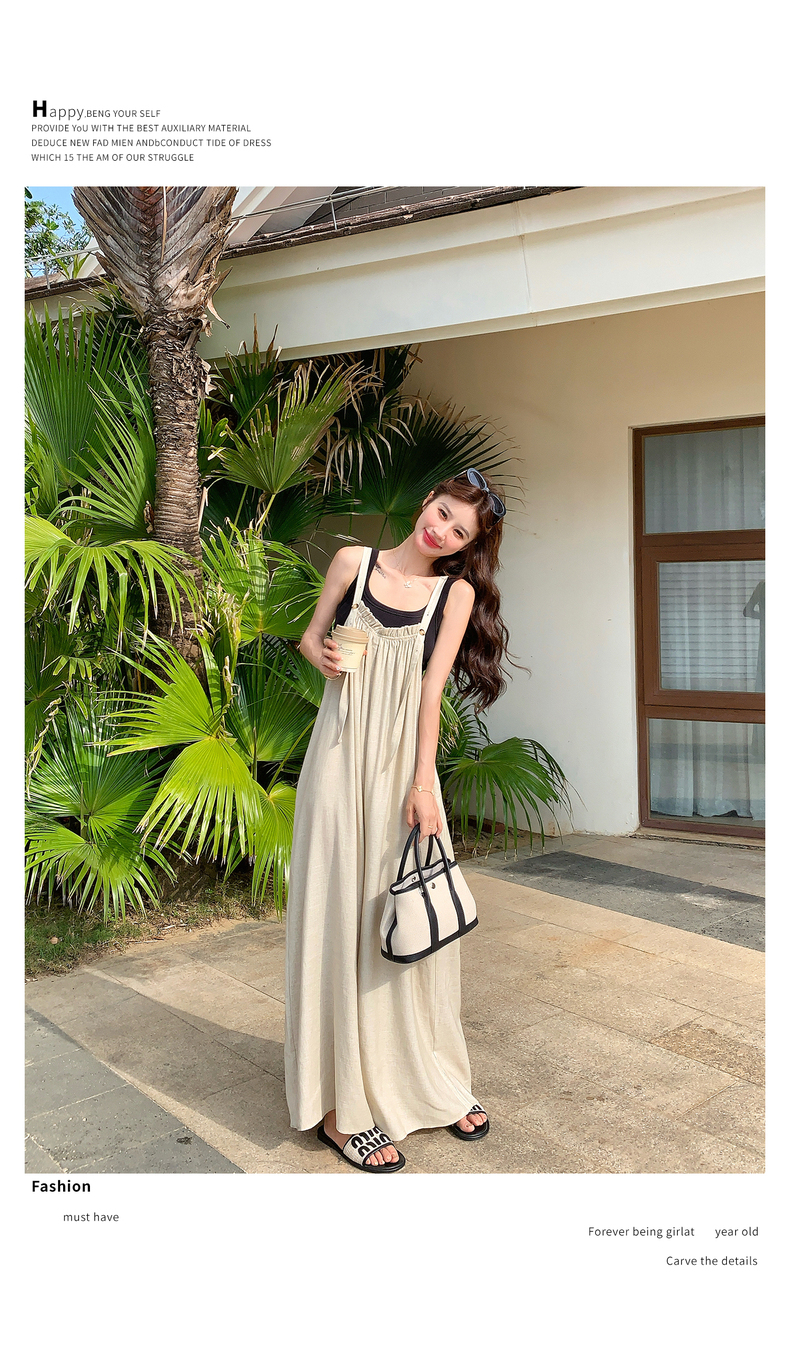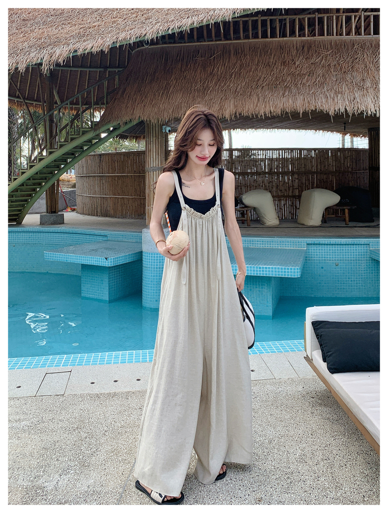 獨家訂製│抓褶大闊腿吊帶褲(04A2203)