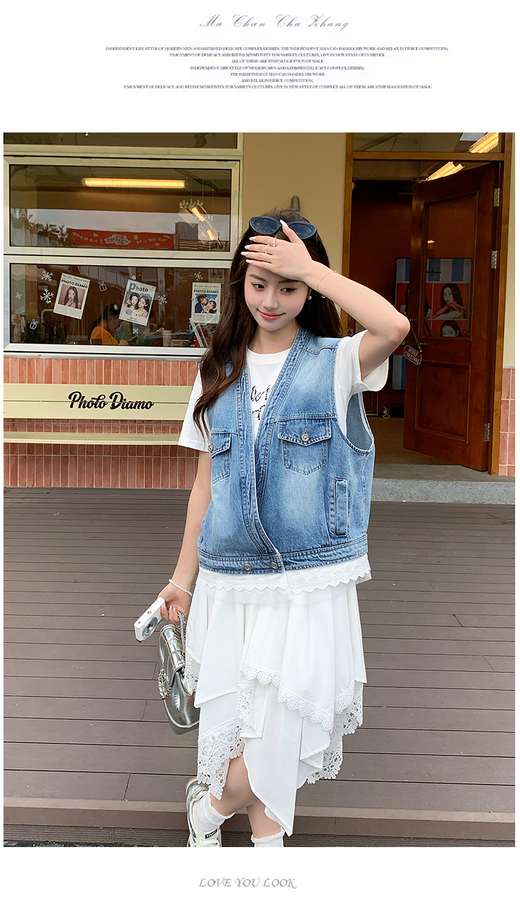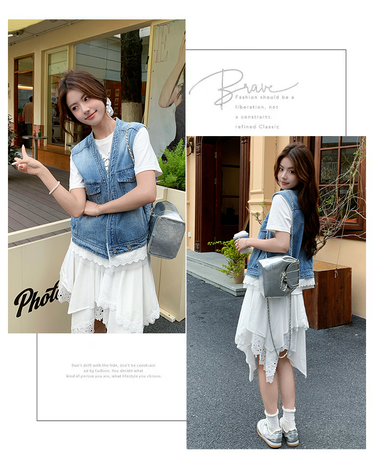 🔺面料:牛仔+蕾絲+滌綸+聚酯纖維