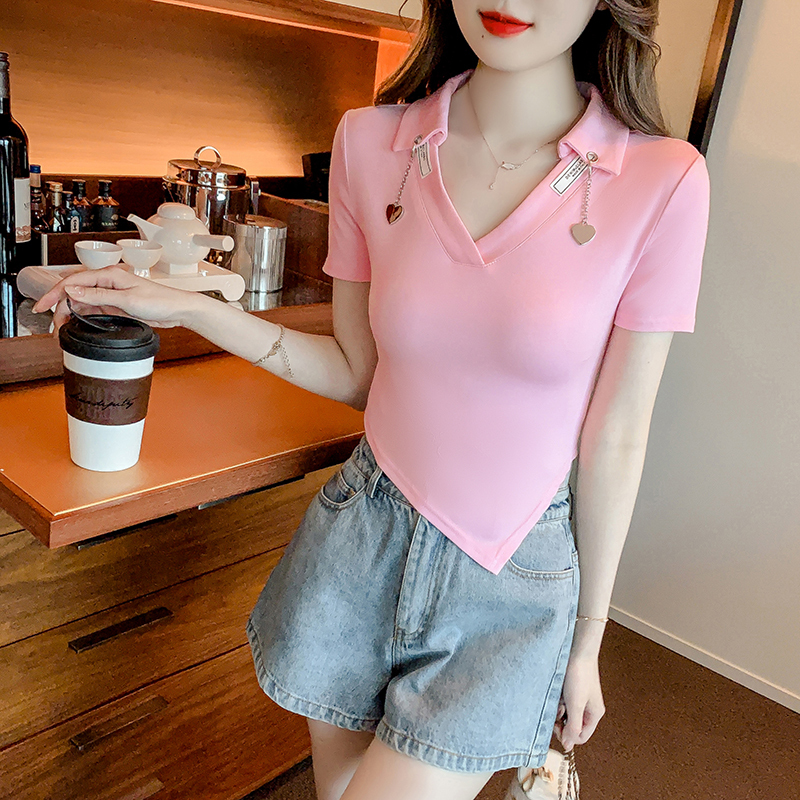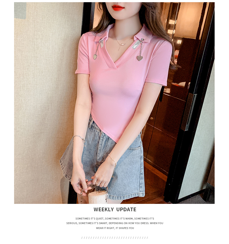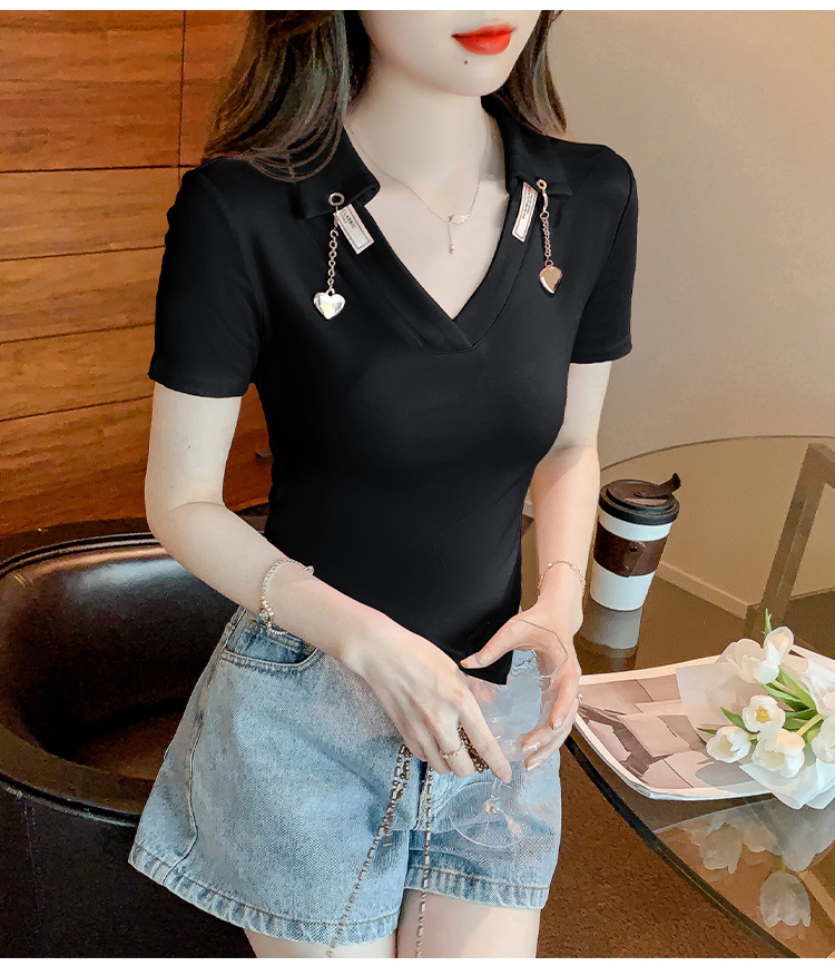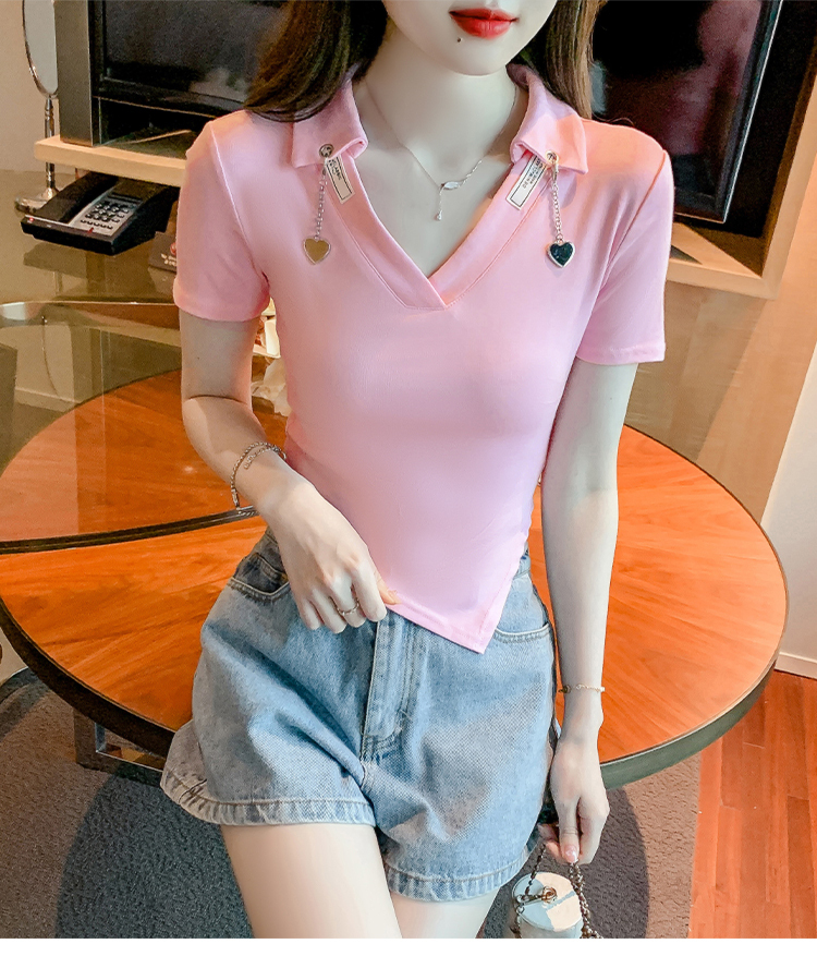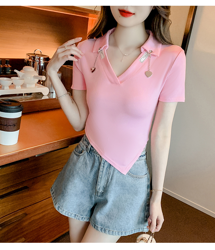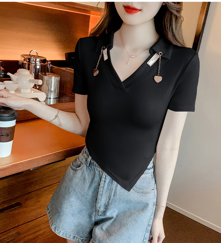 限量特惠|個性V領鍊條造型不規則T恤-3色(04H3380)