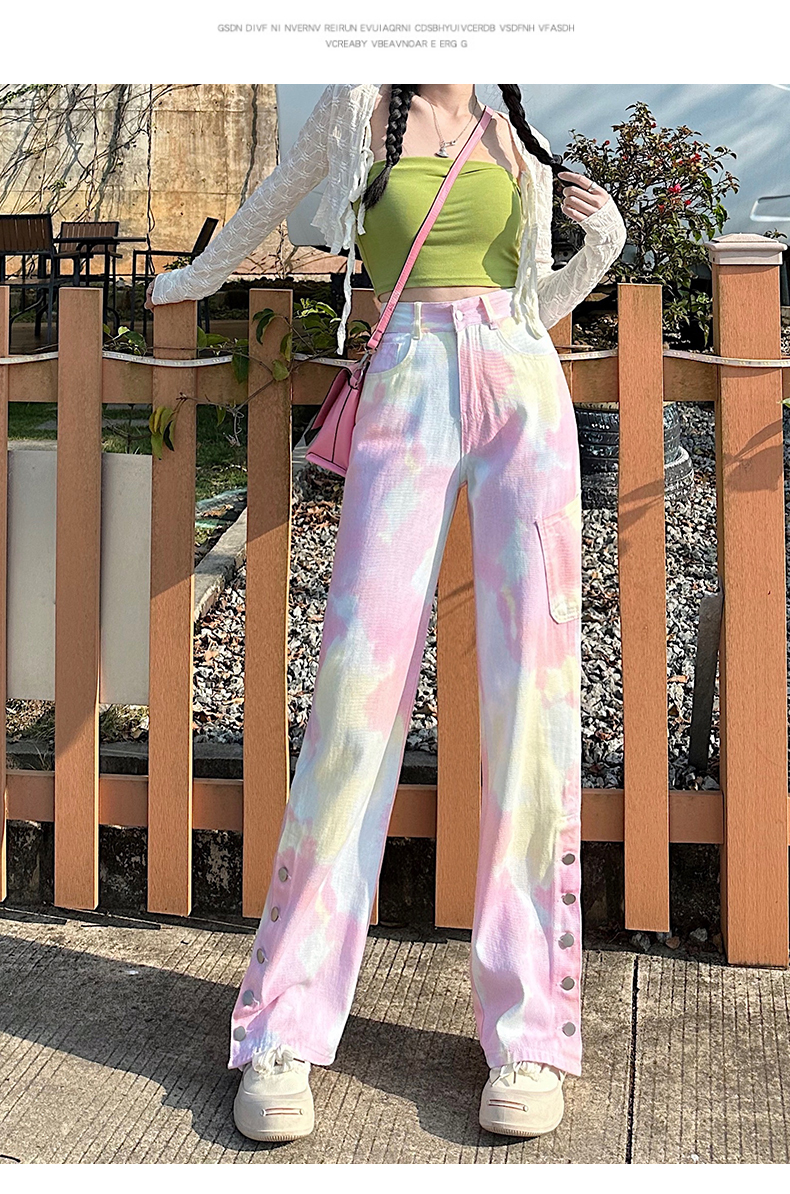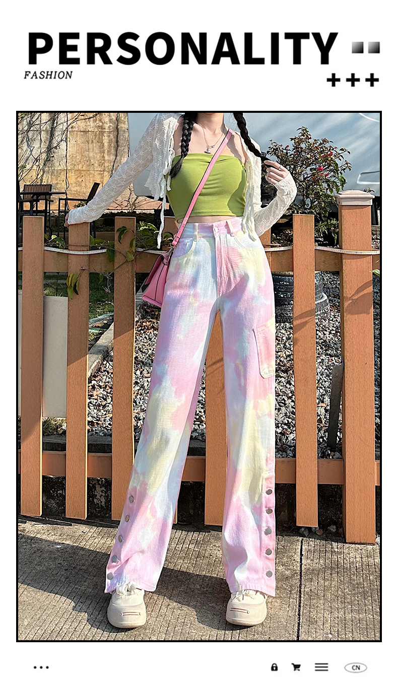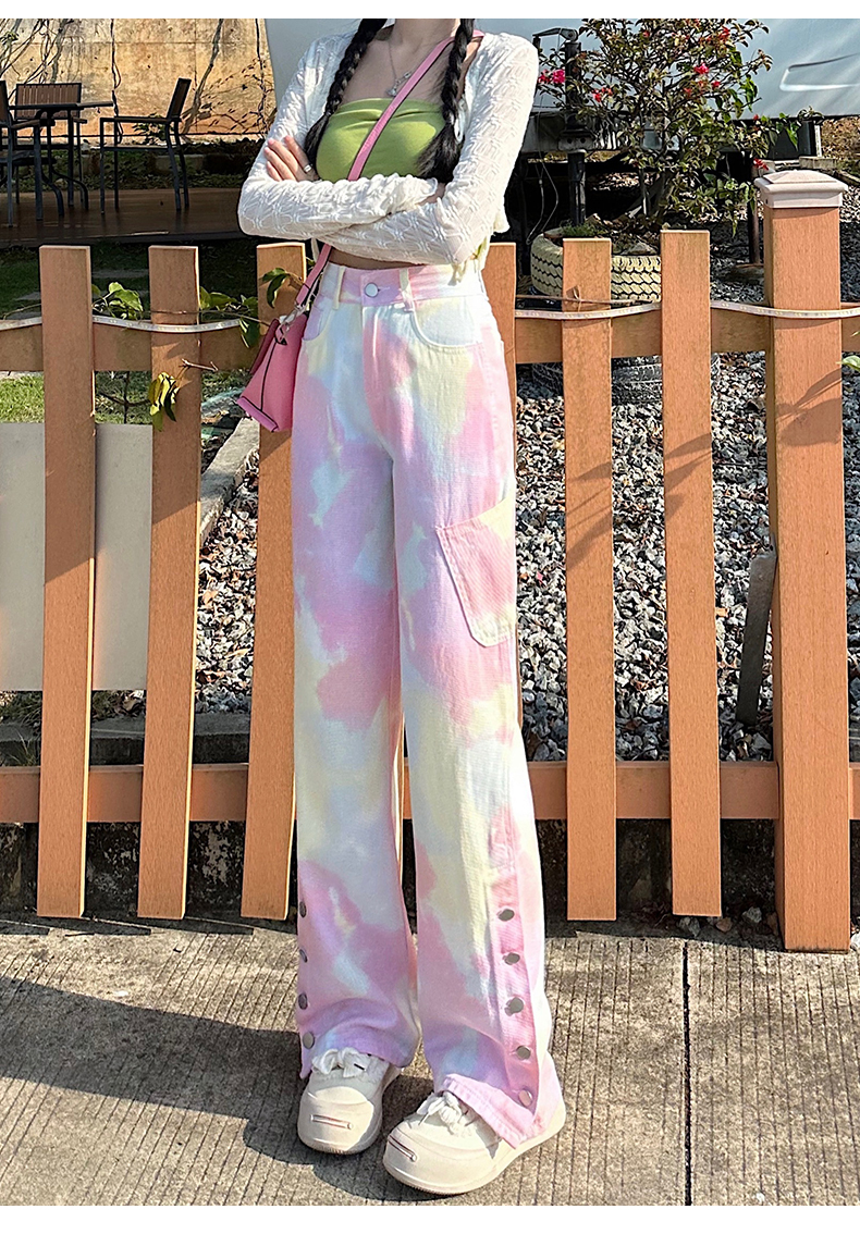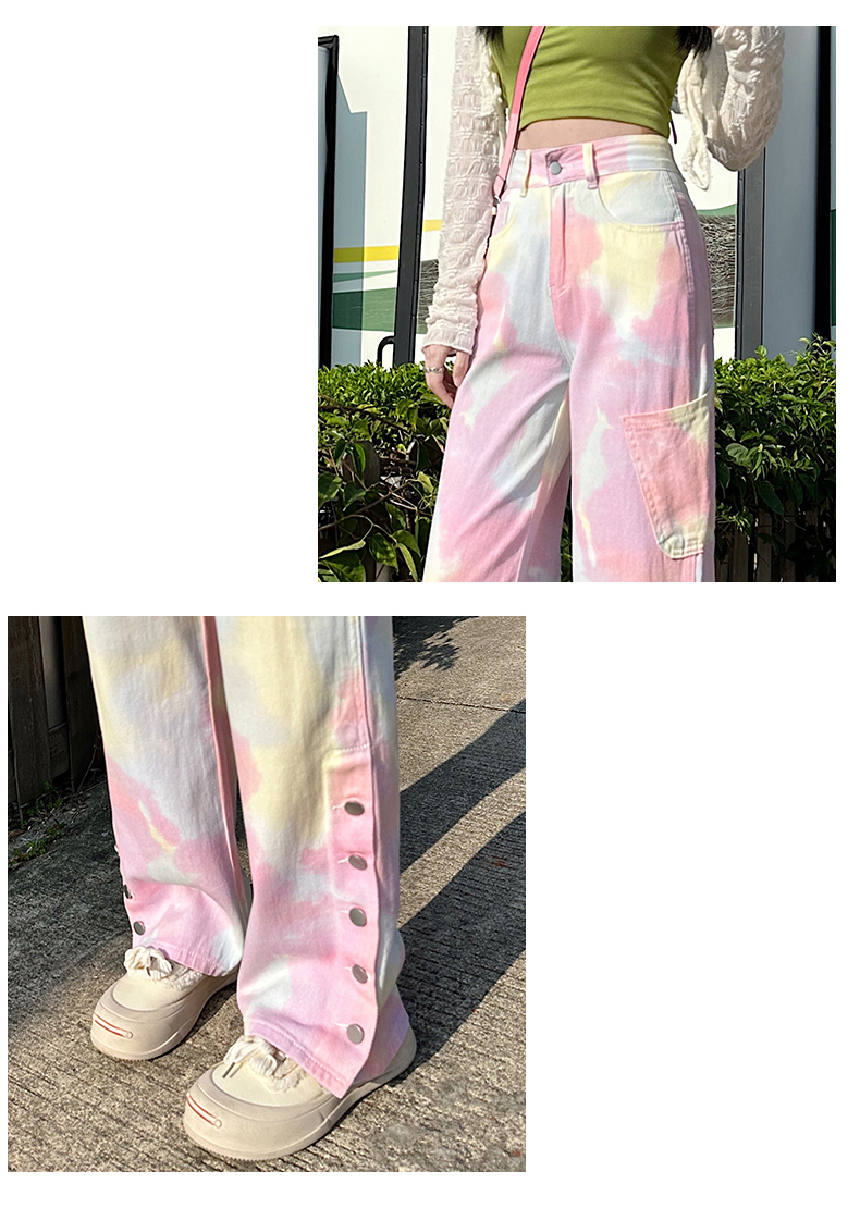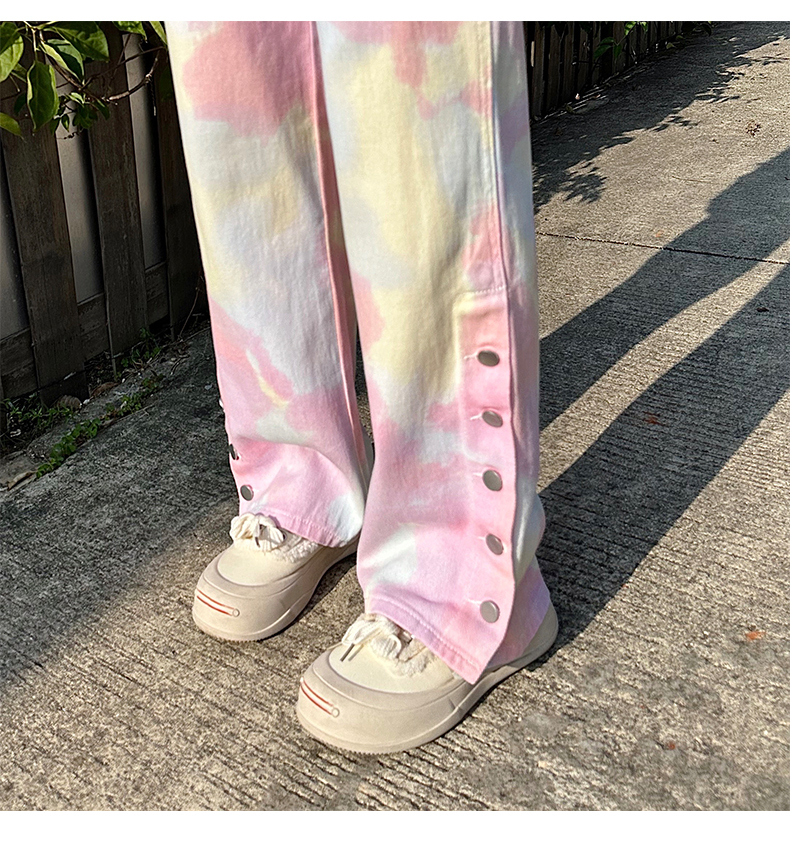限量特惠|個性紮染馬卡龍排釦牛仔寬褲(04H3388)