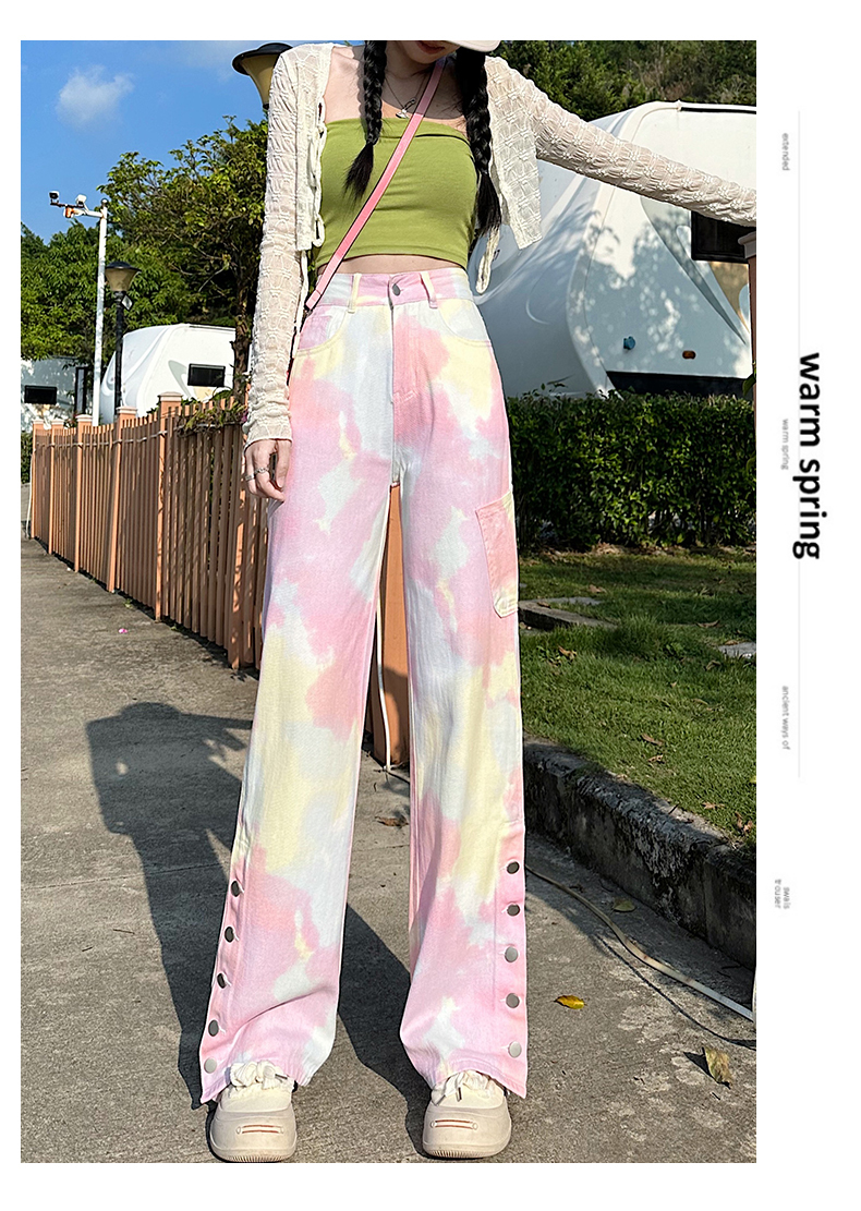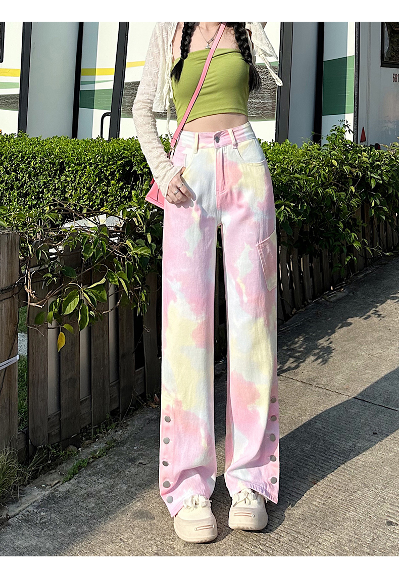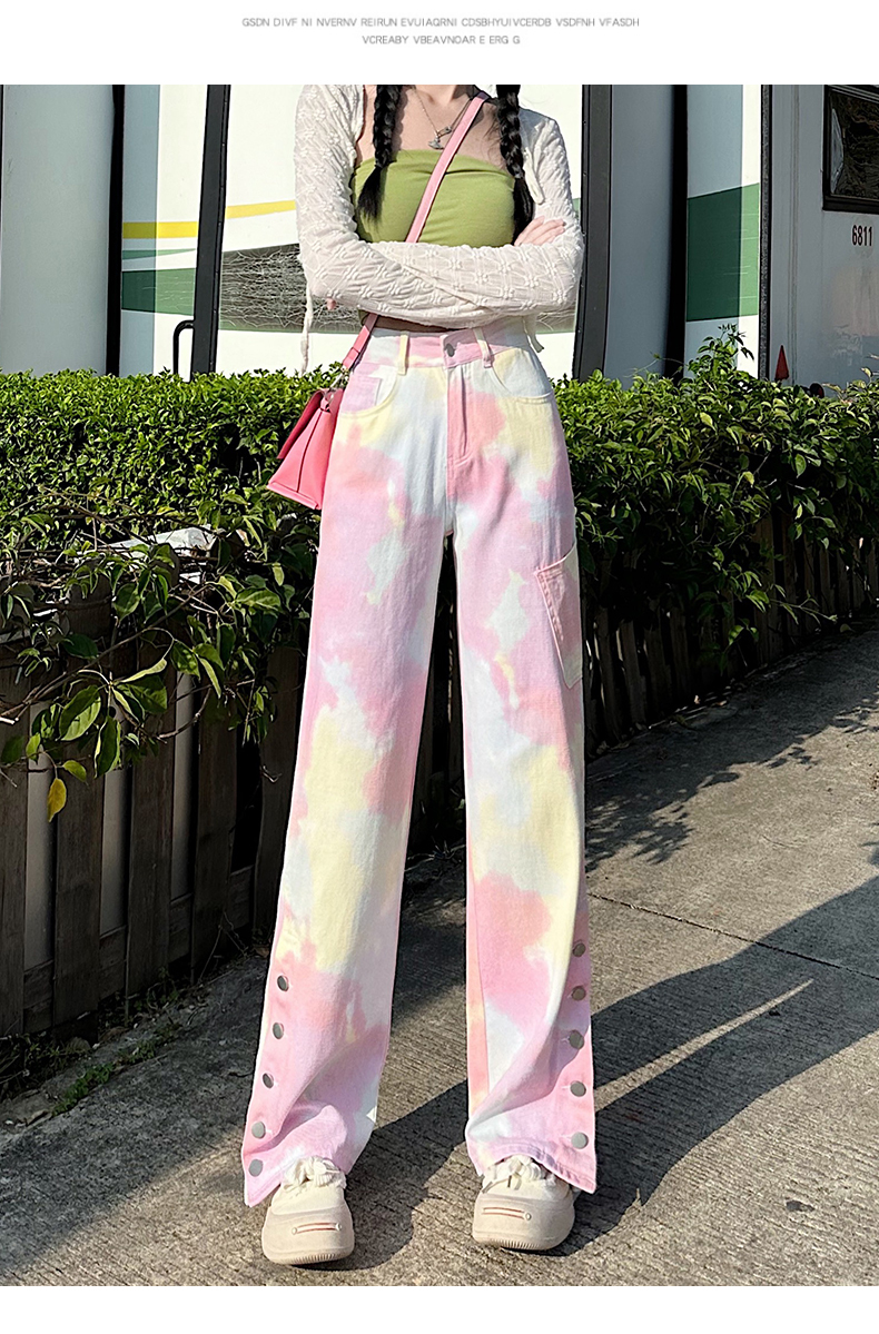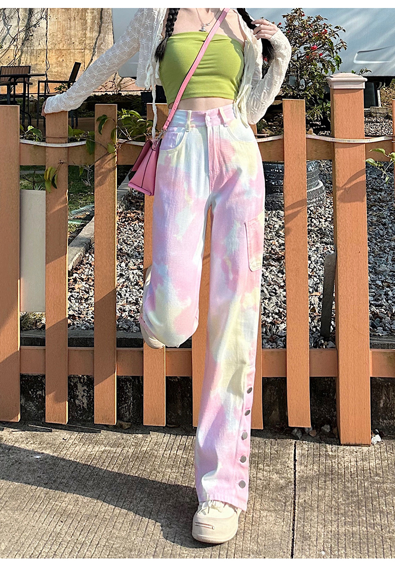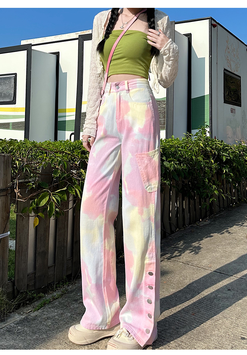 限量特惠|個性紮染馬卡龍排釦牛仔寬褲(04H3388)
