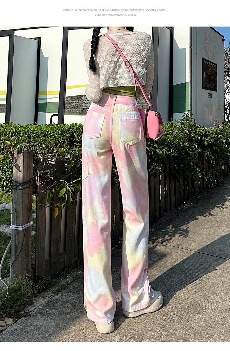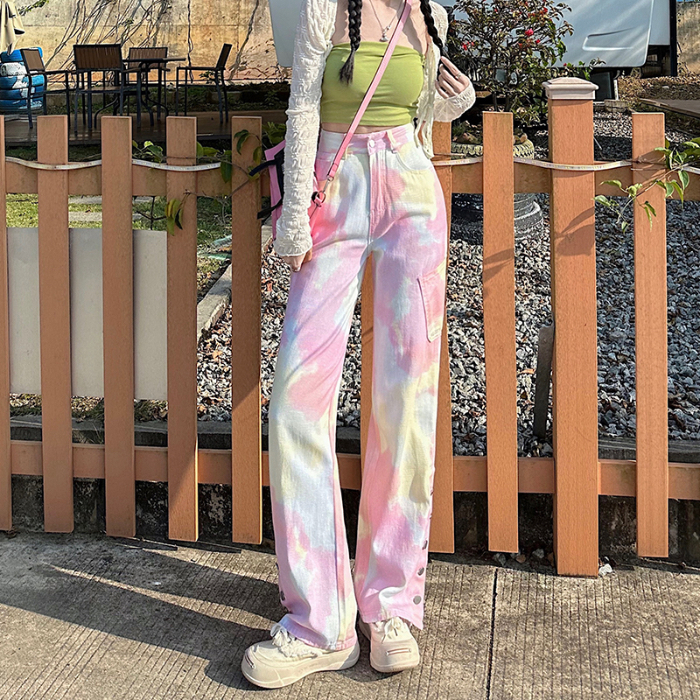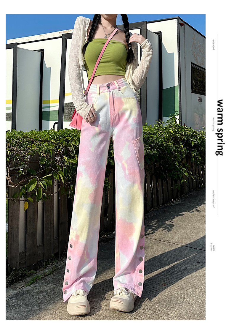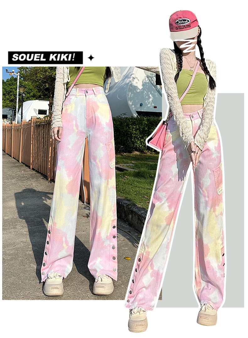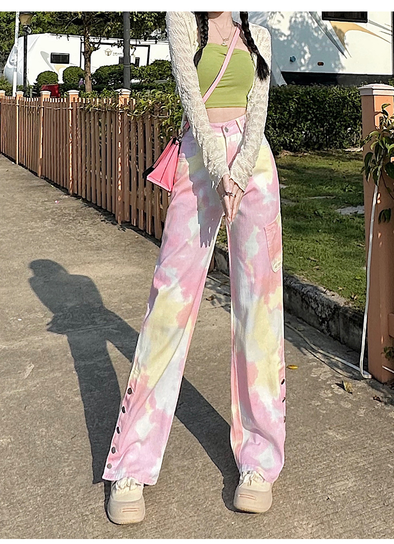 限量特惠|個性紮染馬卡龍排釦牛仔寬褲(04H3388)