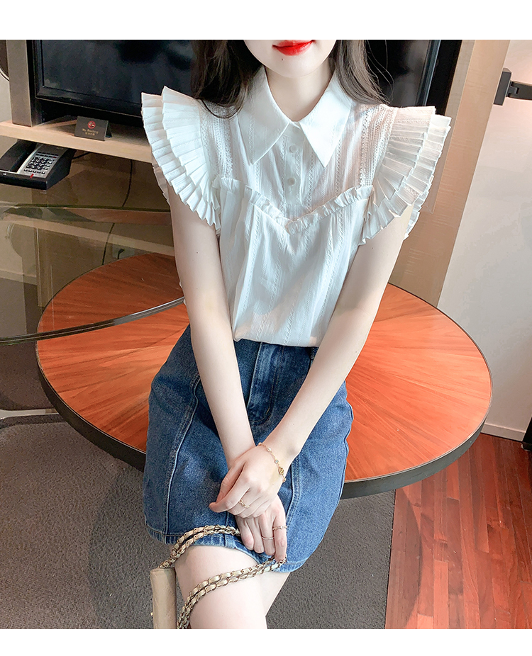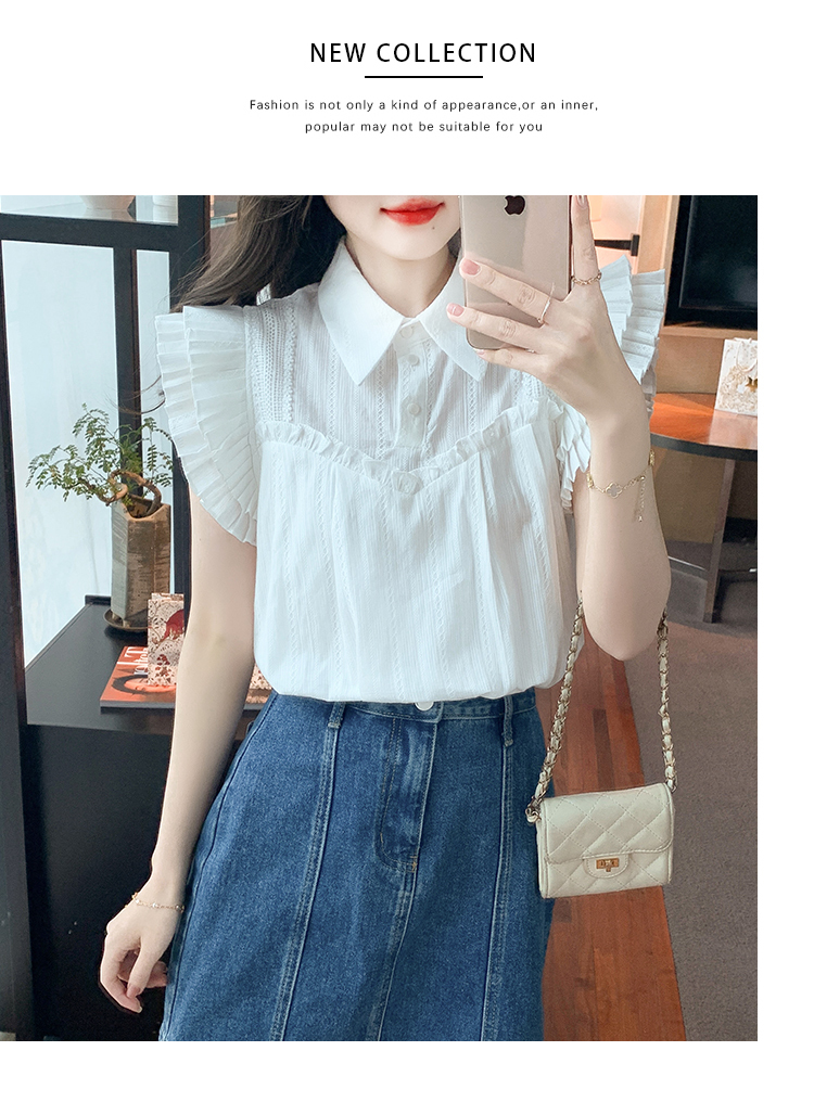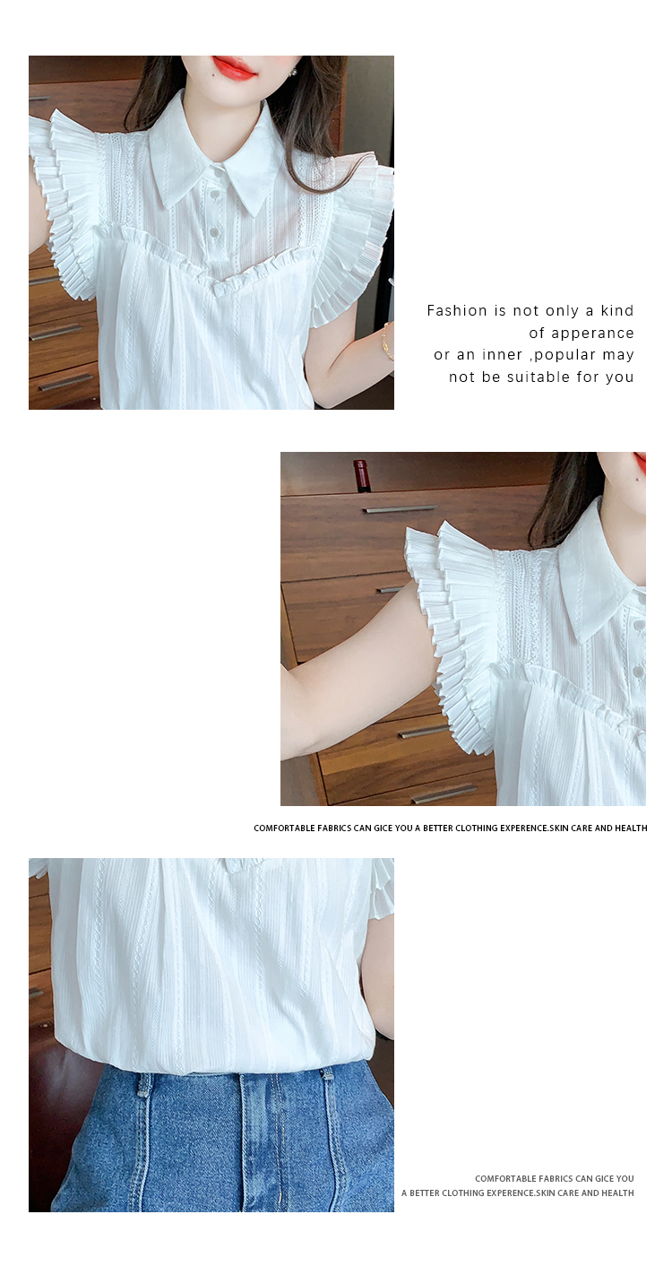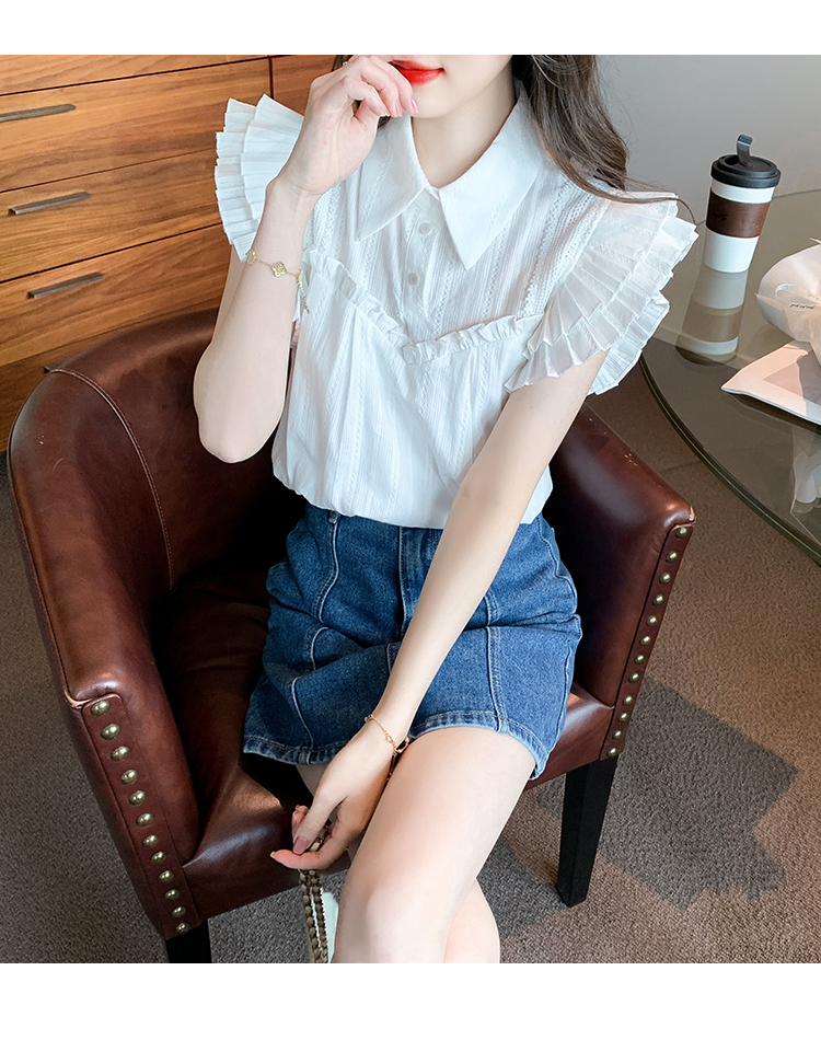 限量特惠|甜美減齡飛飛袖造型花邊雪紡衫(04H3394)