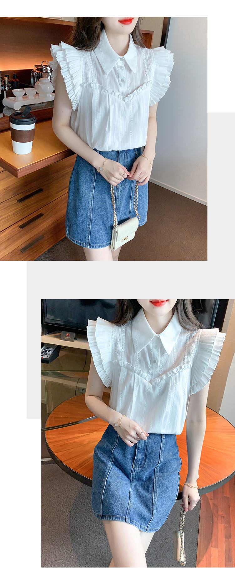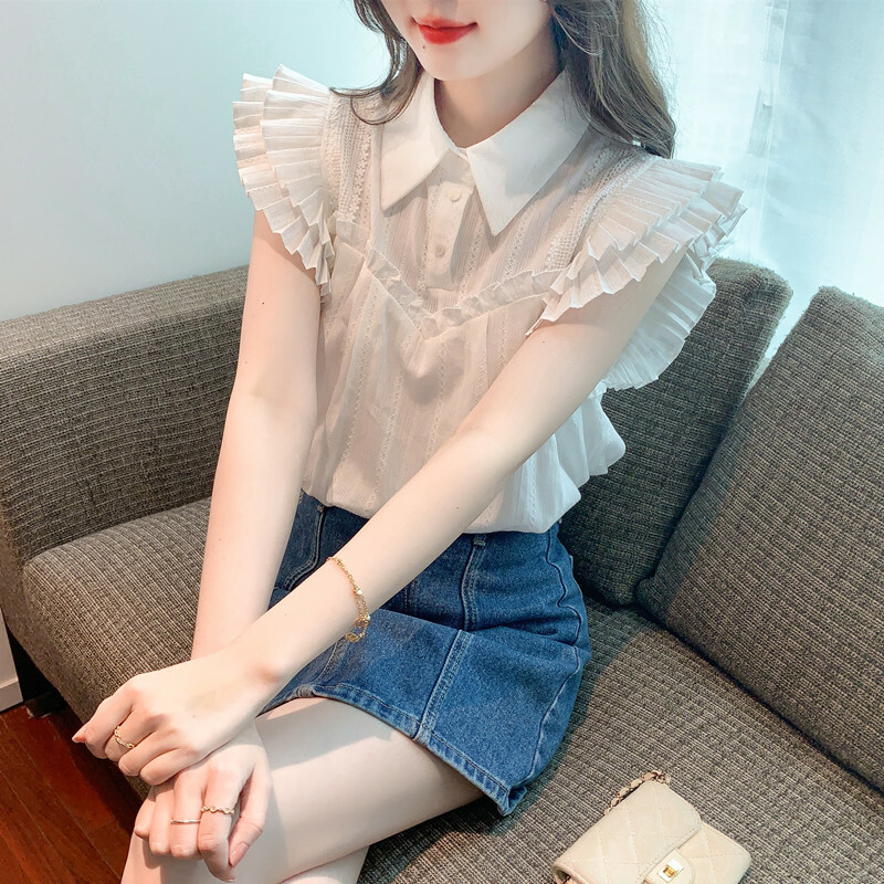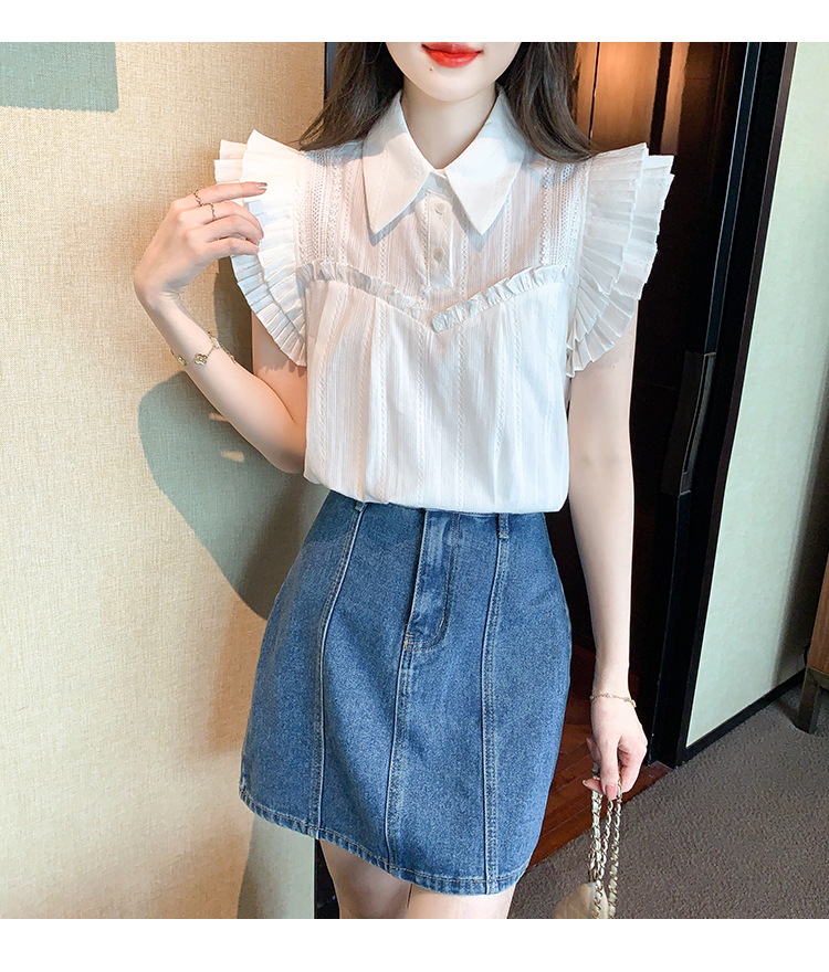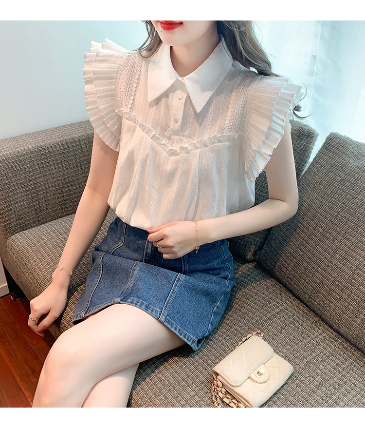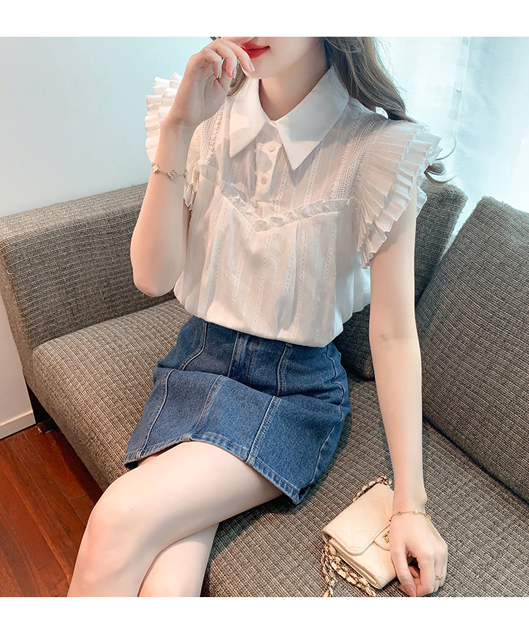 限量特惠|甜美減齡飛飛袖造型花邊雪紡衫(04H3394)