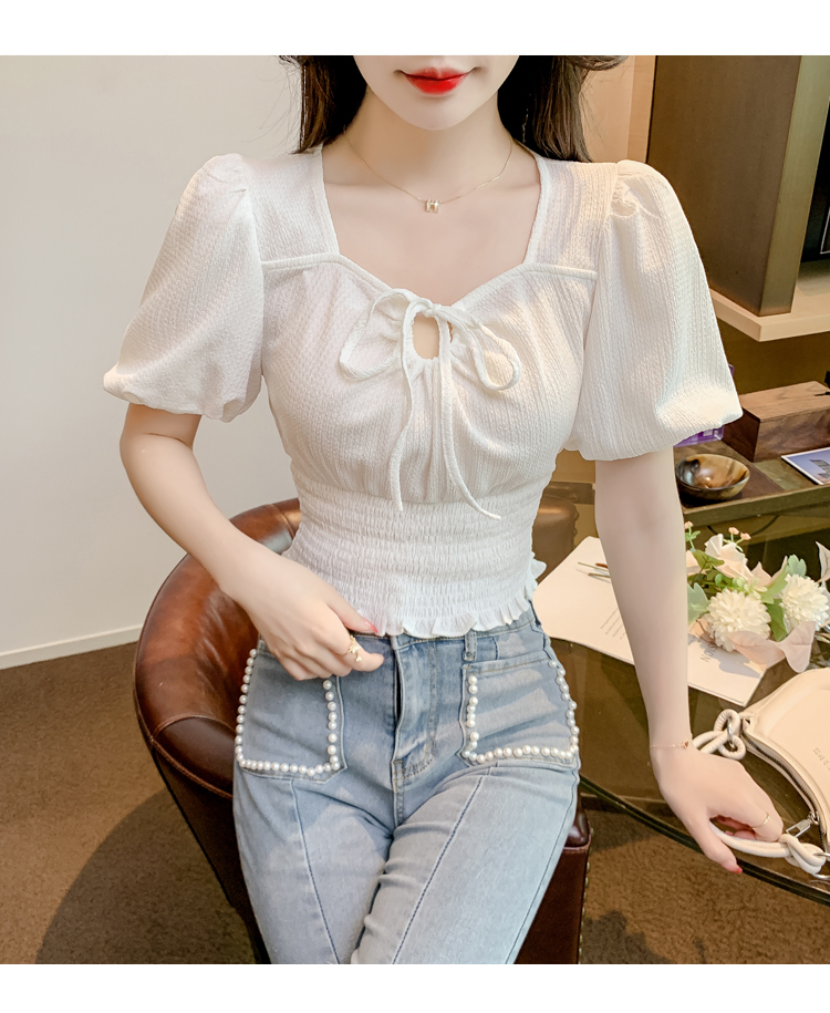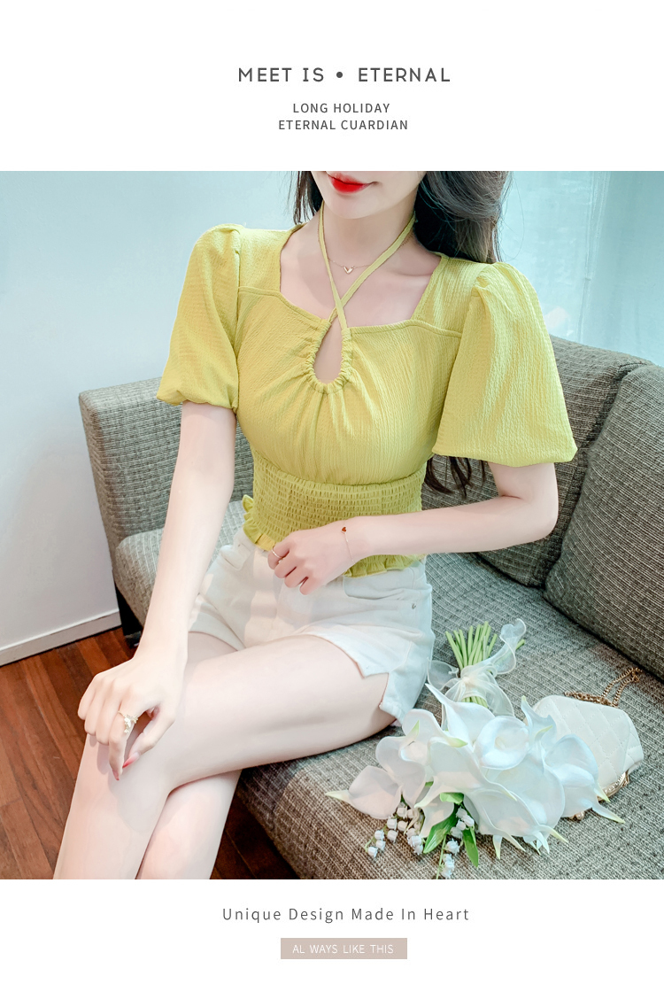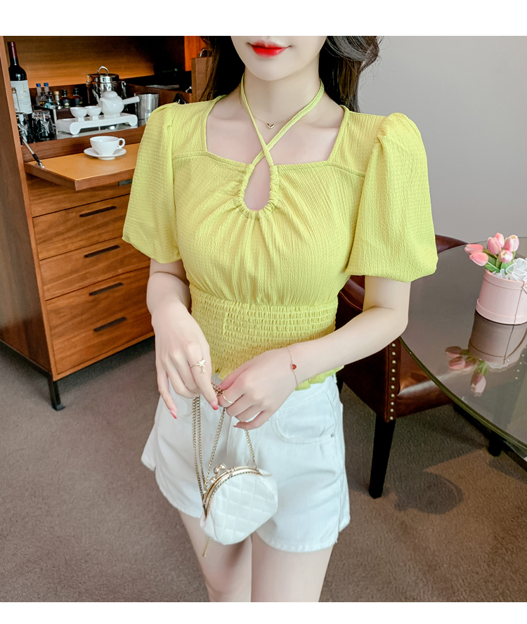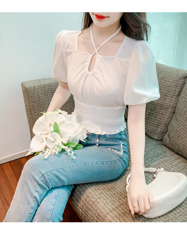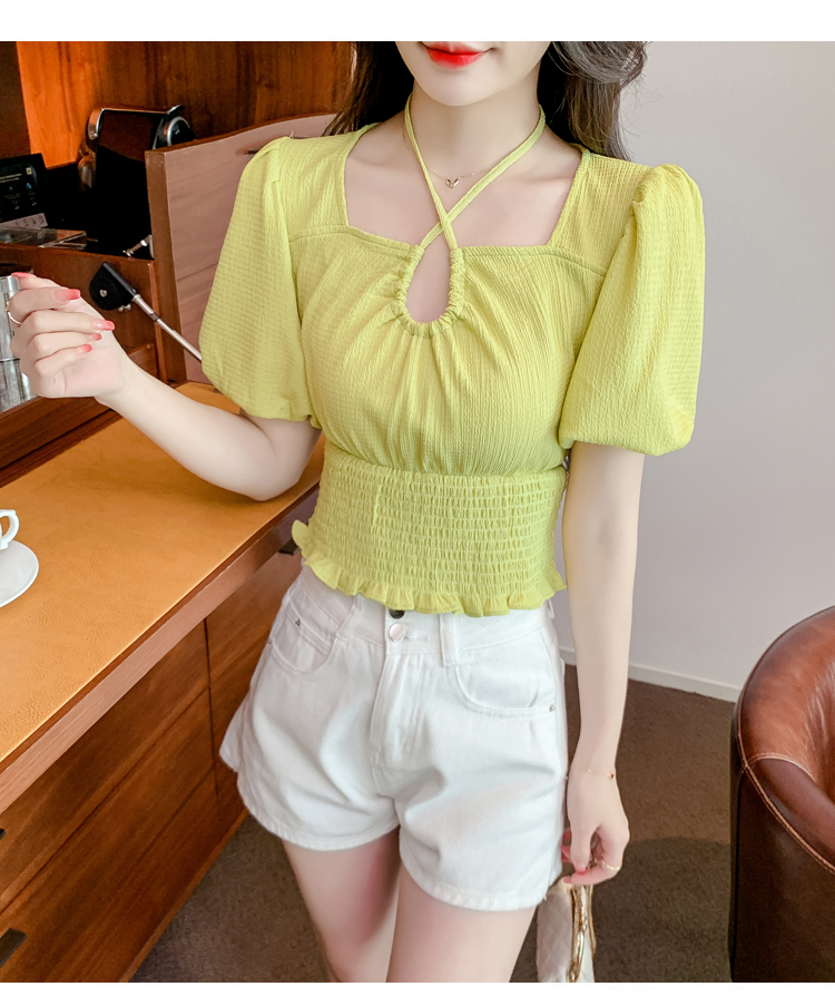 限量特惠|微性感鏤空修身收腰雪紡衫-2色(04H3399)