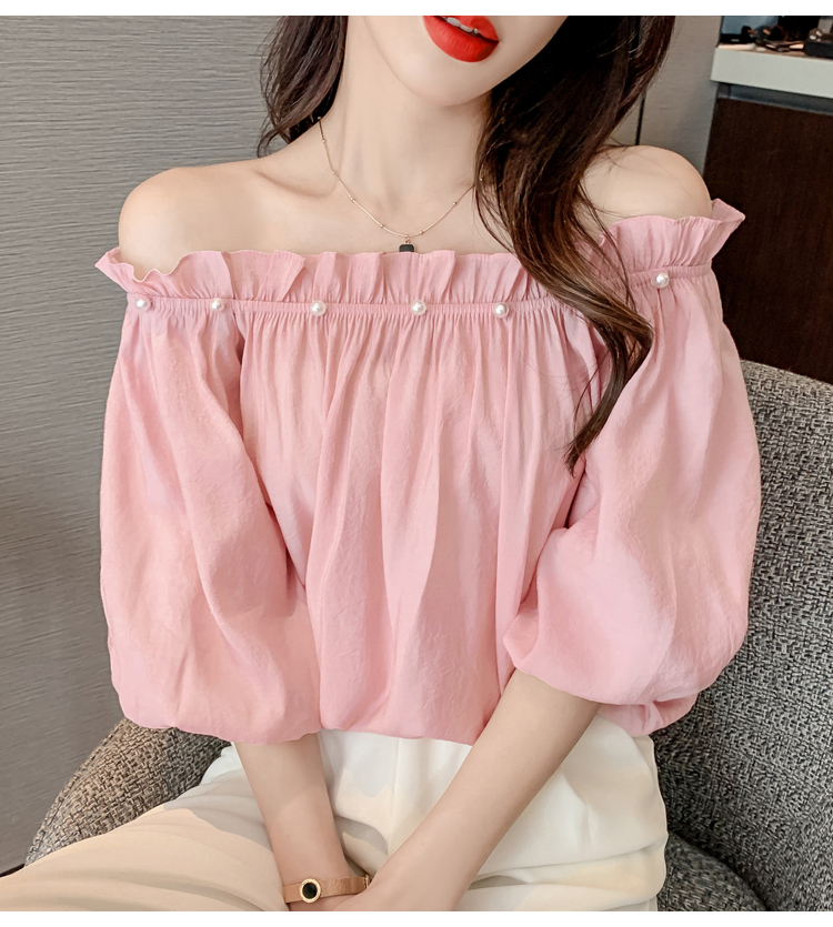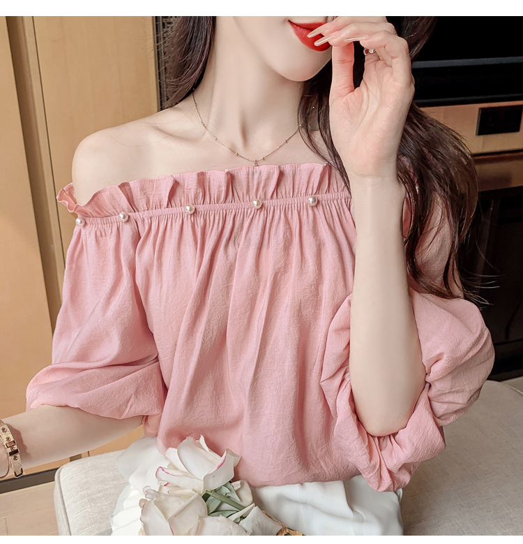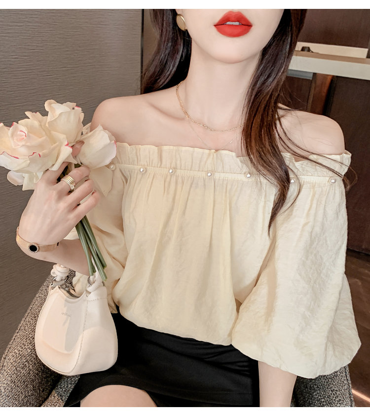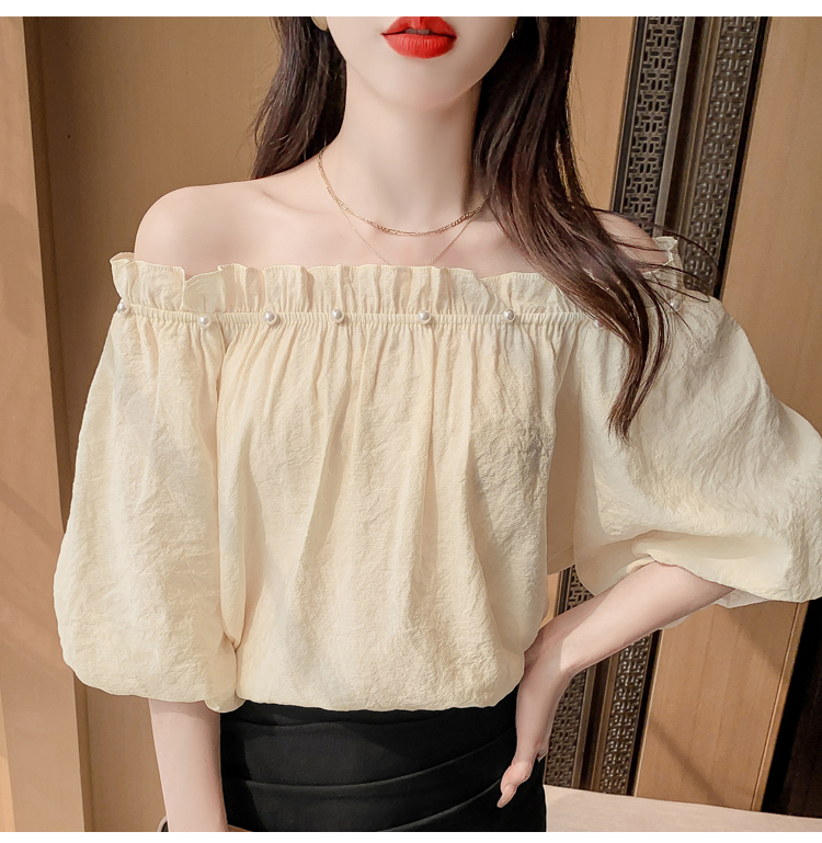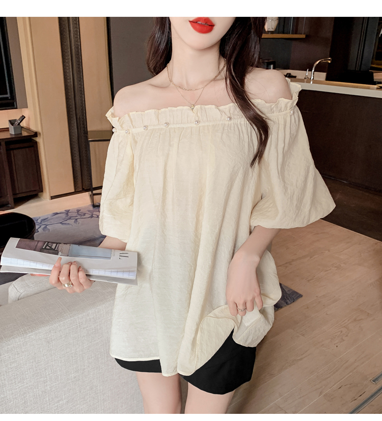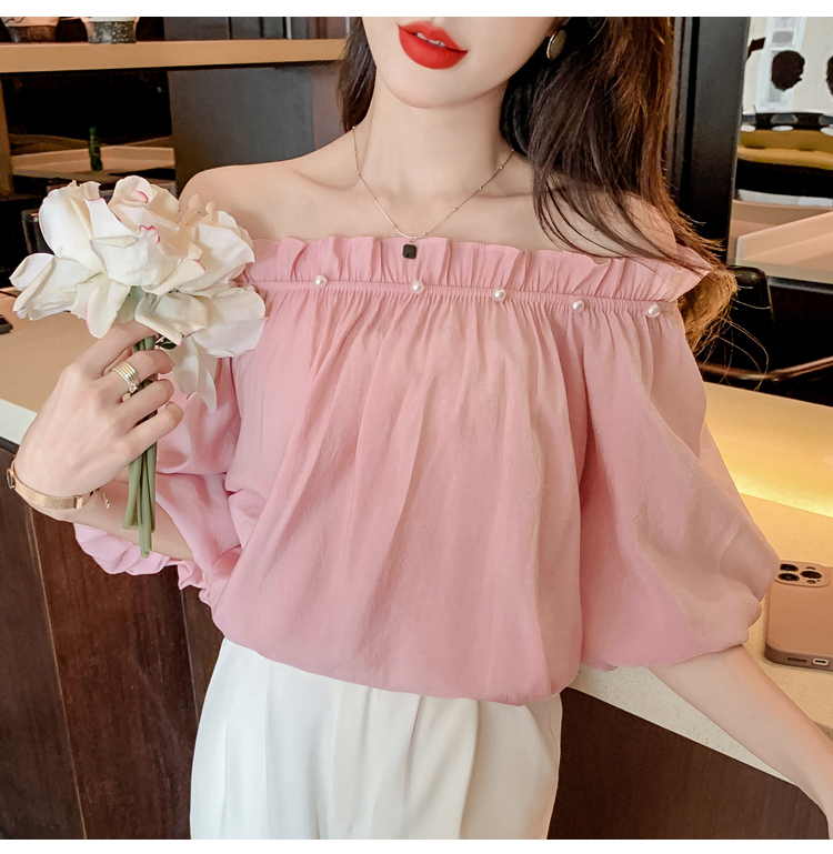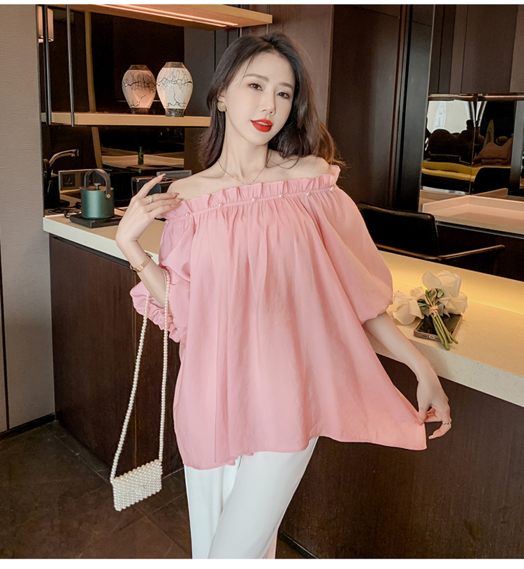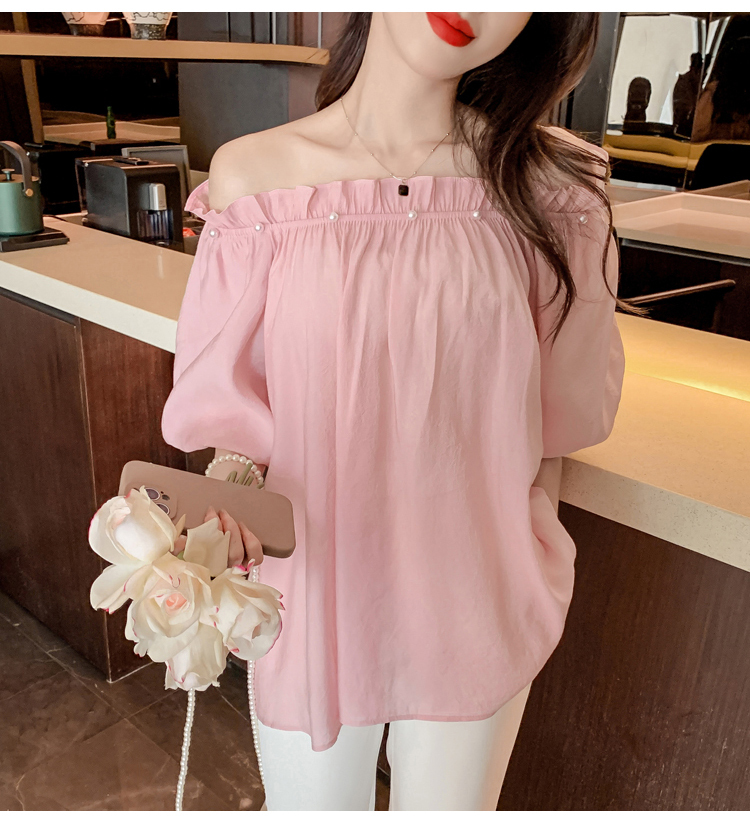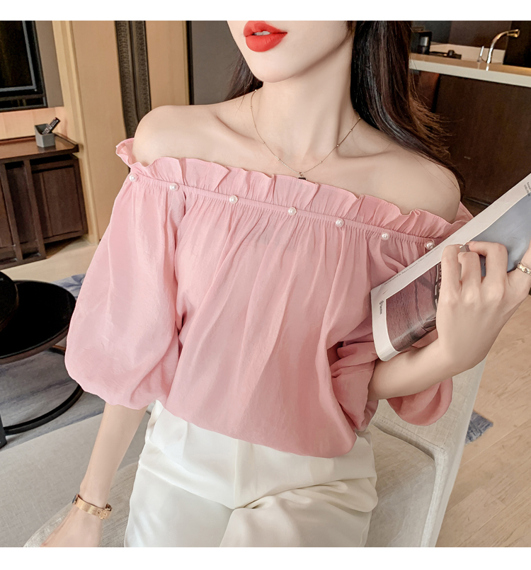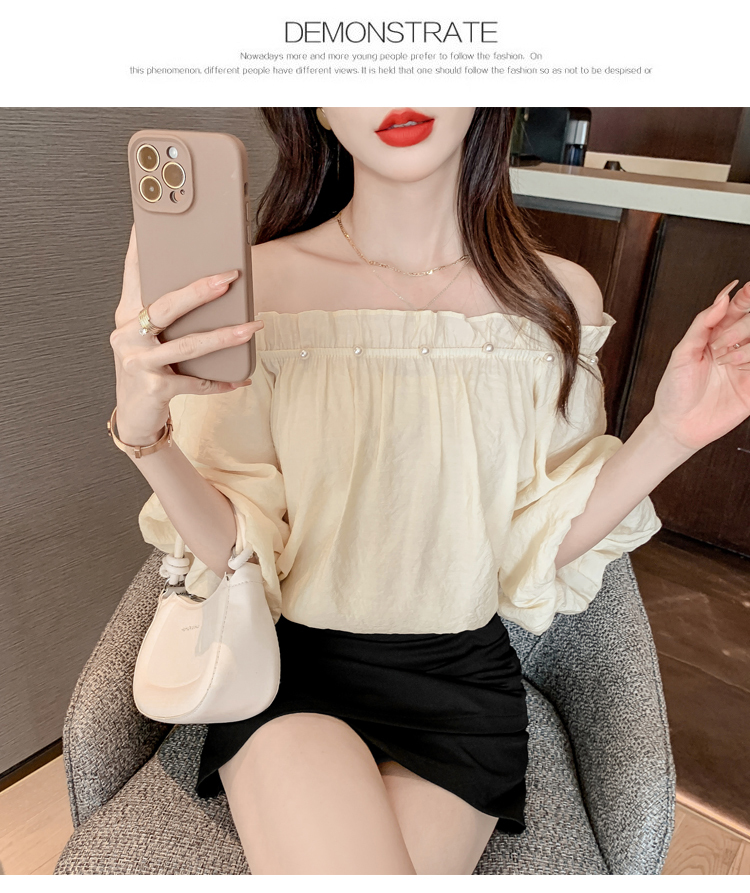 限量特惠|性感釘珠一字領雪紡衫-2色(04H3418)