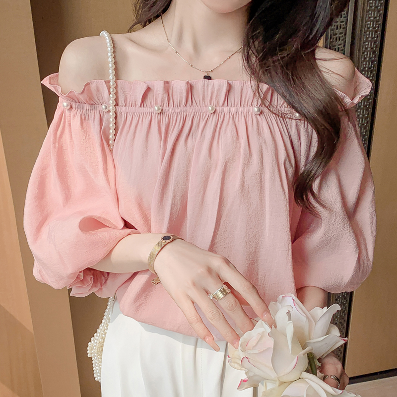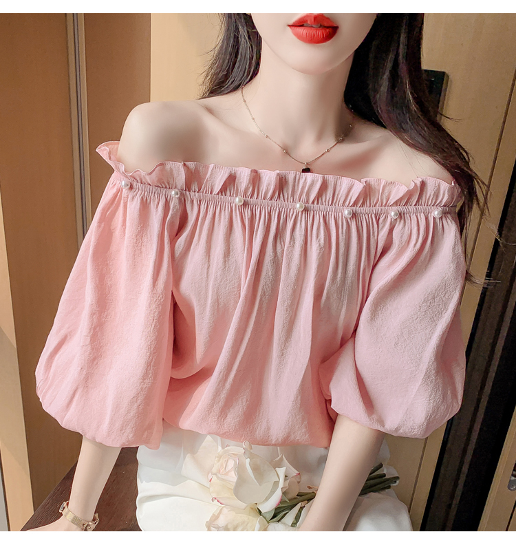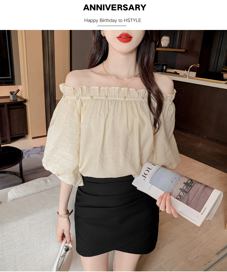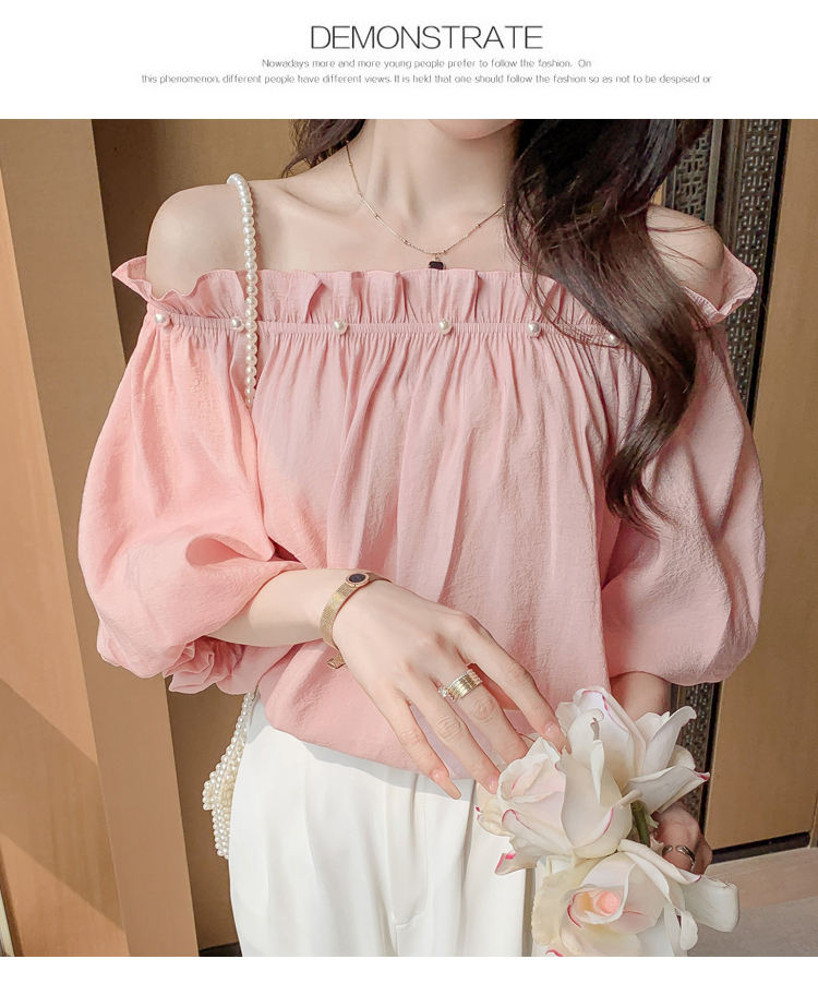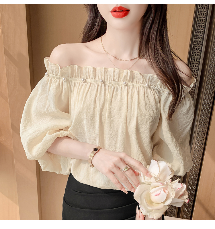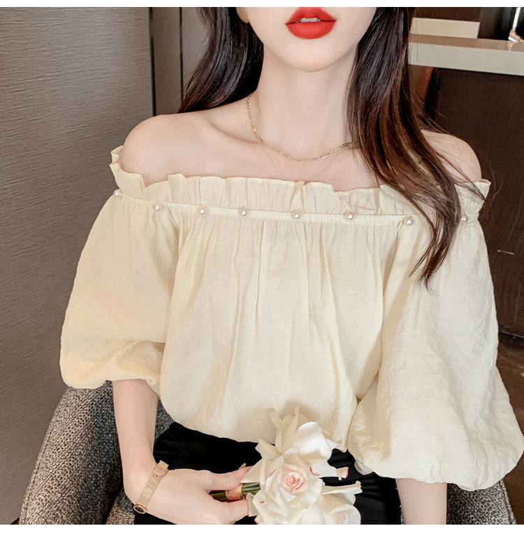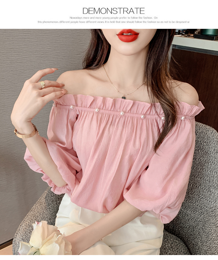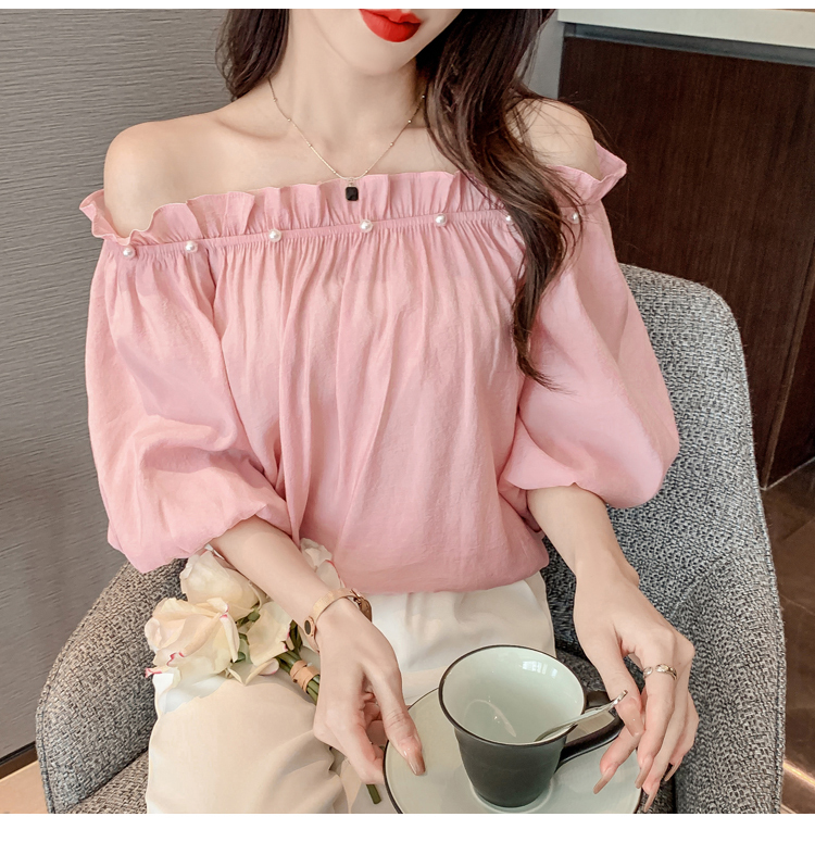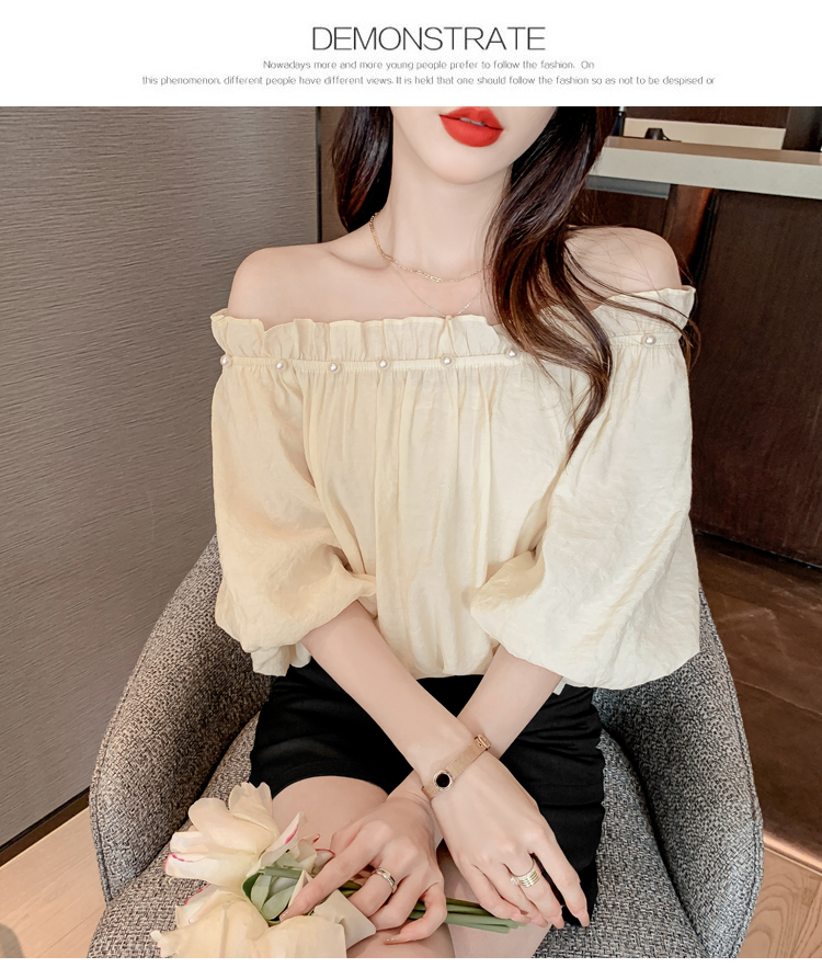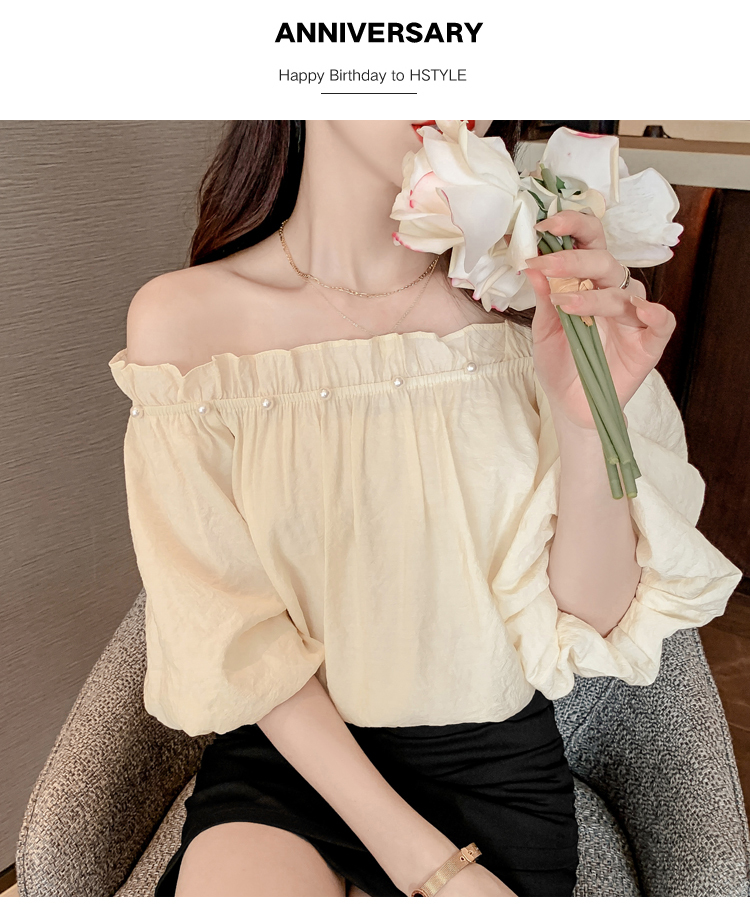 限量特惠|性感釘珠一字領雪紡衫-2色(04H3418)