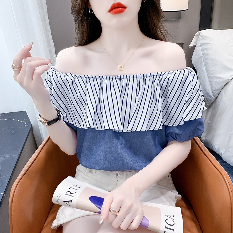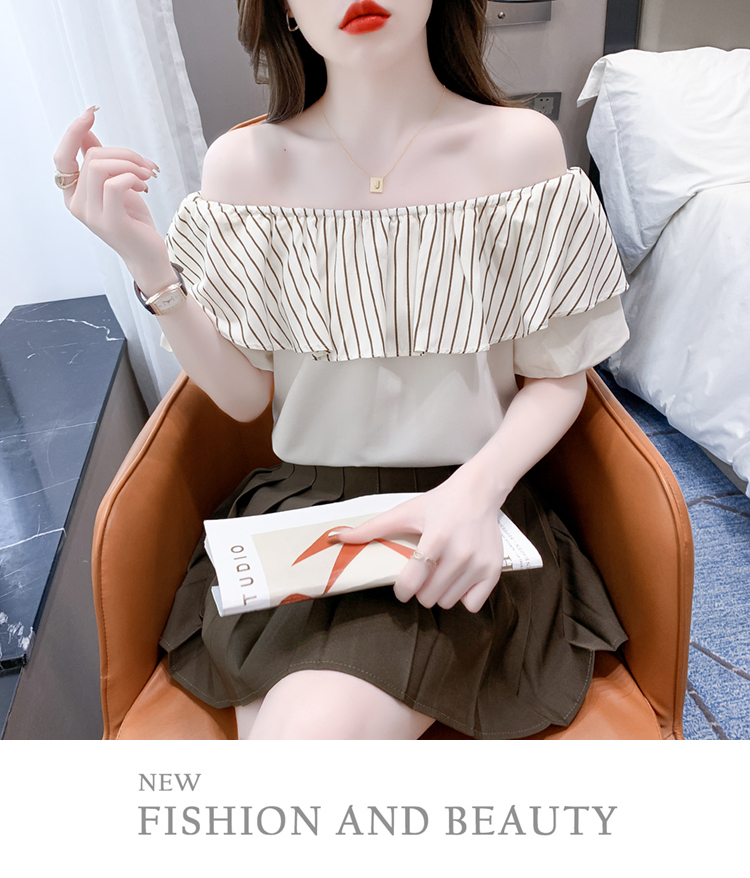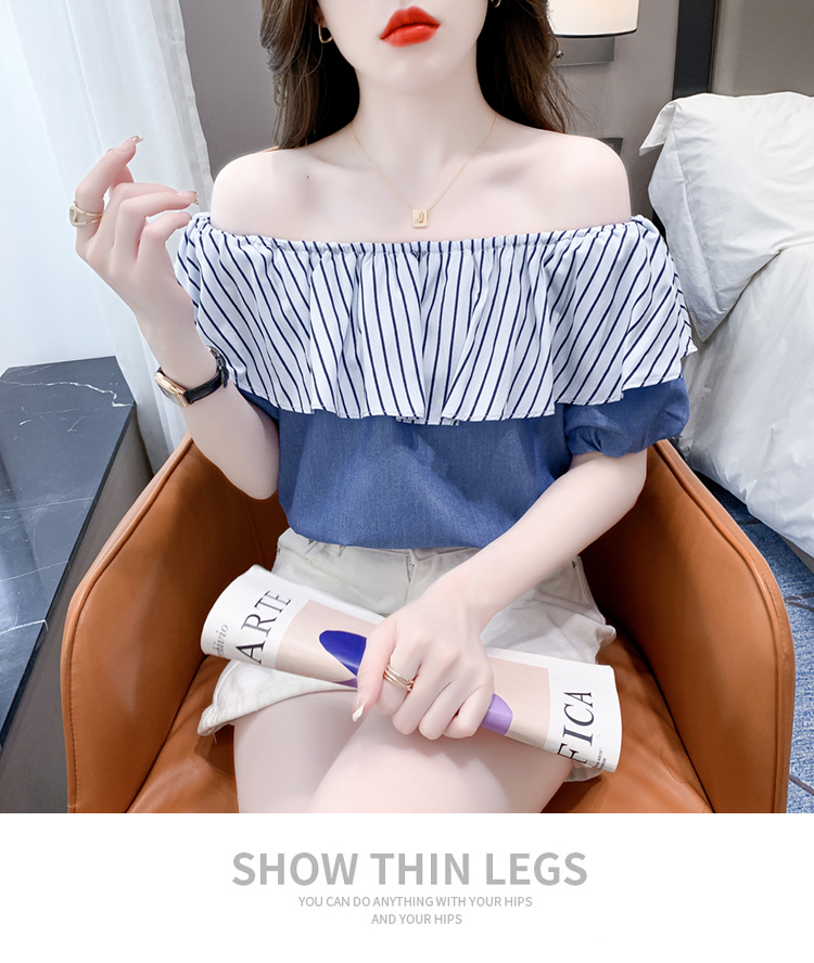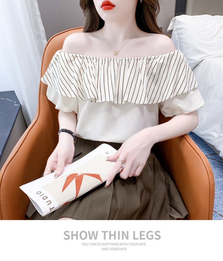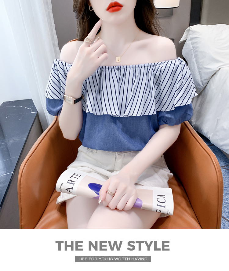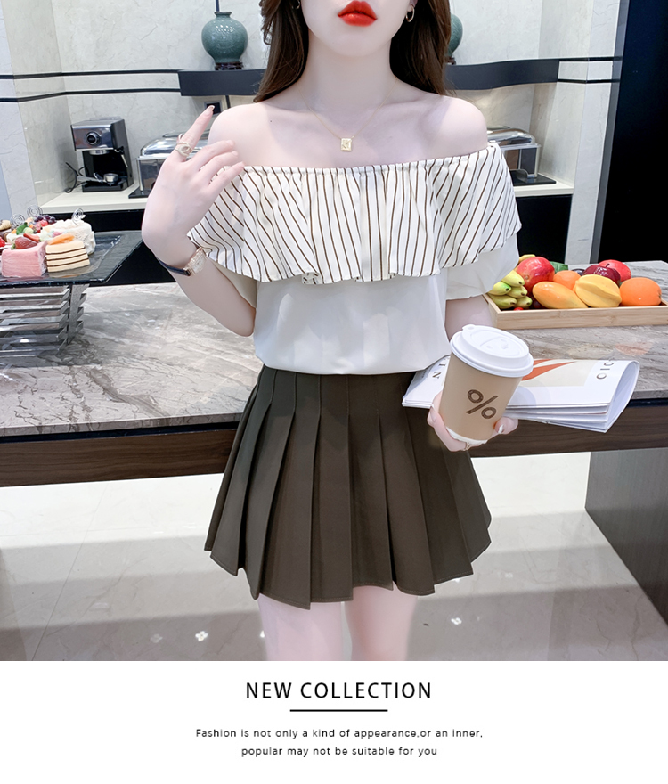 限量特惠|性感條紋拼接一字領上衣-2色(04H3421)