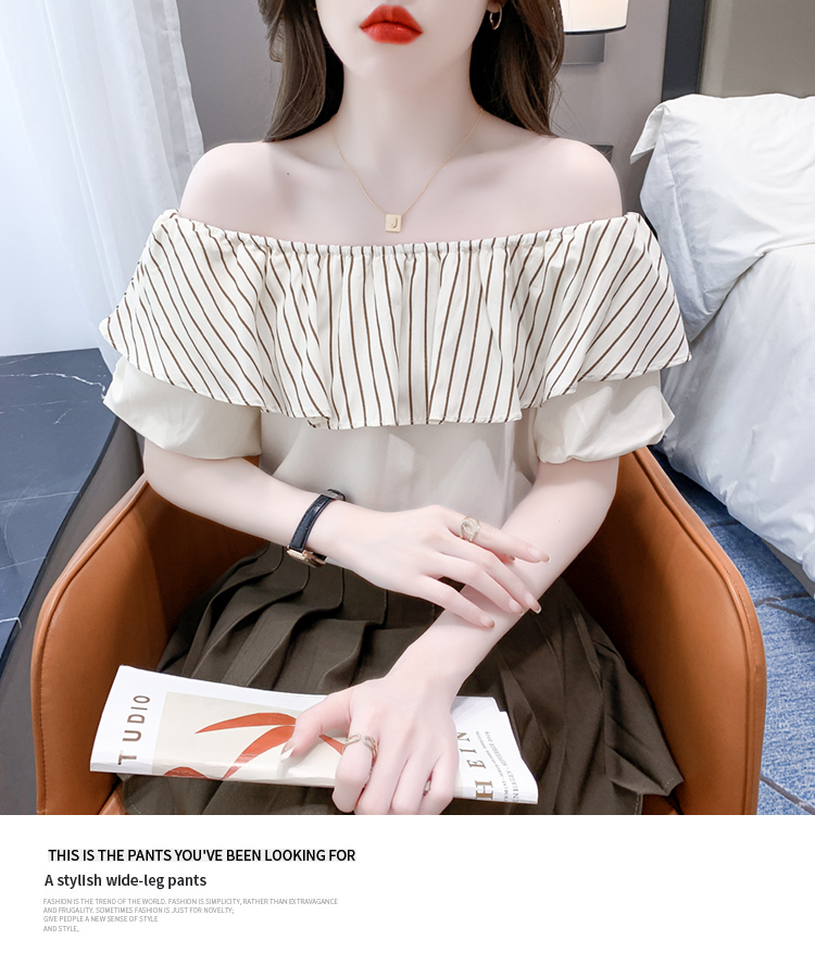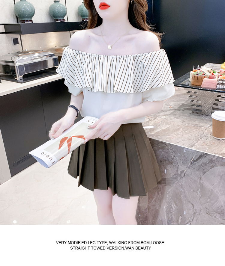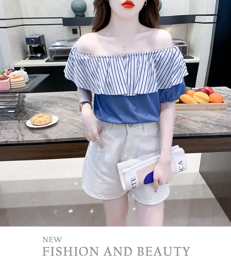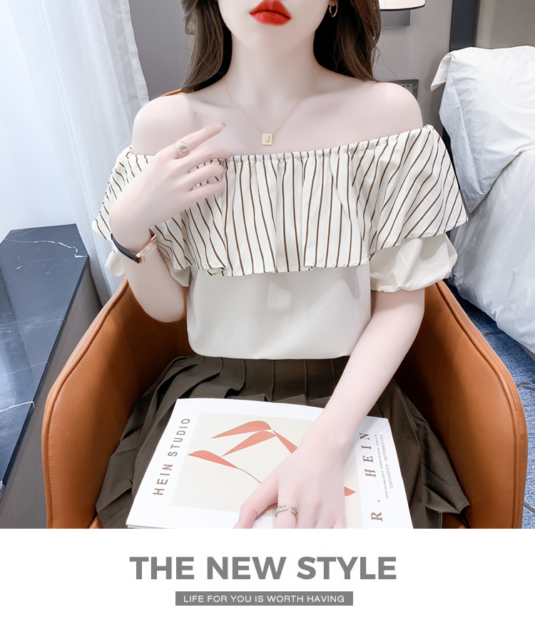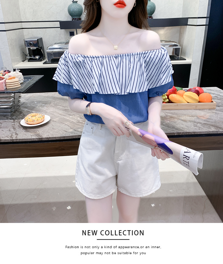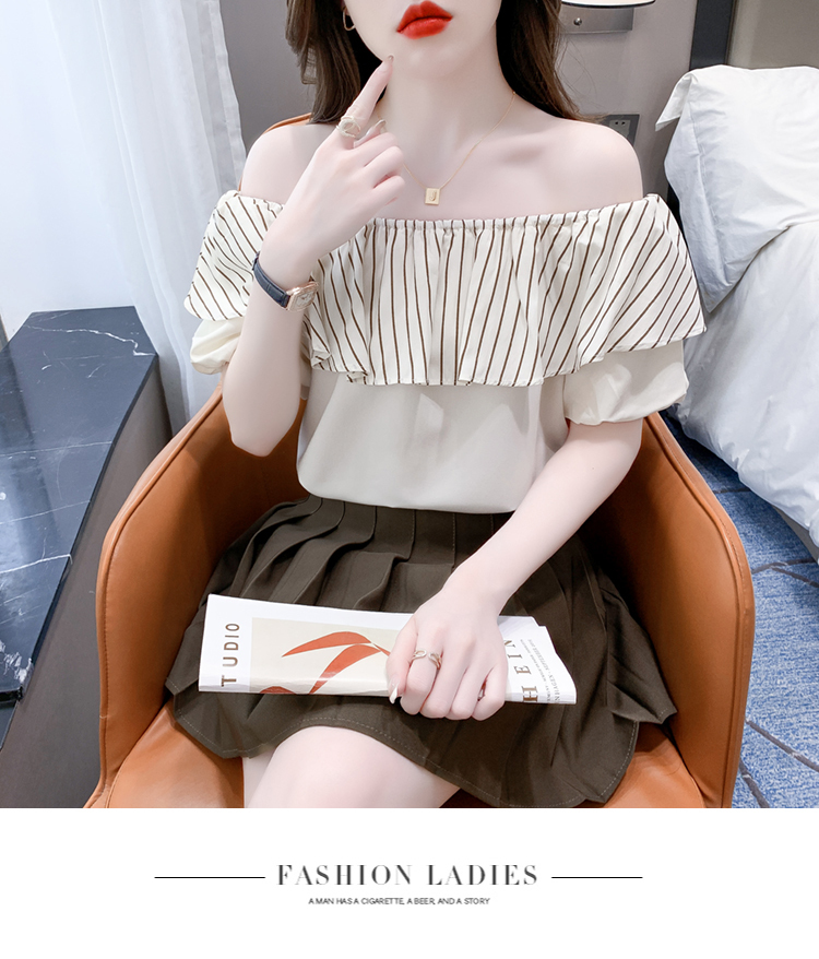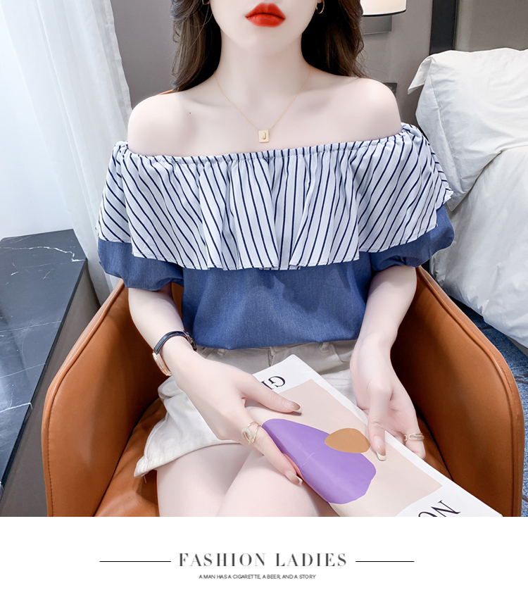 限量特惠|性感條紋拼接一字領上衣-2色(04H3421)