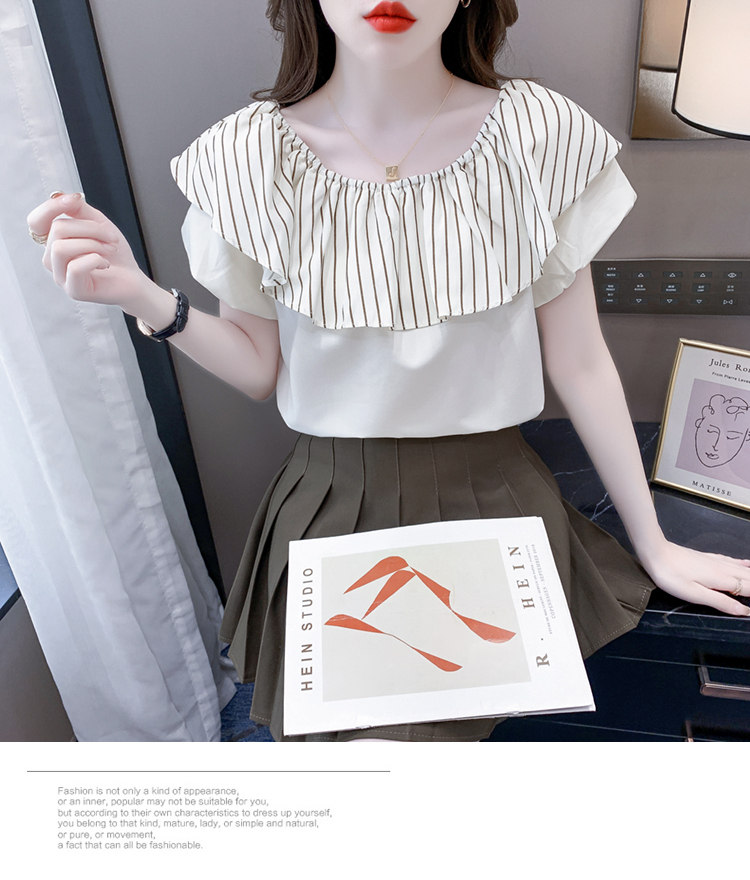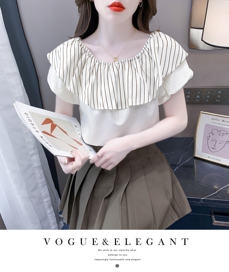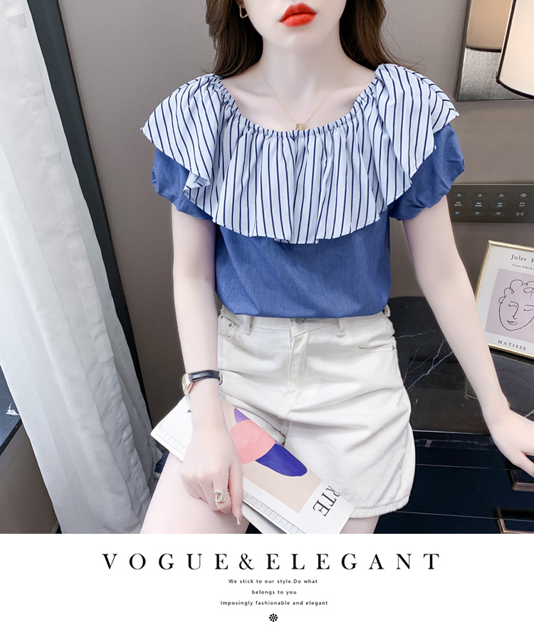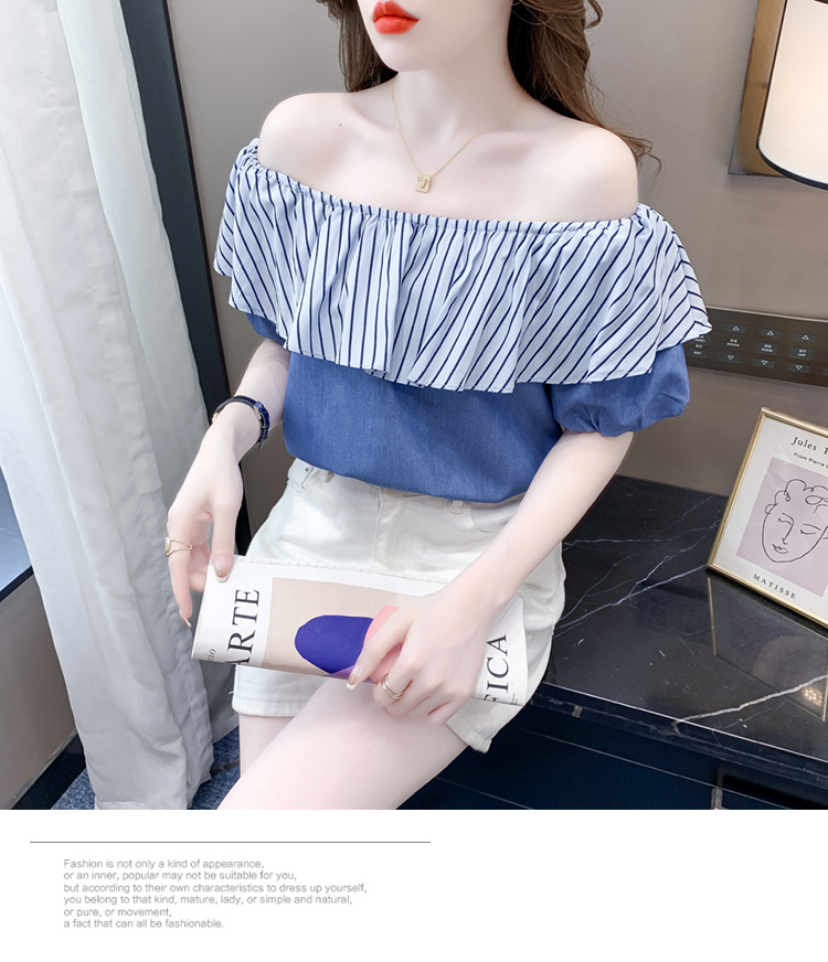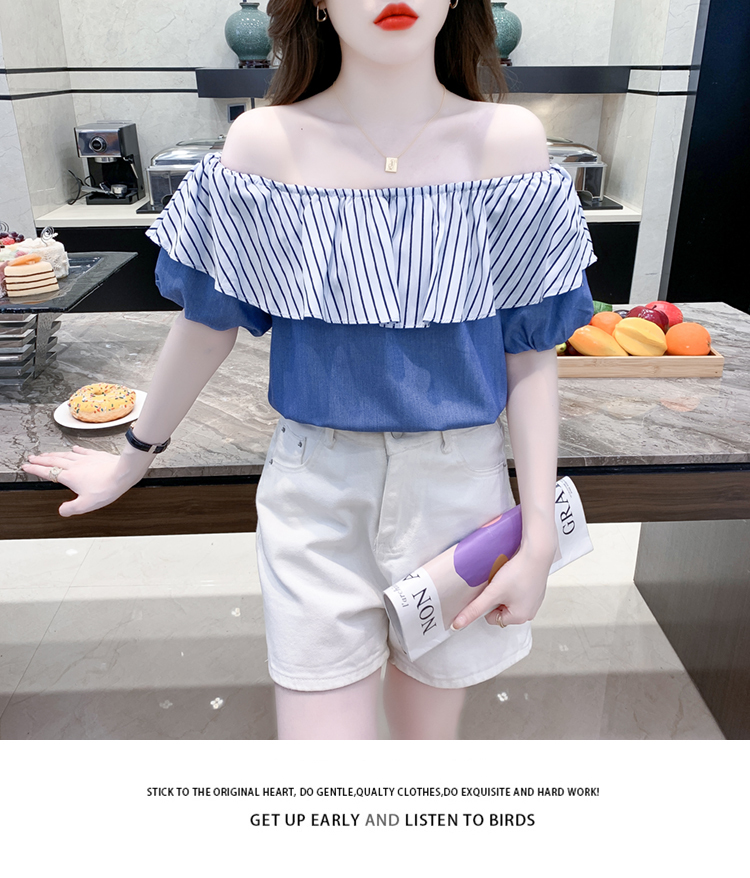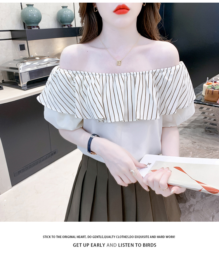 限量特惠|性感條紋拼接一字領上衣-2色(04H3421)