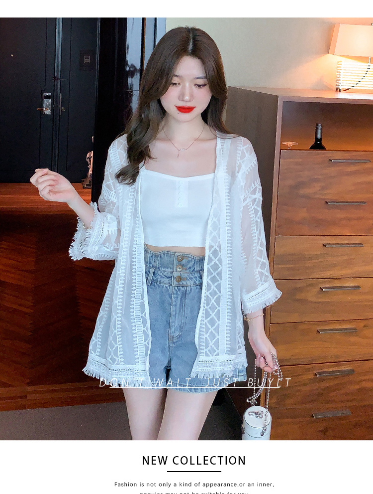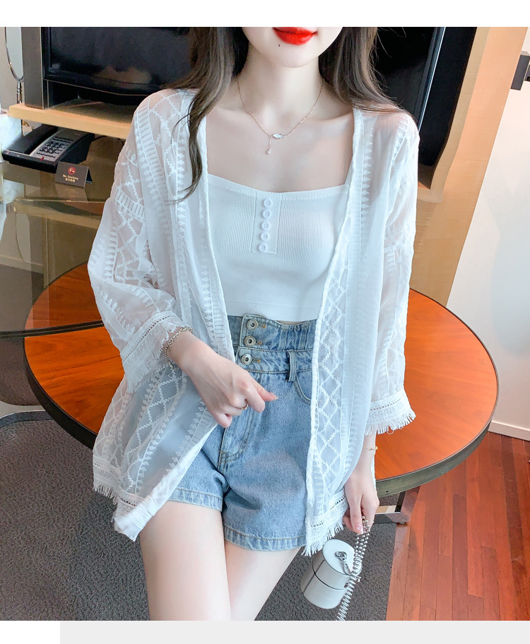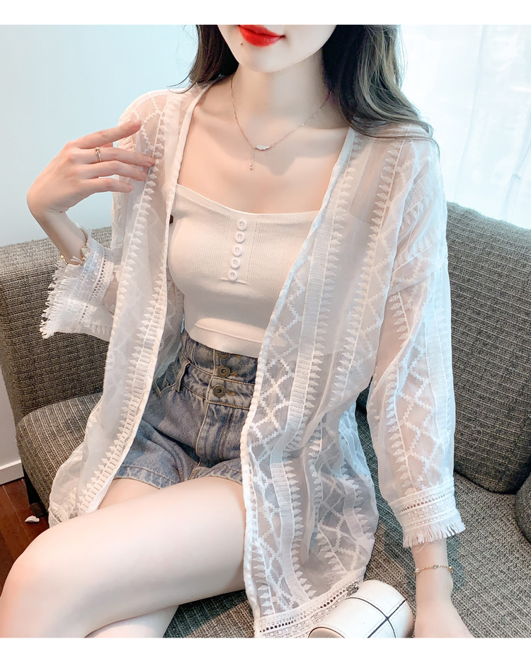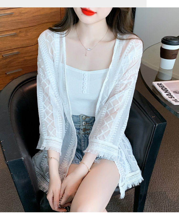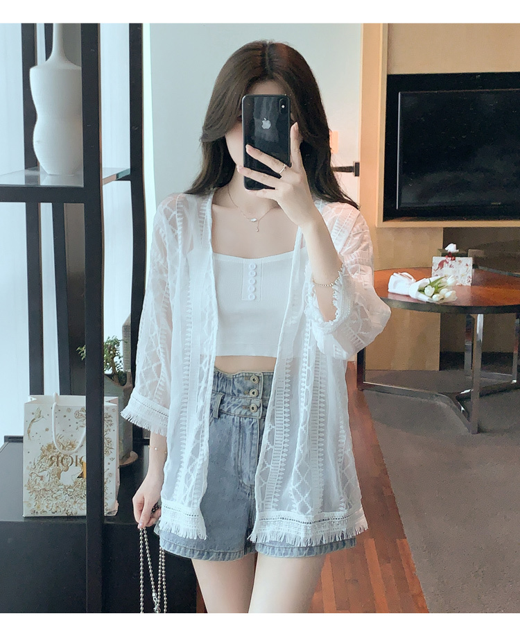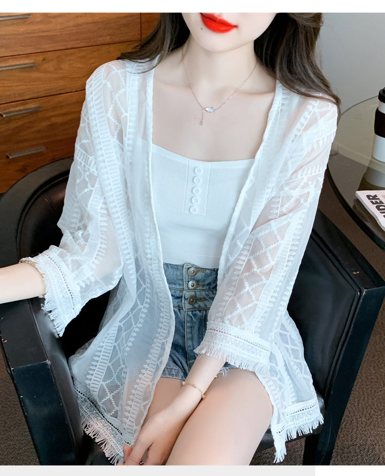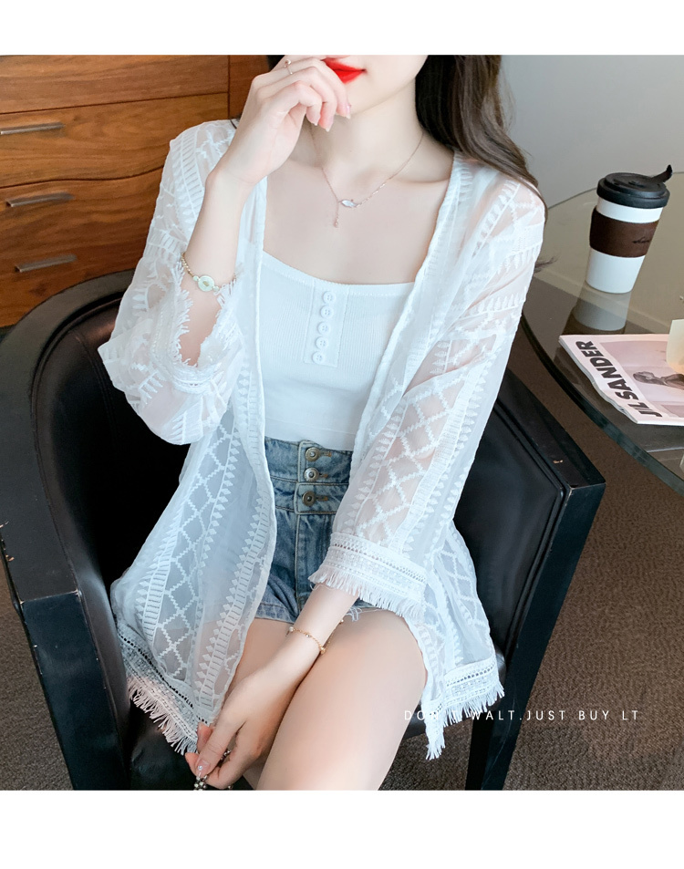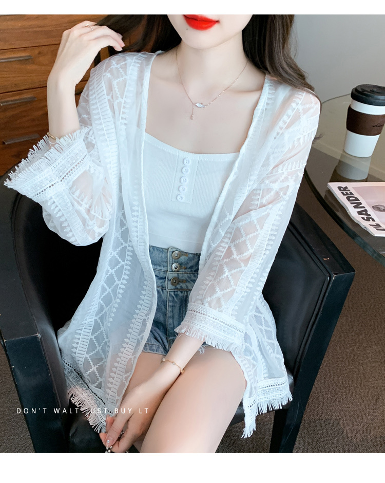 限量特惠|甜美鈎花蕾絲流蘇雪紡防曬罩衫(04H3431)