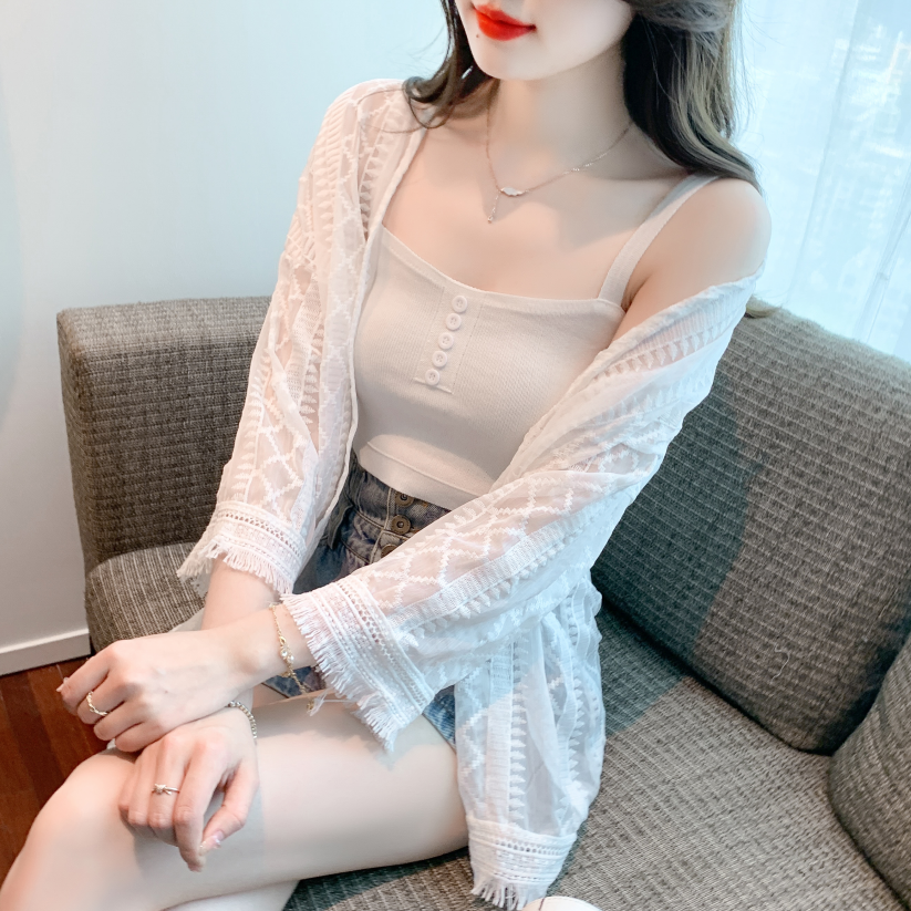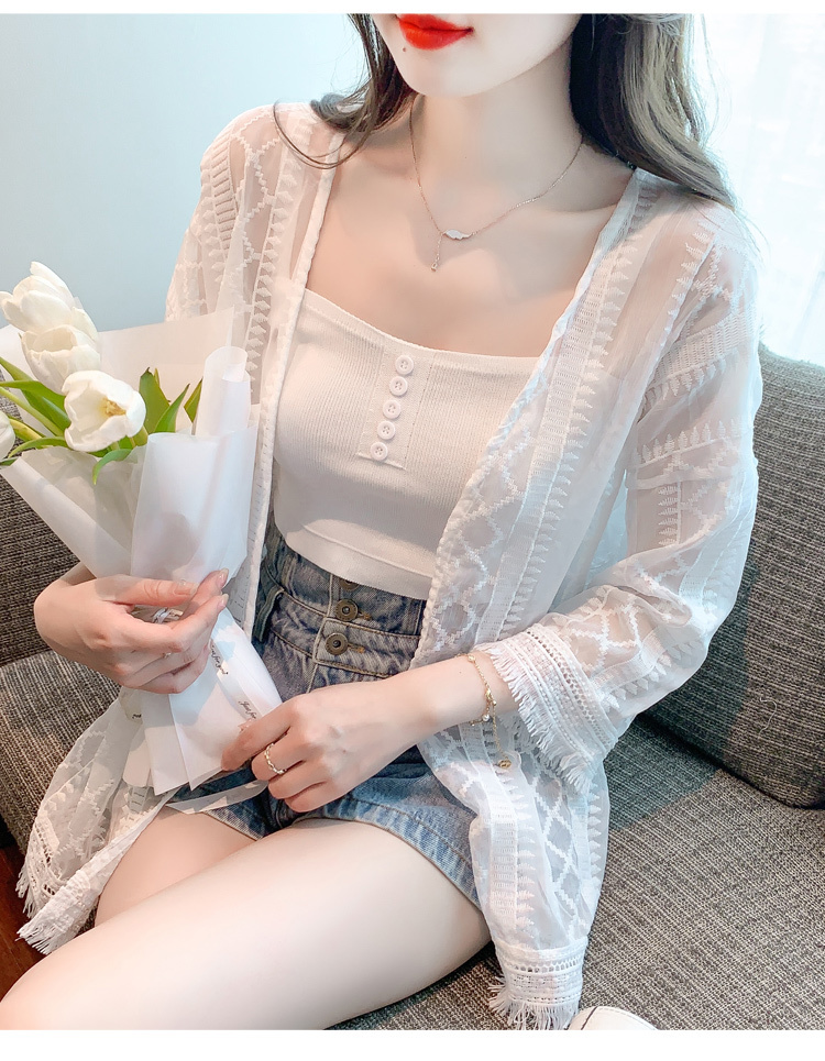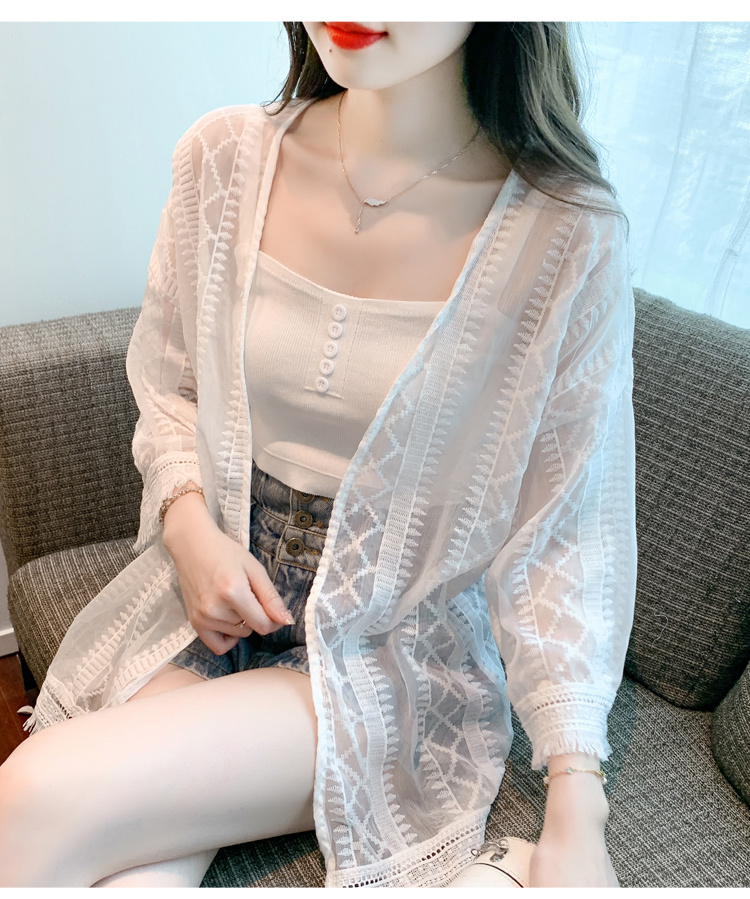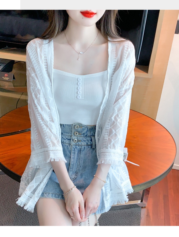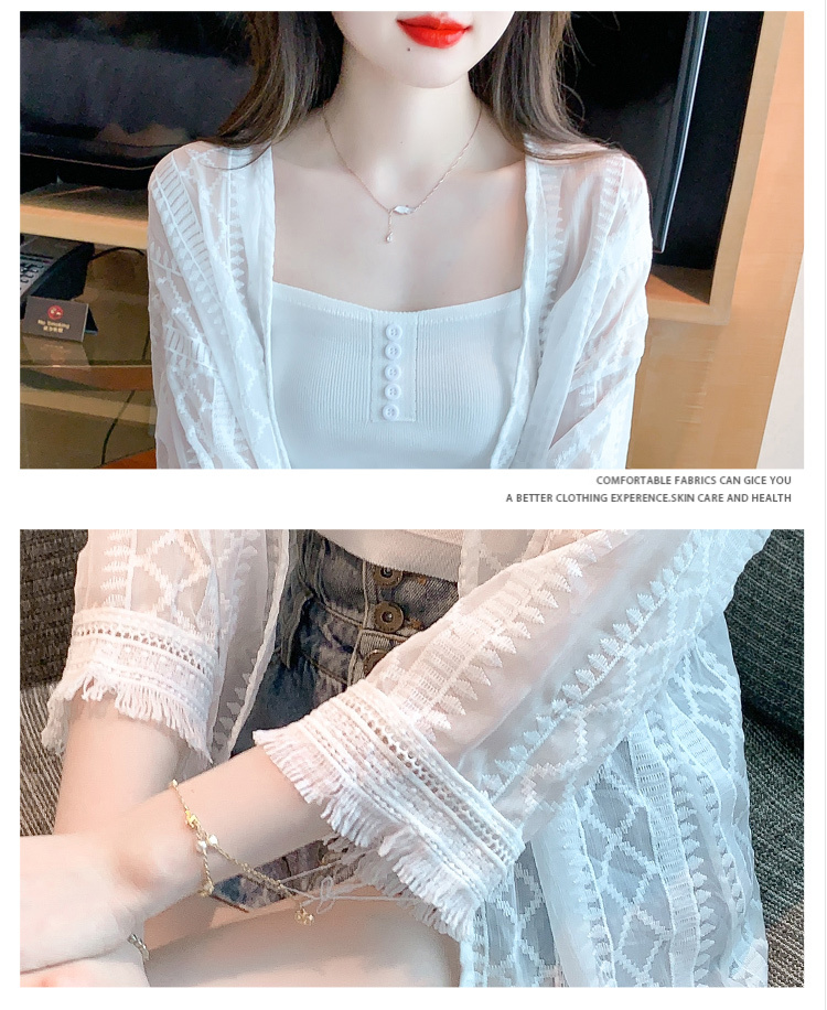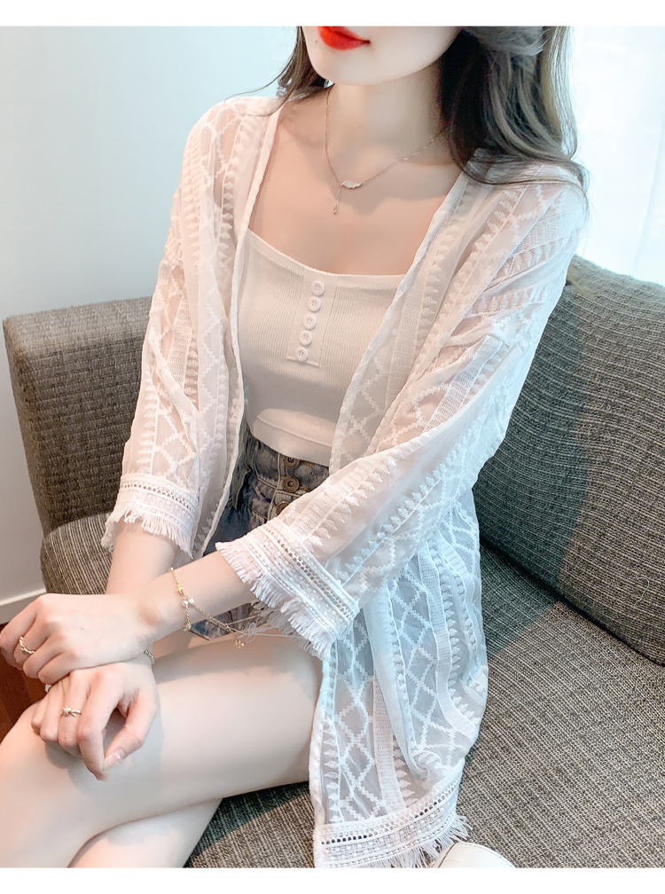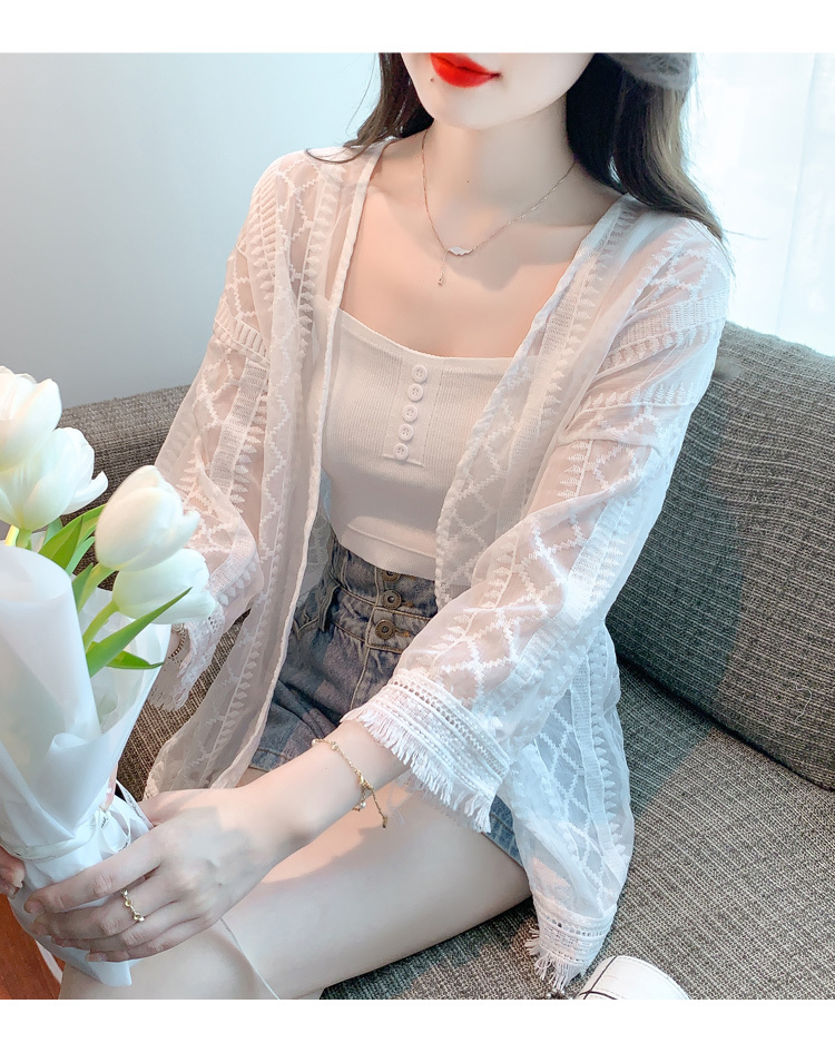 限量特惠|甜美鈎花蕾絲流蘇雪紡防曬罩衫(04H3431)