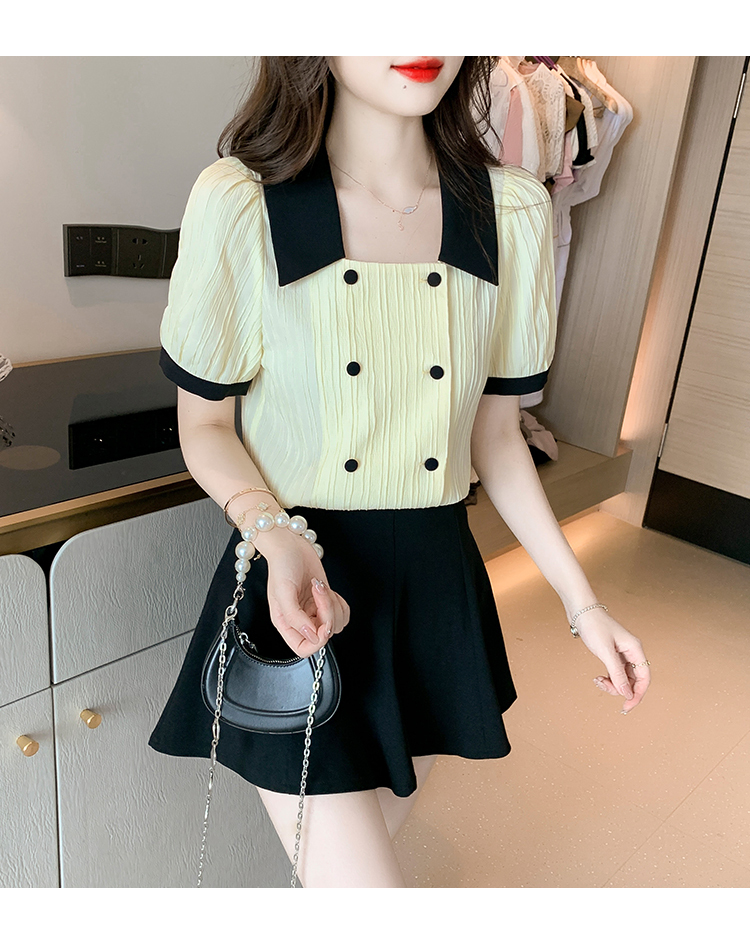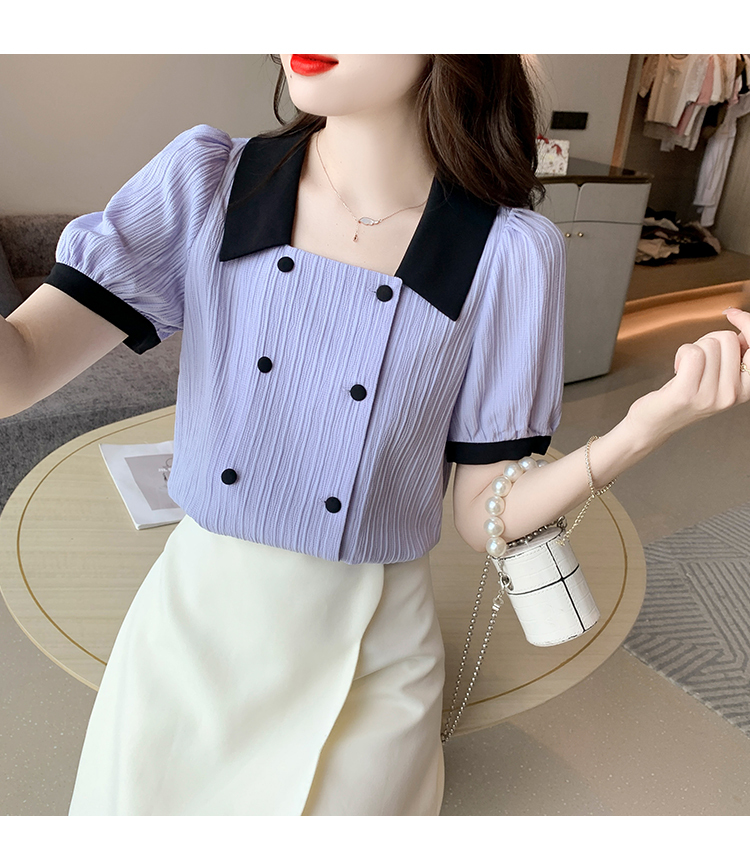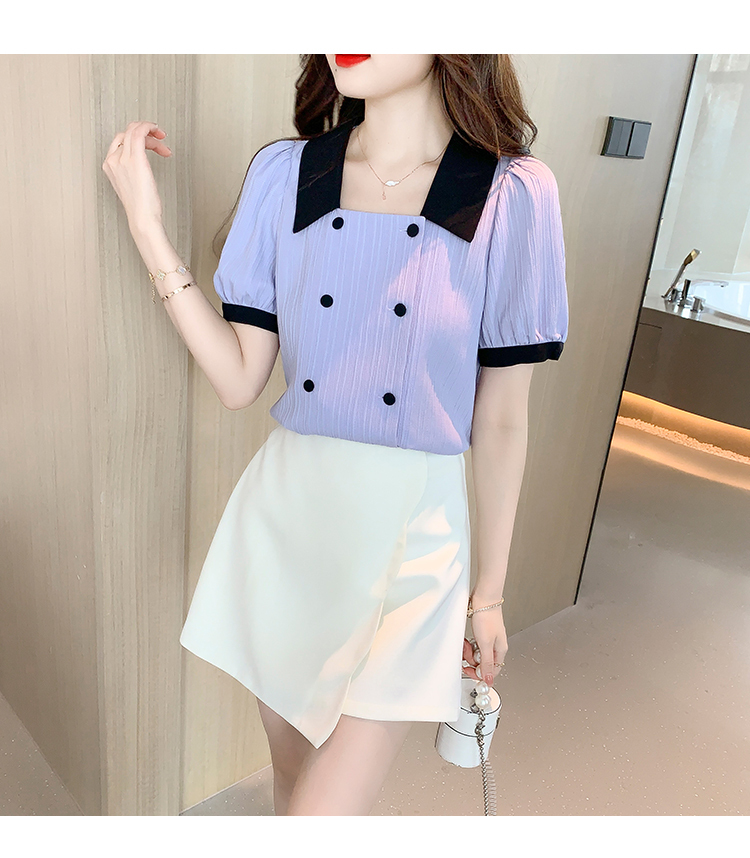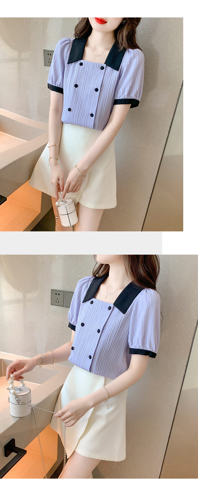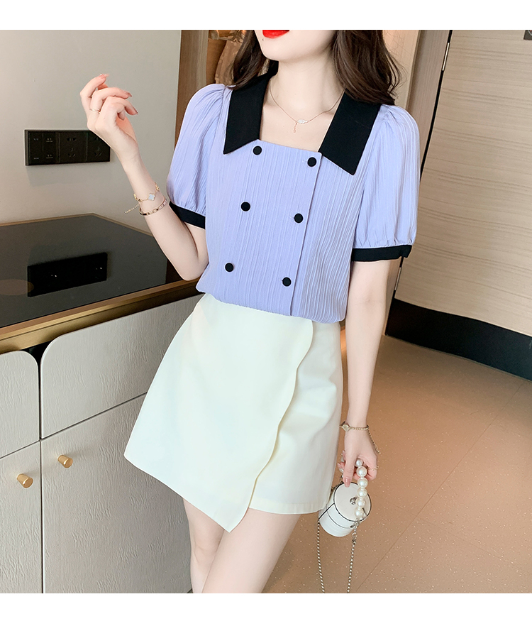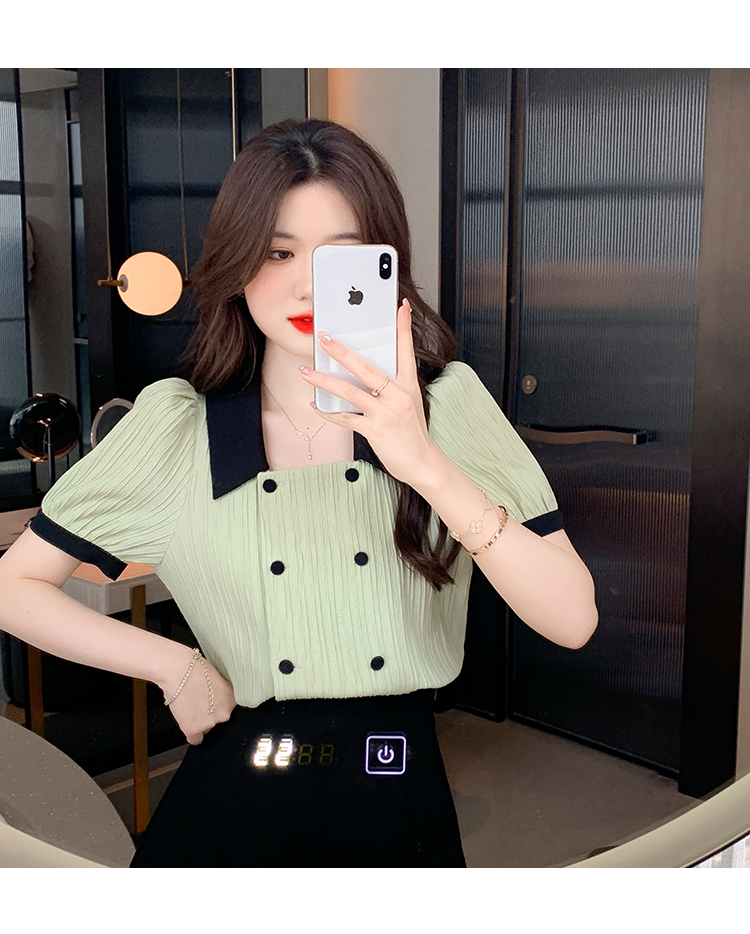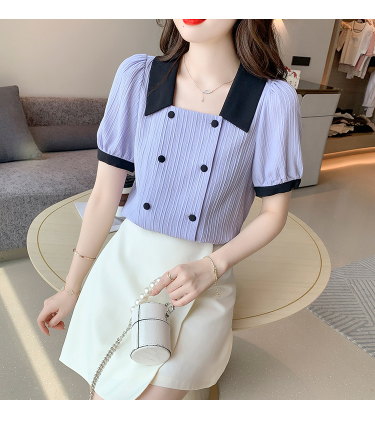 限量特惠|法式撞色翻領雙排扣雪紡衫-3色(04H3434)