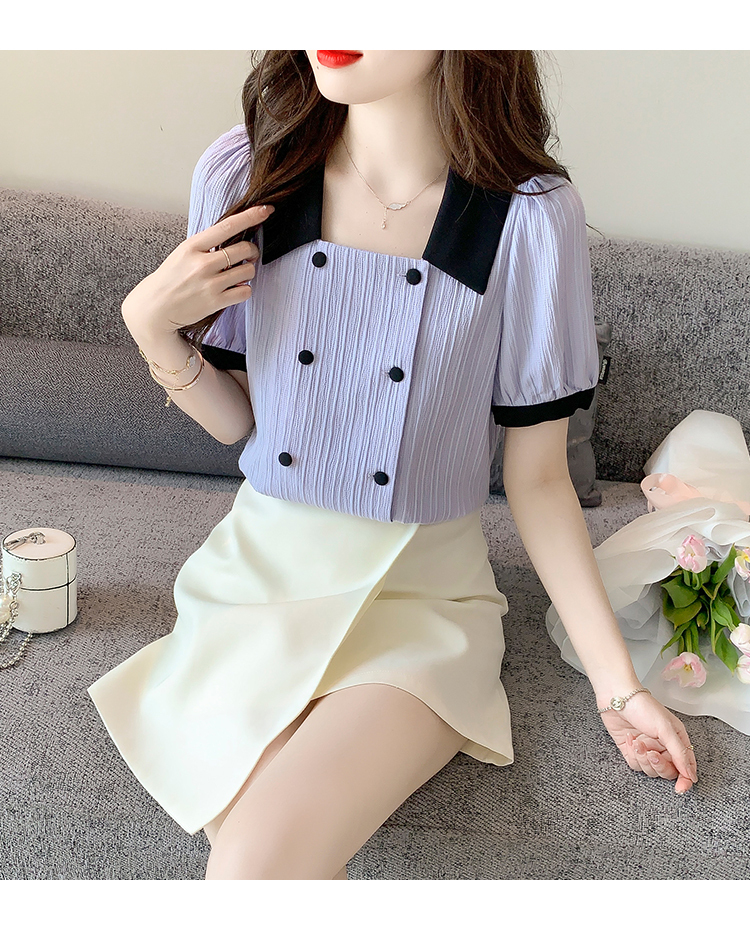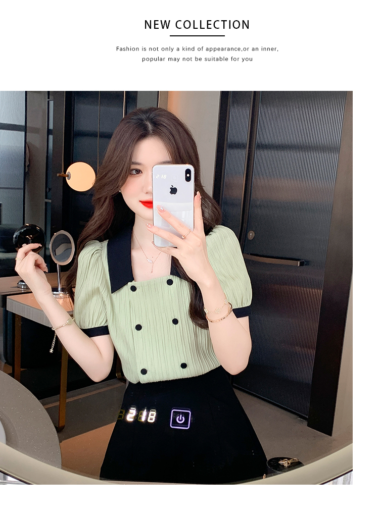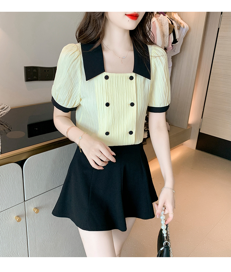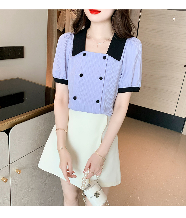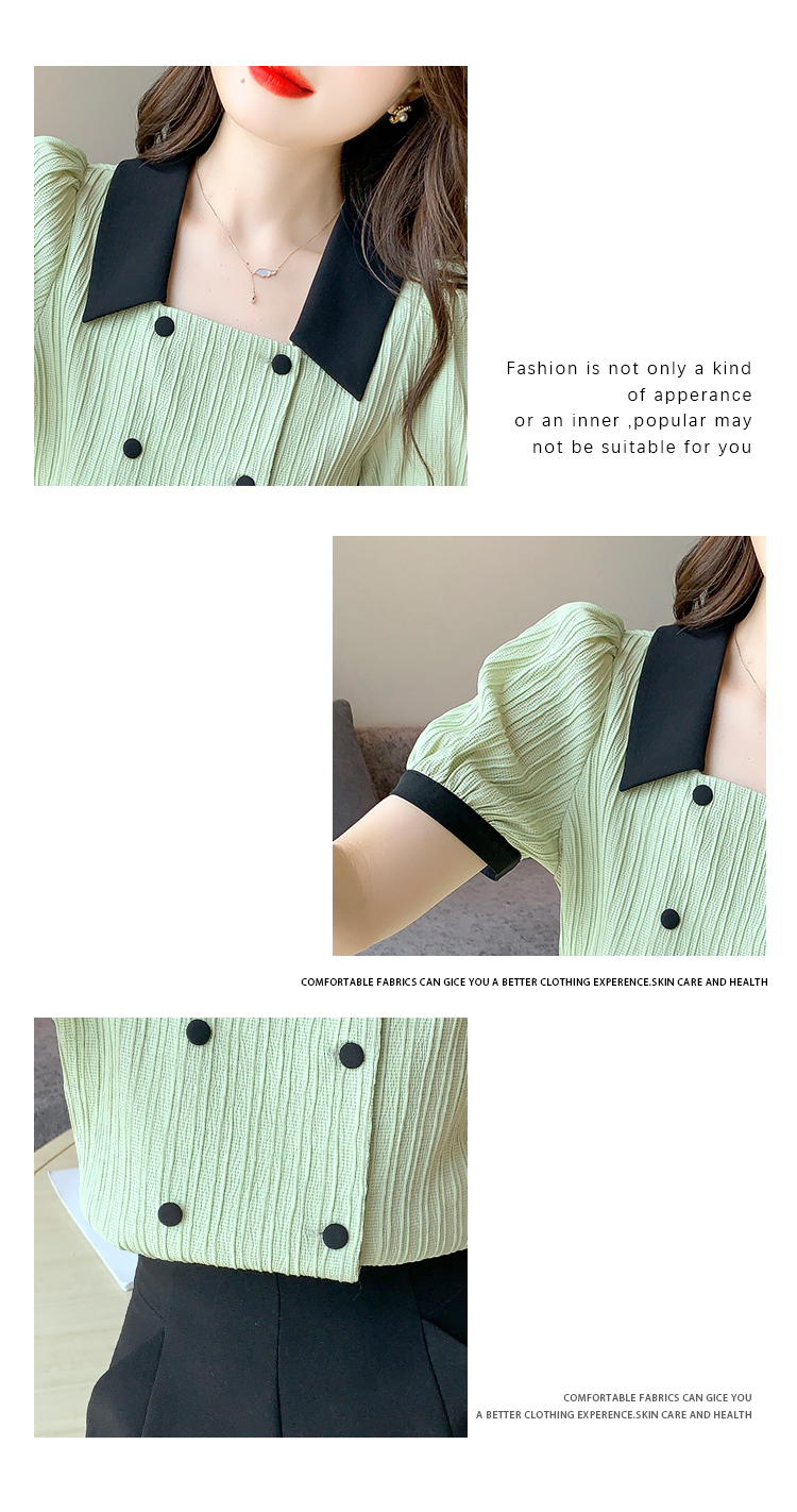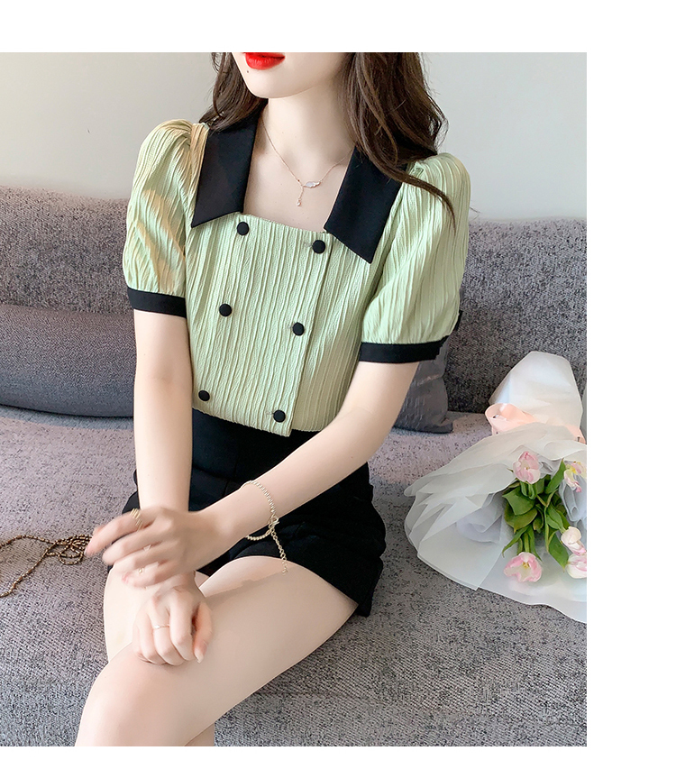 限量特惠|法式撞色翻領雙排扣雪紡衫-3色(04H3434)
