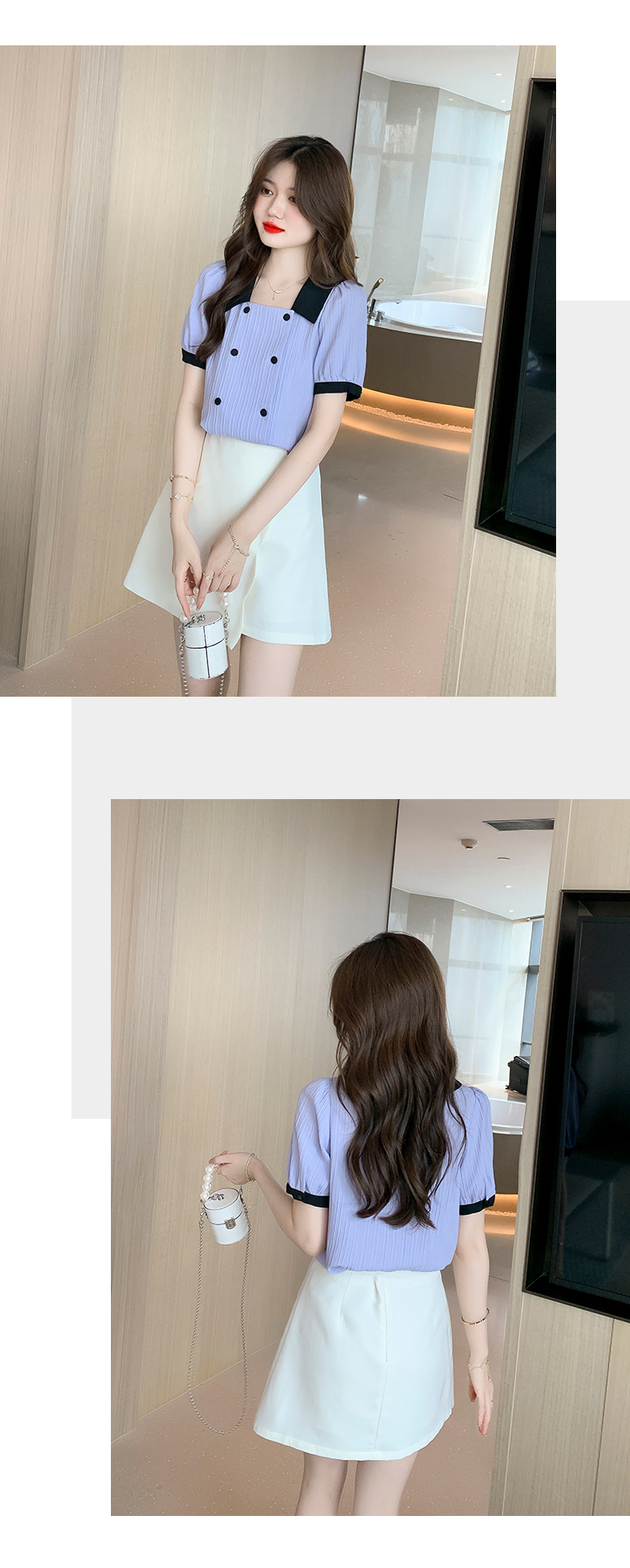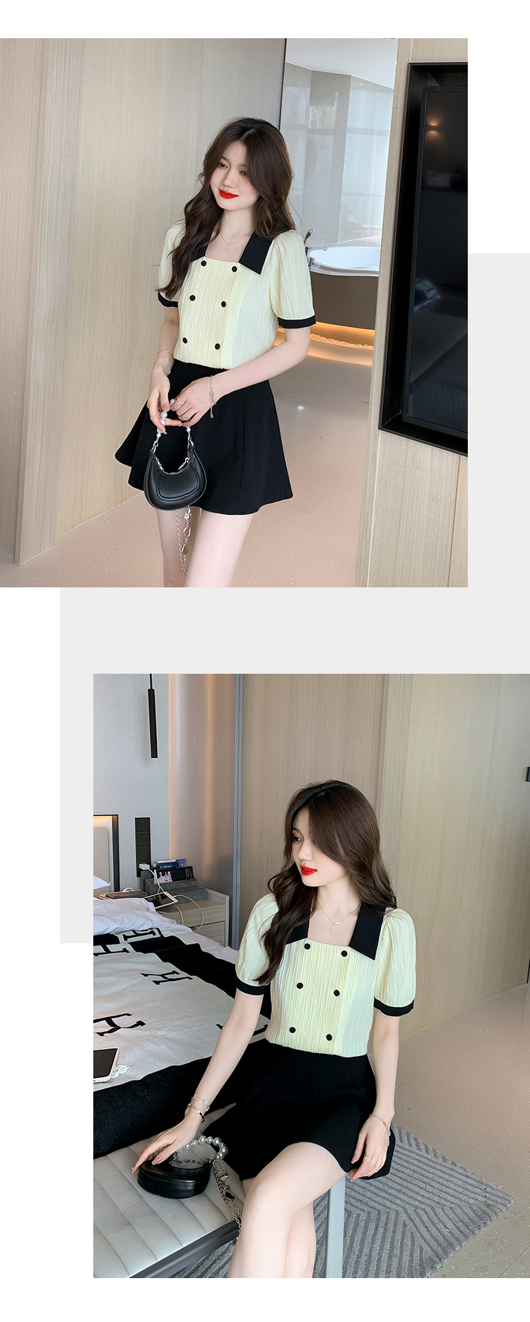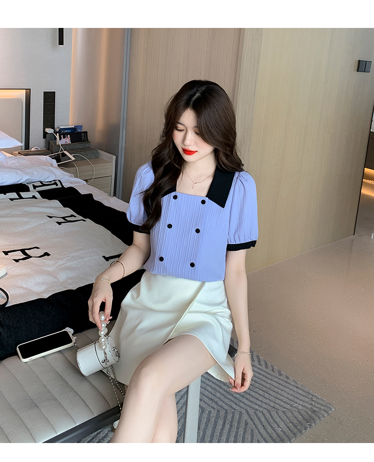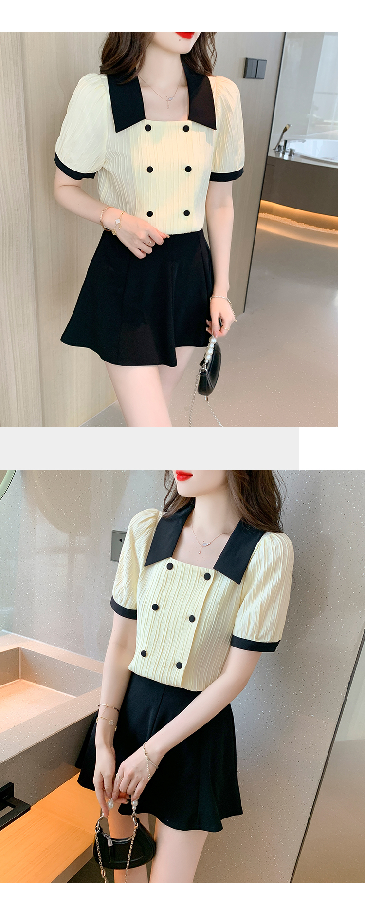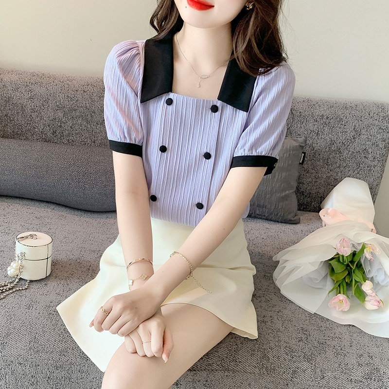 限量特惠|法式撞色翻領雙排扣雪紡衫-3色(04H3434)