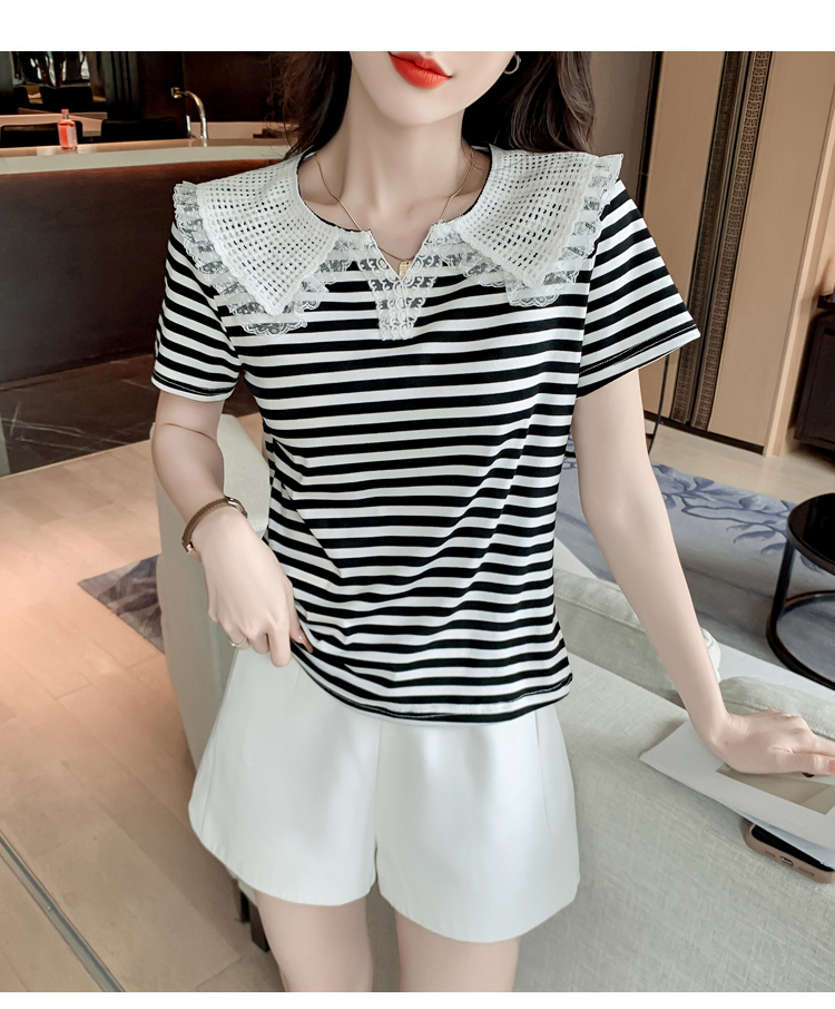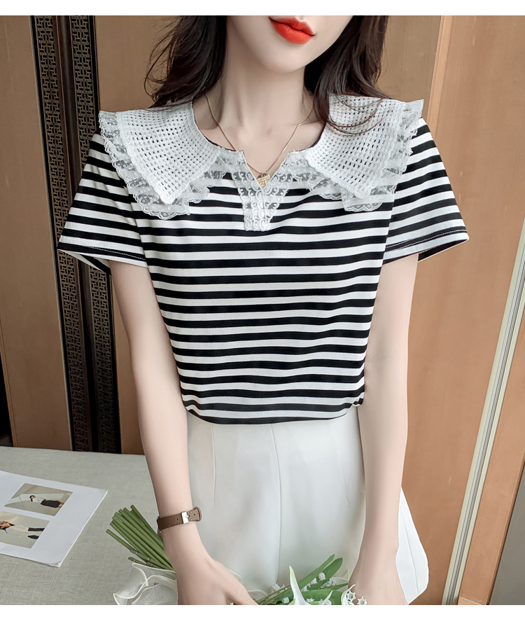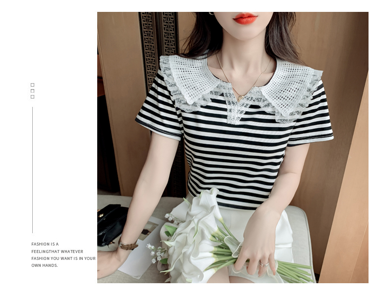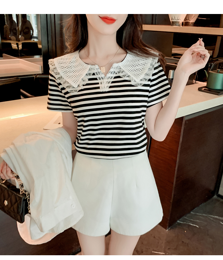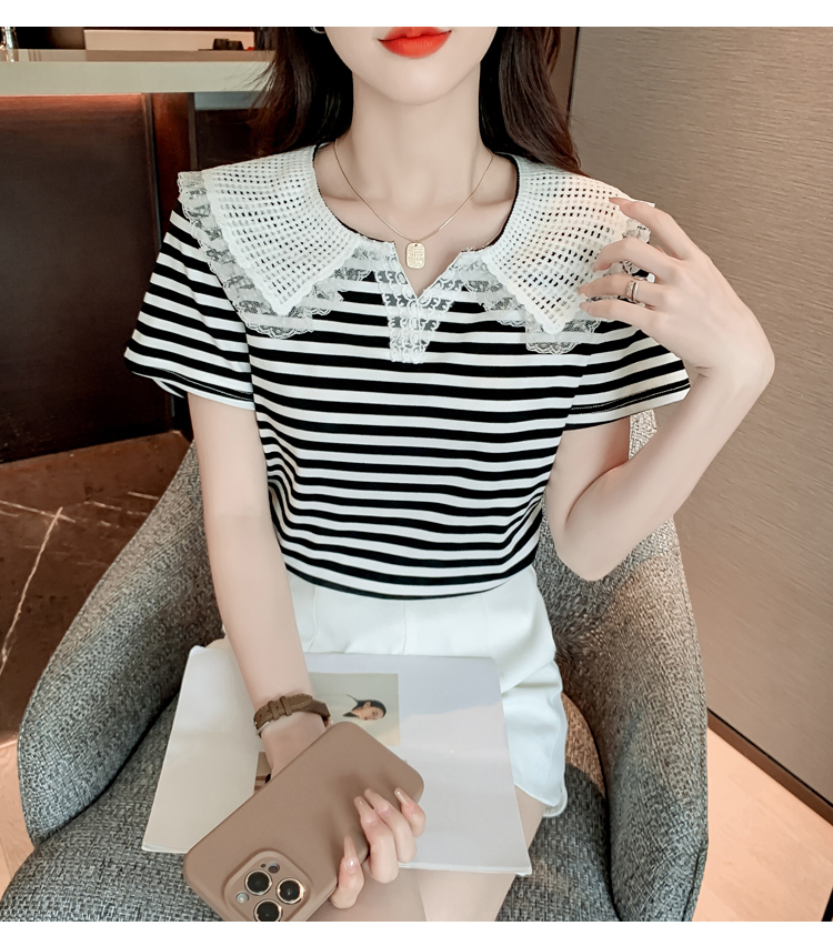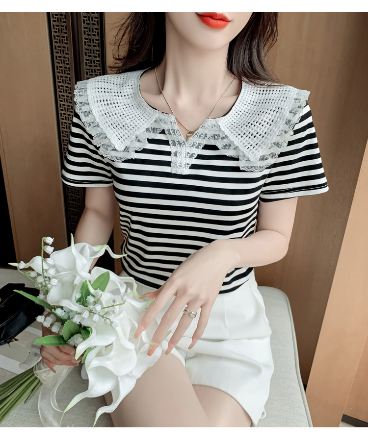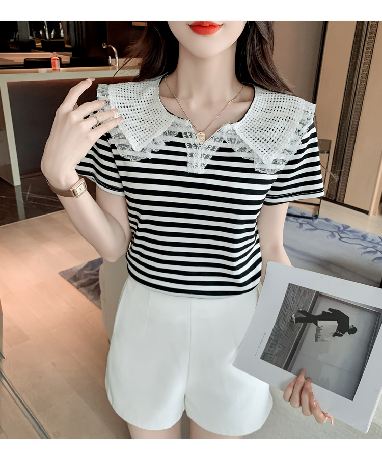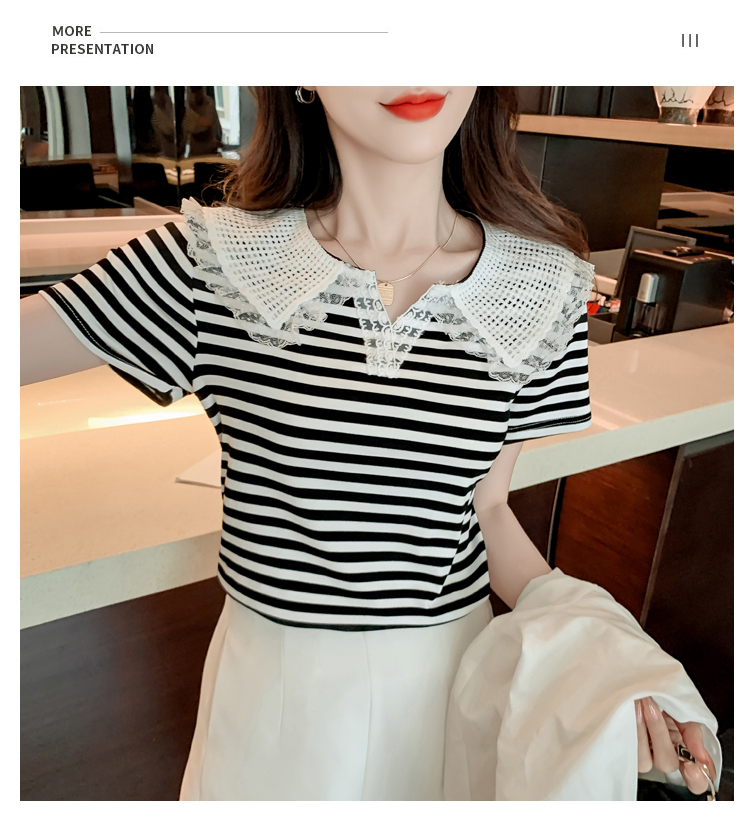 限量特惠|舒適拼接蕾絲花邊翻領T恤(04H3440)