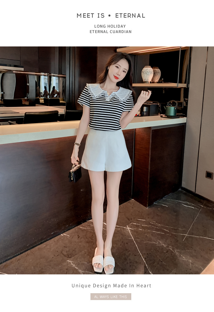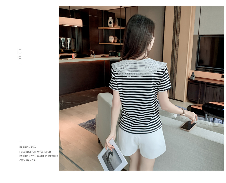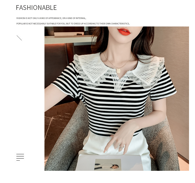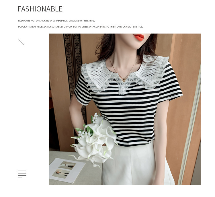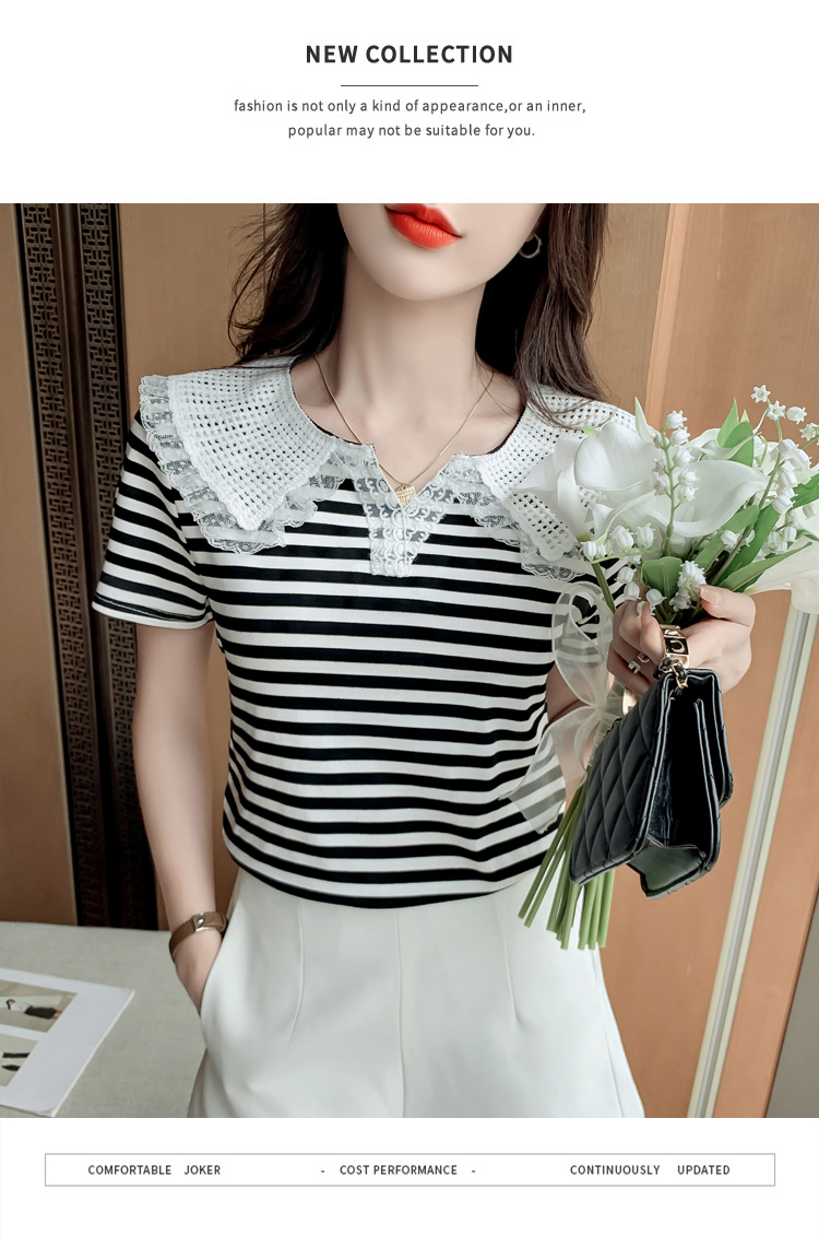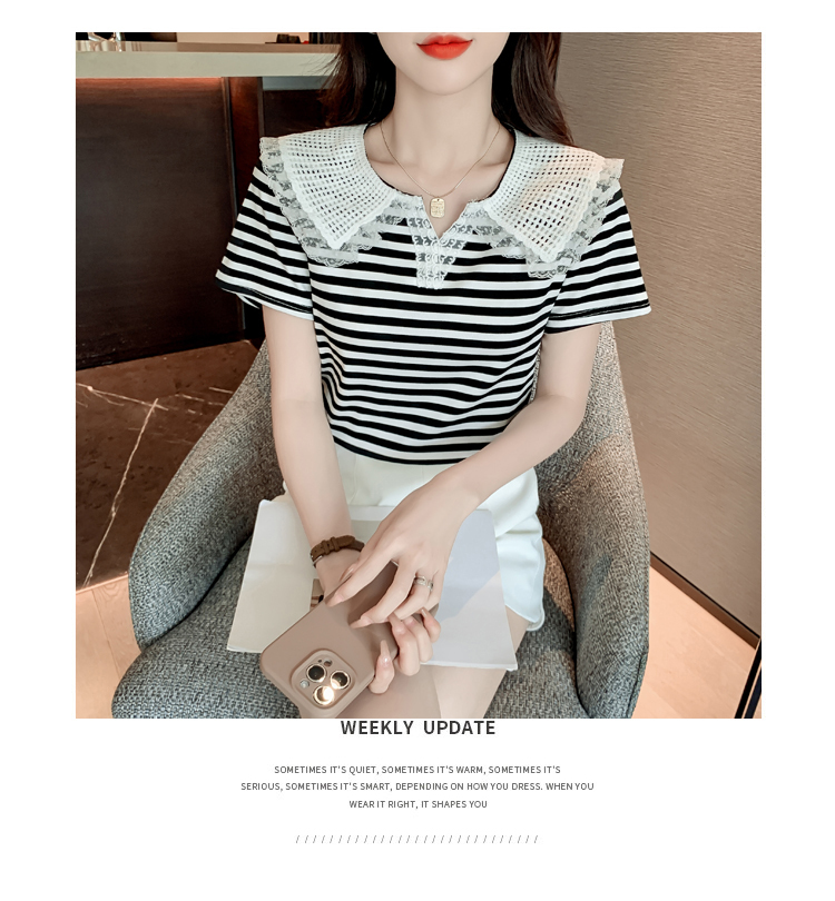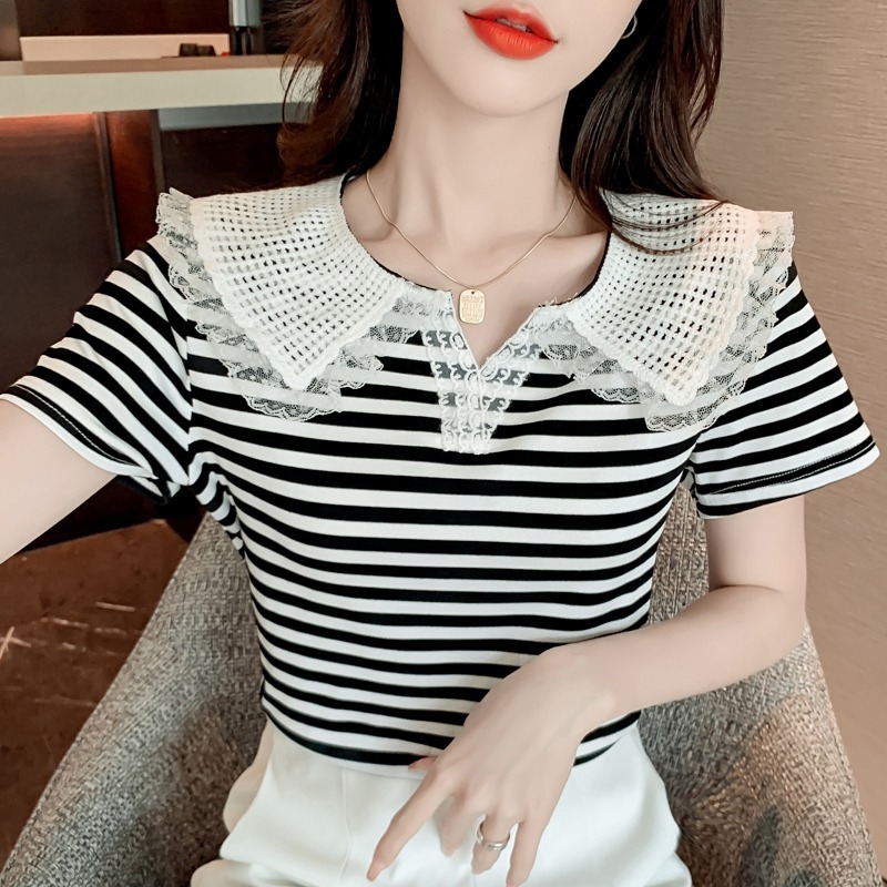 限量特惠|舒適拼接蕾絲花邊翻領T恤(04H3440)