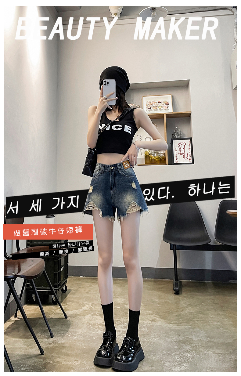 限量特惠|復古刷色破洞造型牛仔褲(04H3455)