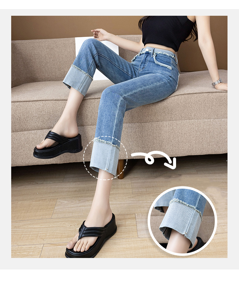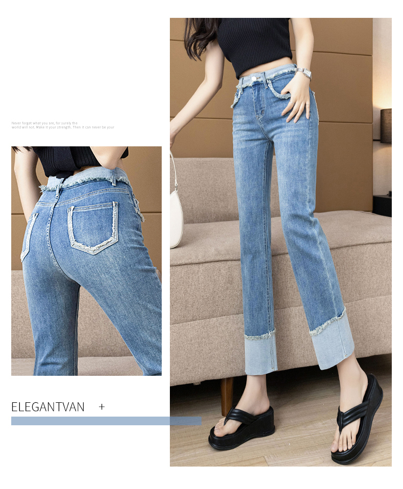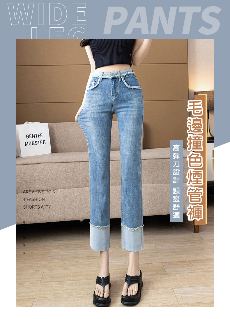 限量特惠|超彈力顯瘦刷毛邊8分牛仔褲(04H3487)