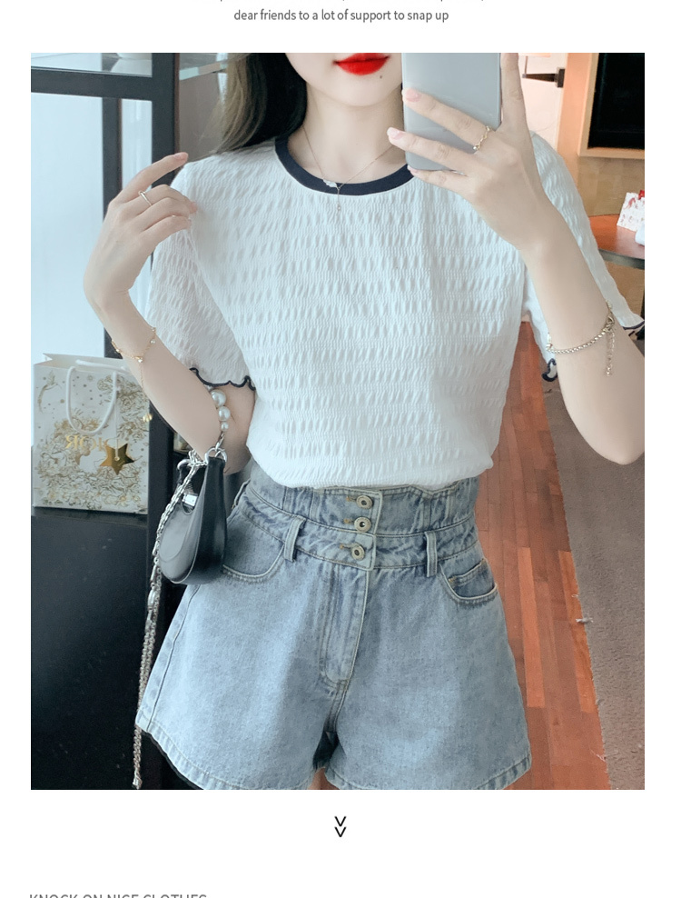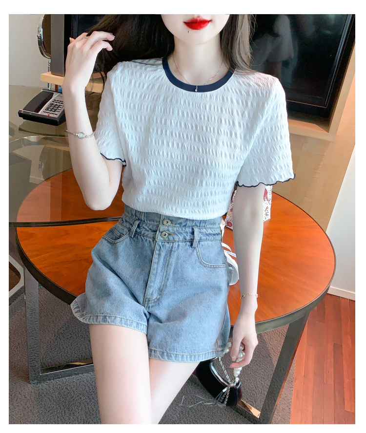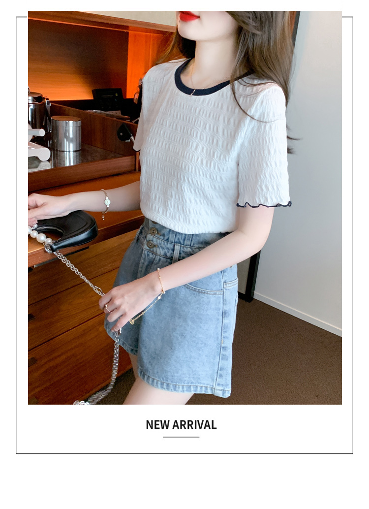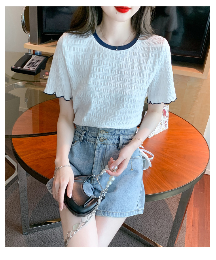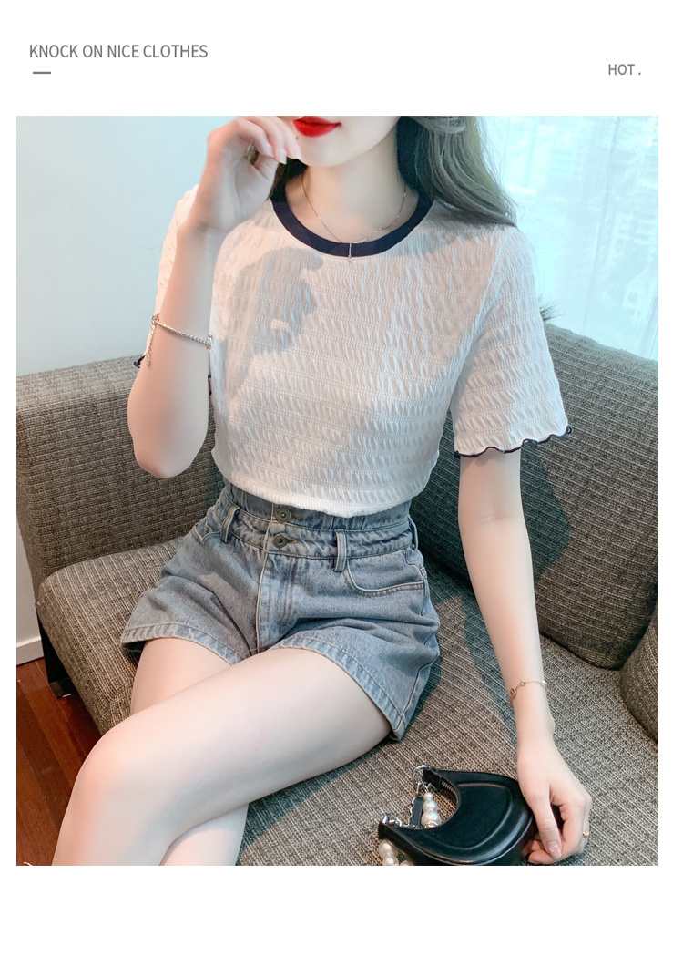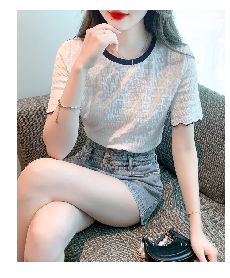 限量特惠|簡約百搭撞色褶皺T恤(04H3489)