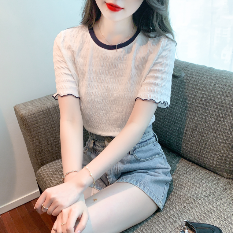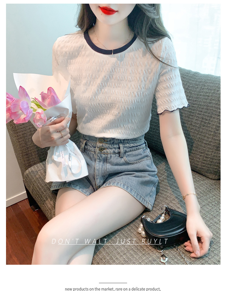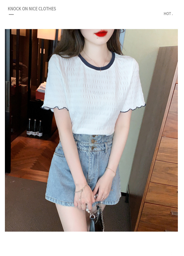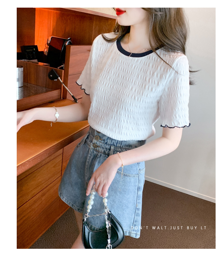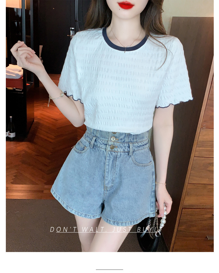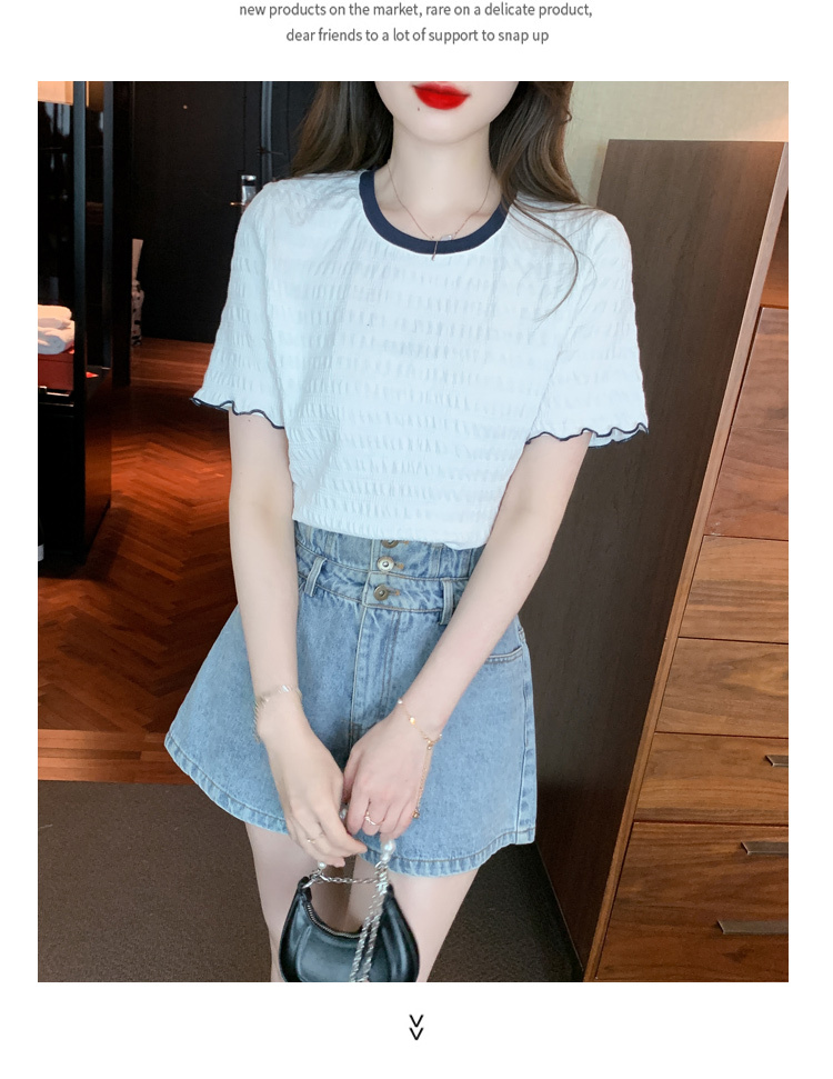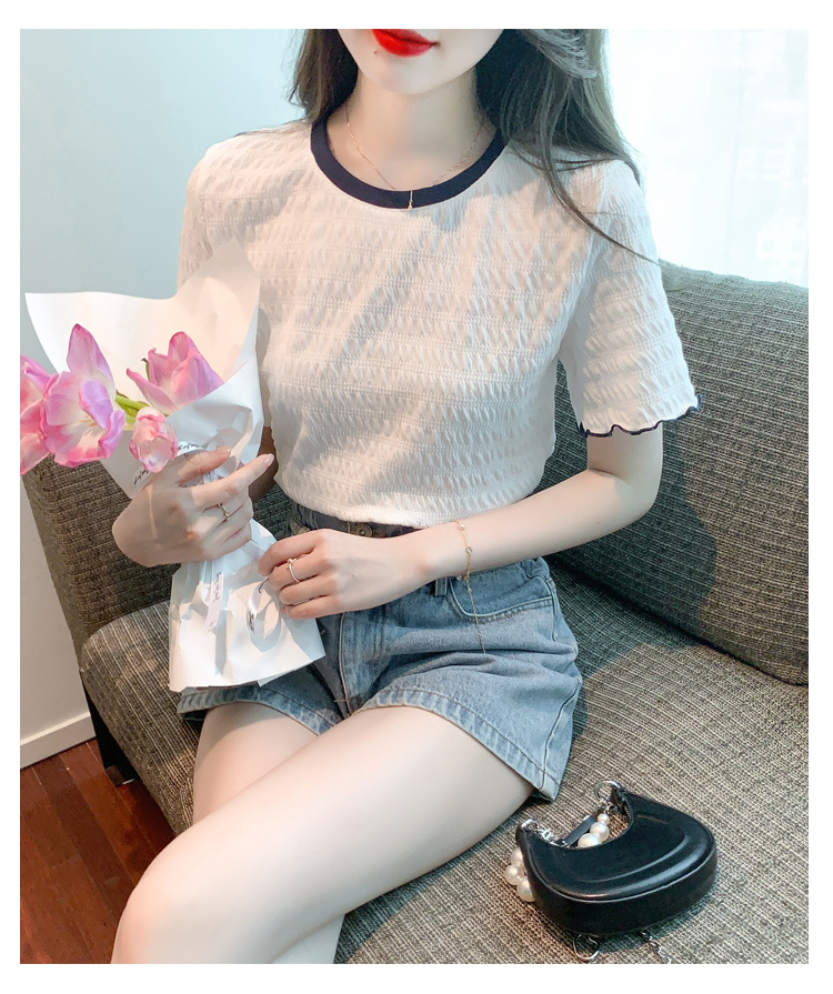 限量特惠|簡約百搭撞色褶皺T恤(04H3489)