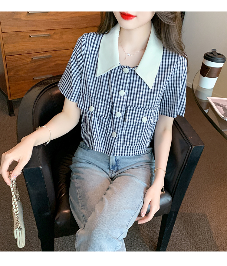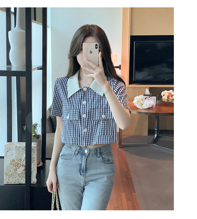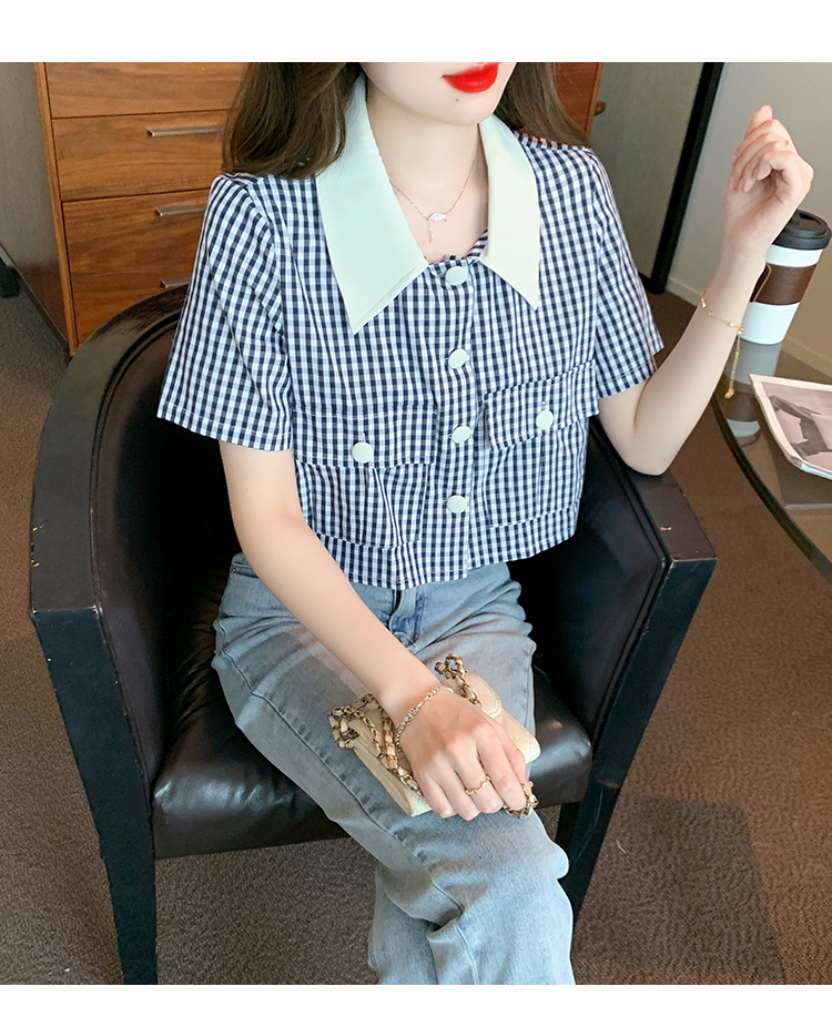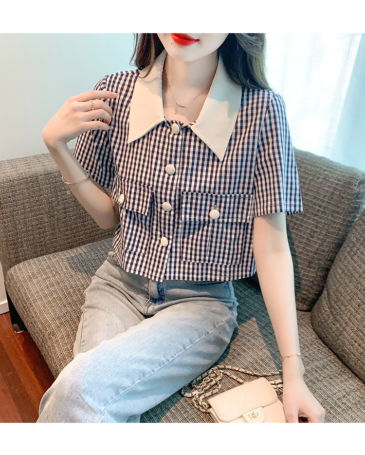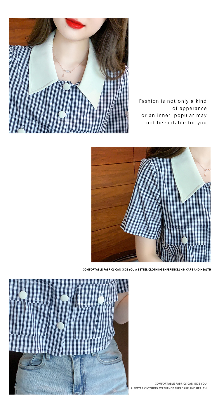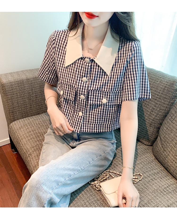 限量特惠|小清新甜美撞色翻領格紋襯衫(04H3491)